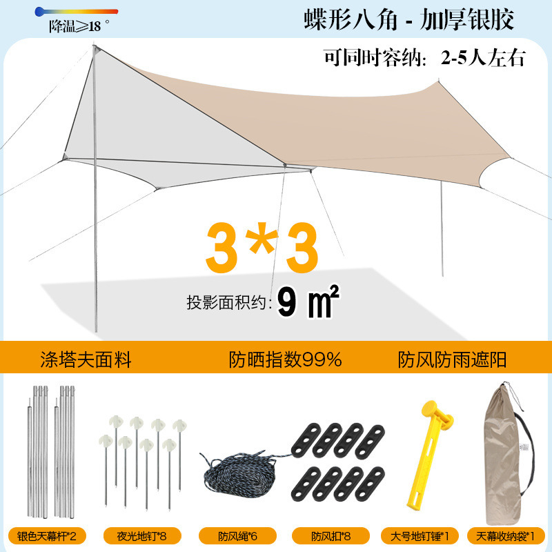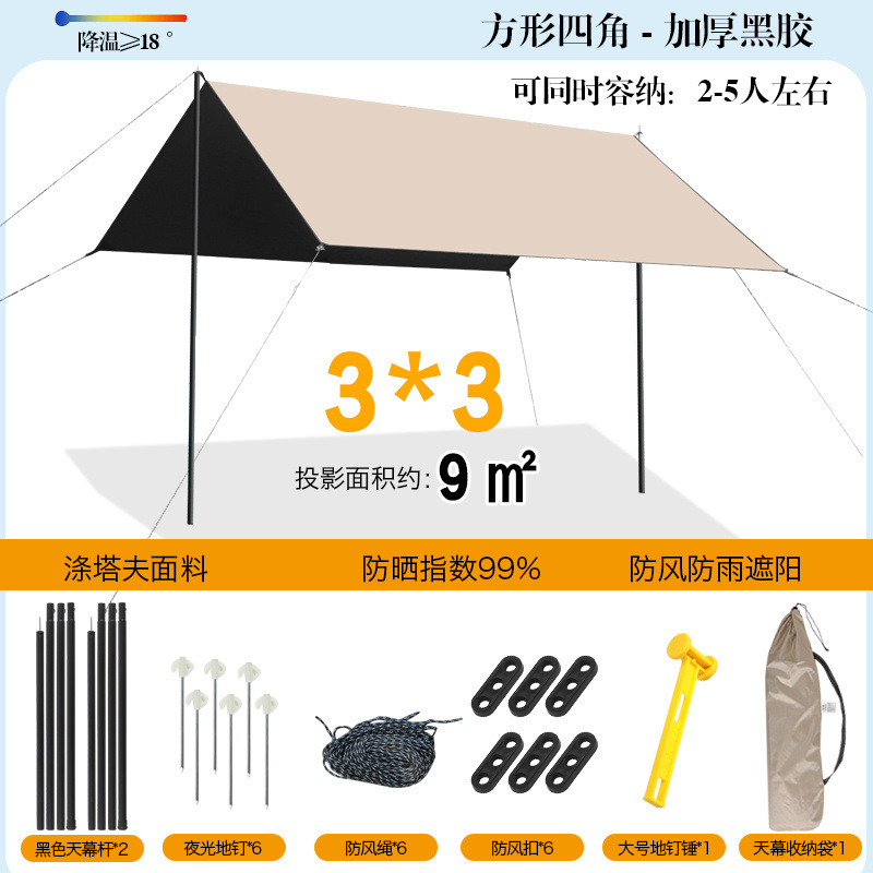 야외 캐노피 텐트 차양 두꺼운 실버 플라스틱 블랙 플라스틱 캐노피 방수 캐노피 캠핑 피크닉 바베큐