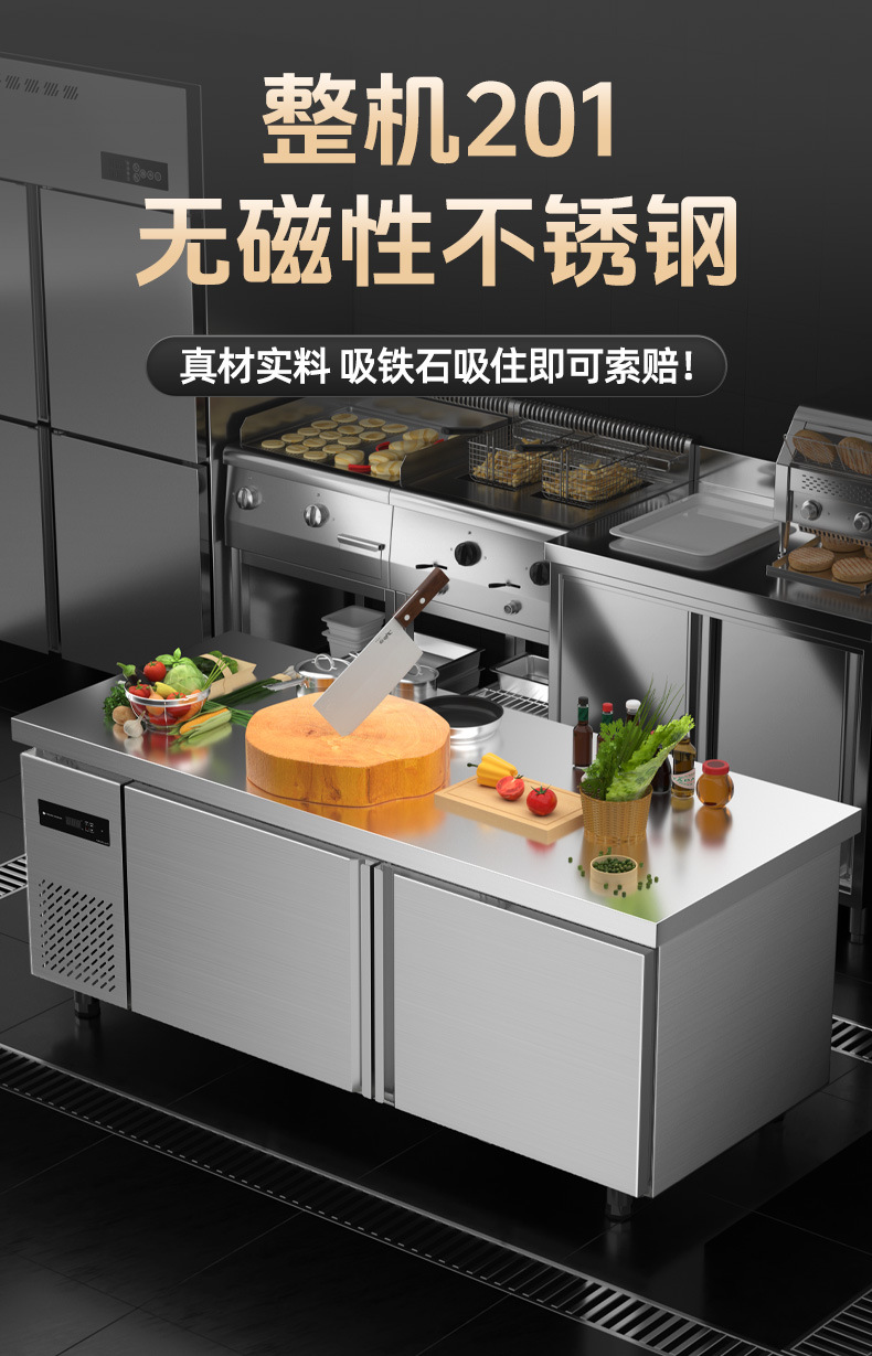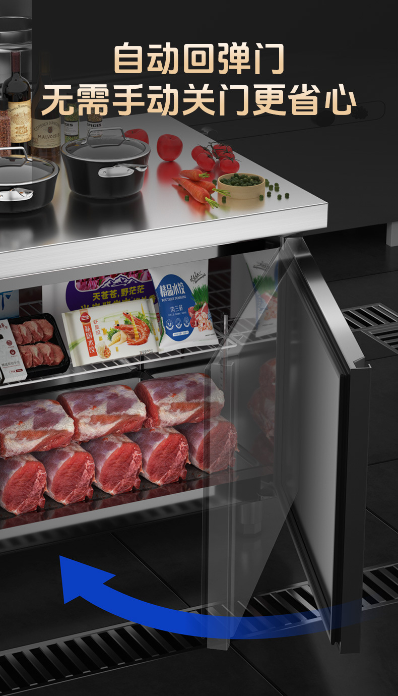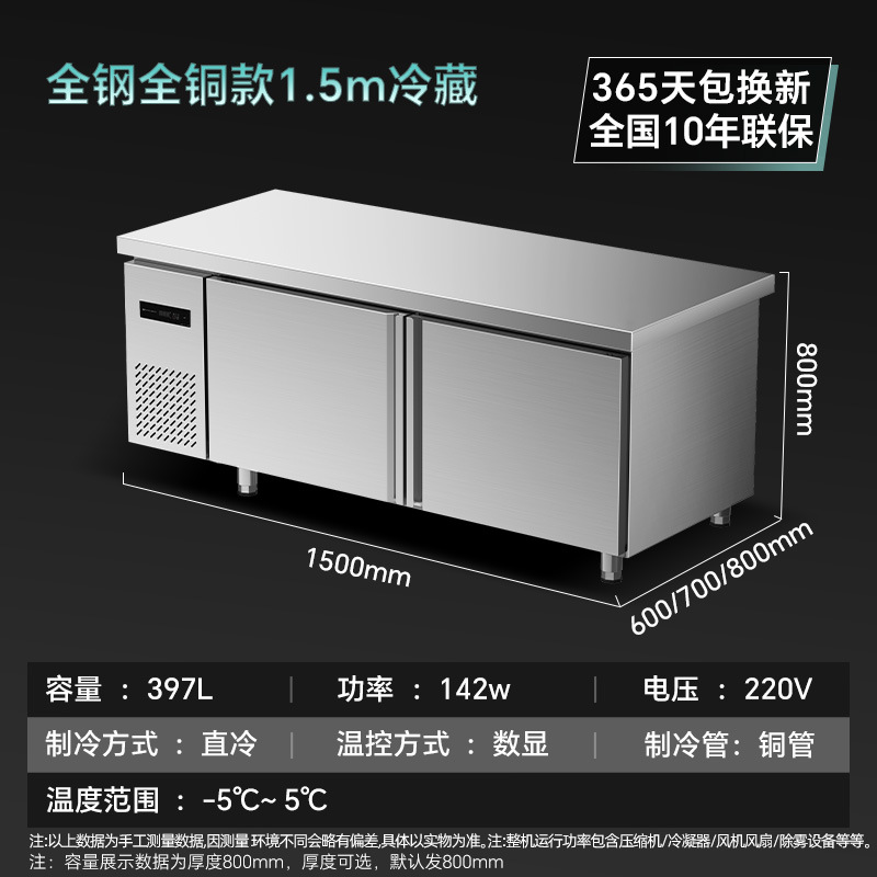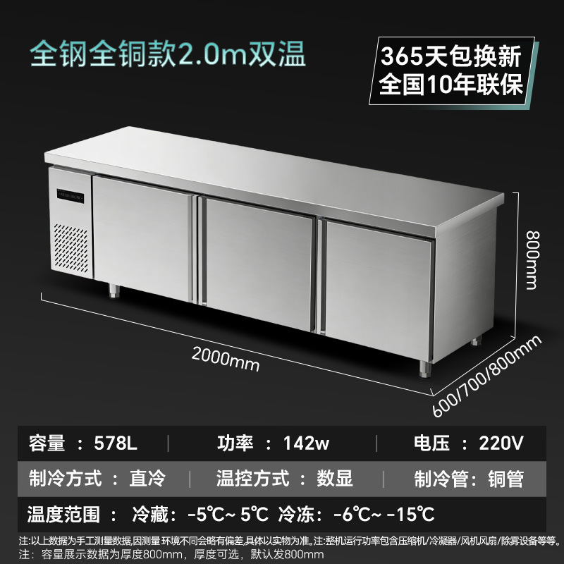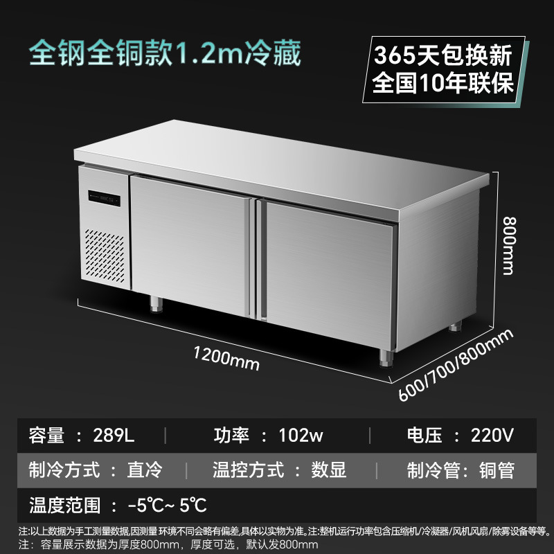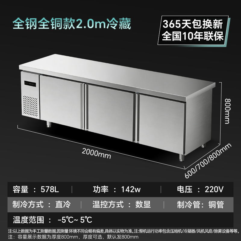 【1급 에너지 효율】전체 스틸 및 구리 소재 냉장 작업대 대용량 평면냉장고 상업용 주방 신선보관 캐비닛스토어 가기