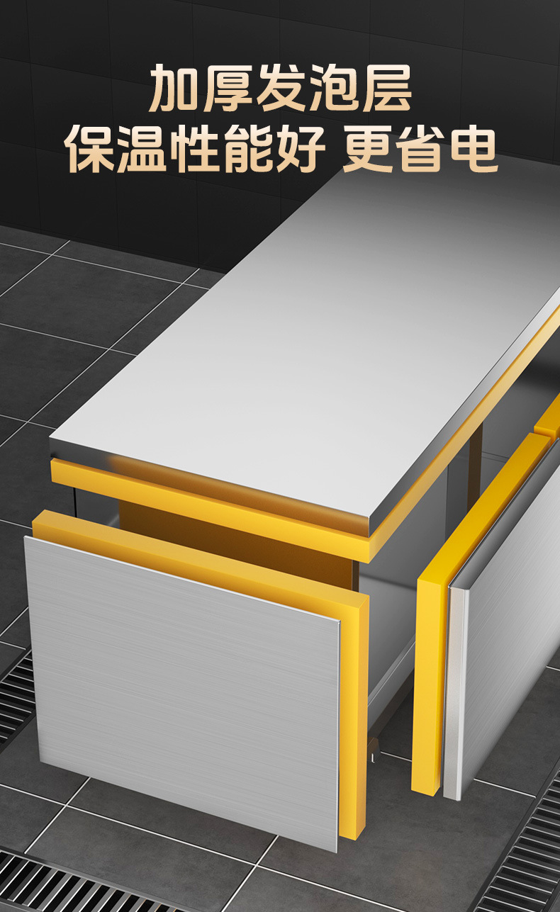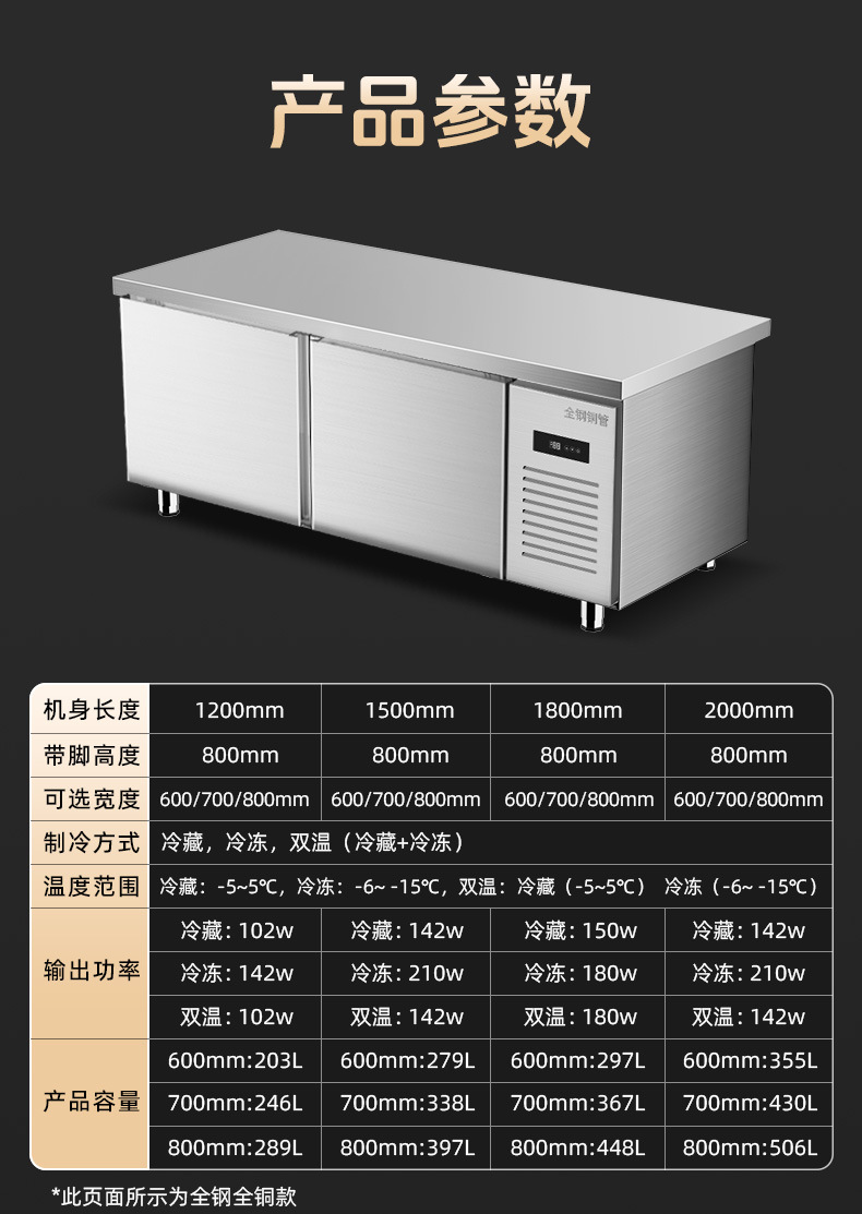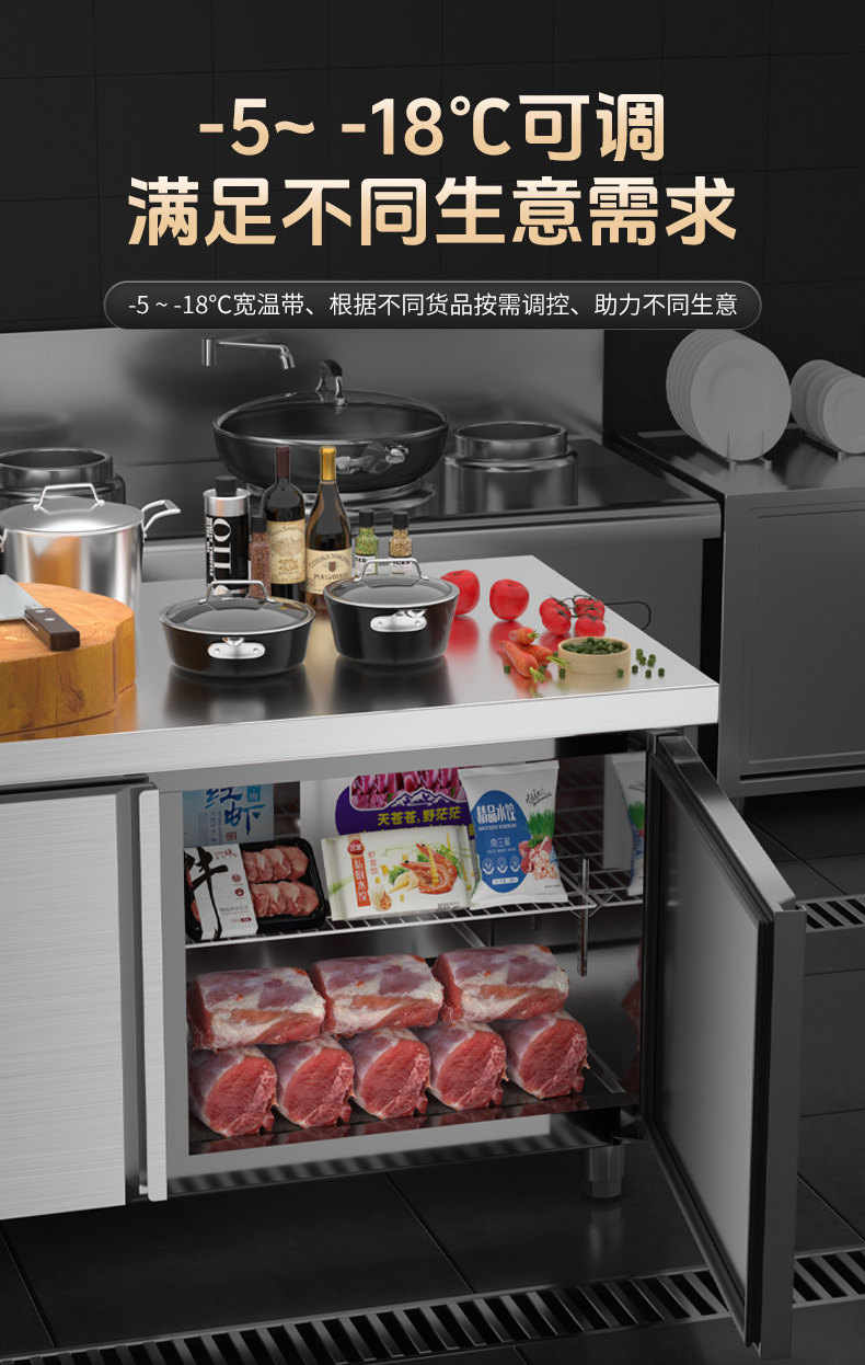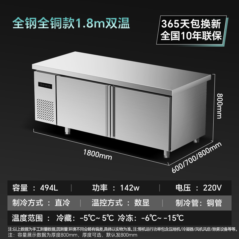 【1급 에너지 효율】전체 스틸 및 구리 소재 냉장 작업대 대용량 평면냉장고 상업용 주방 신선보관 캐비닛스토어 가기