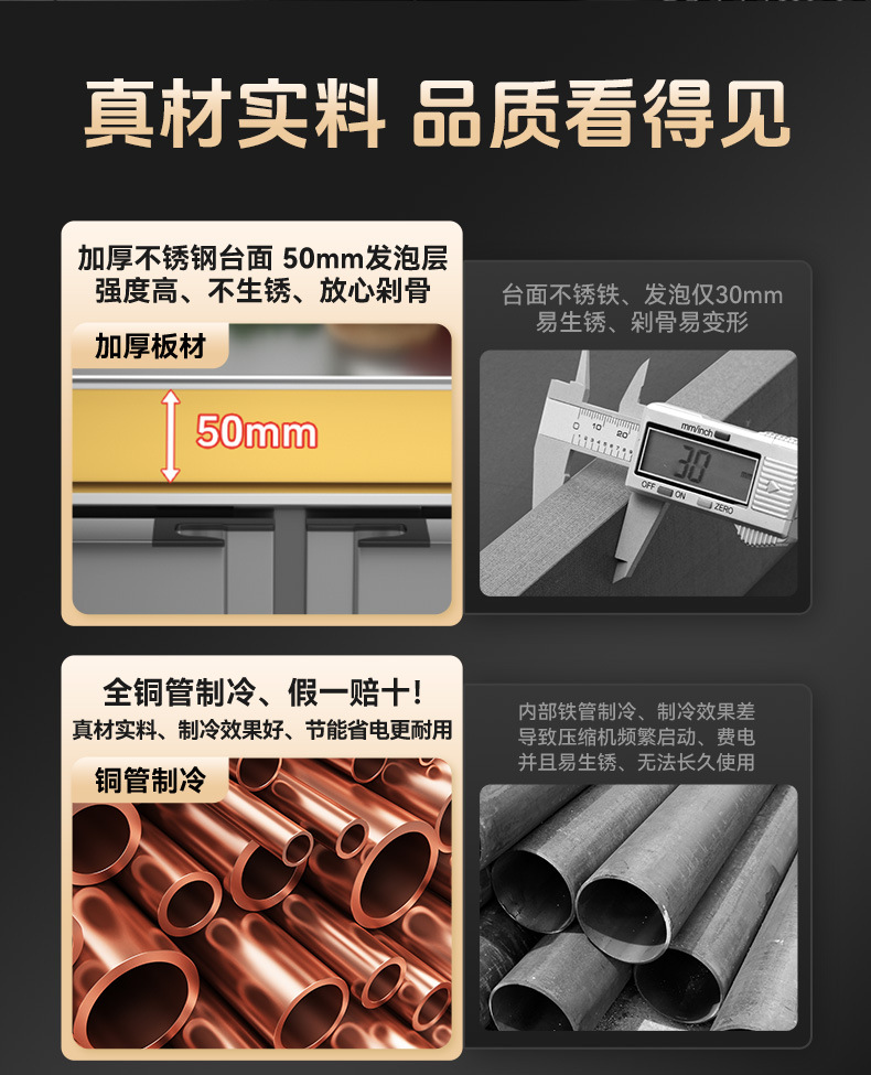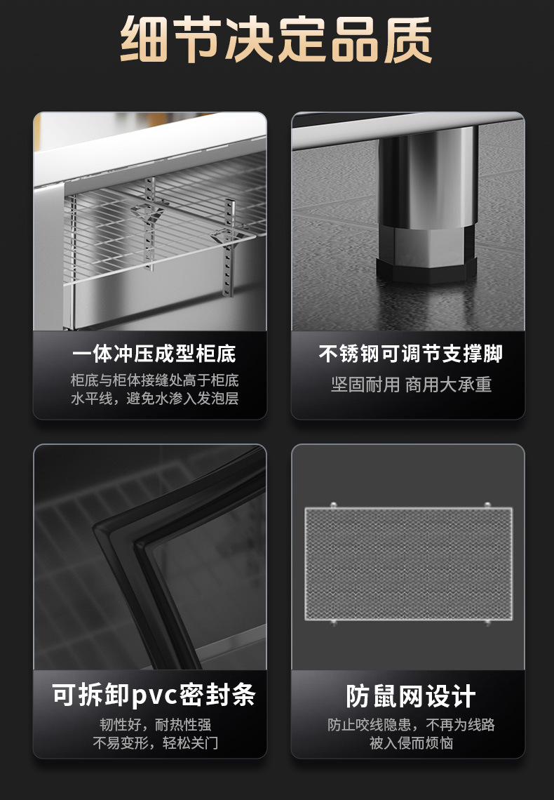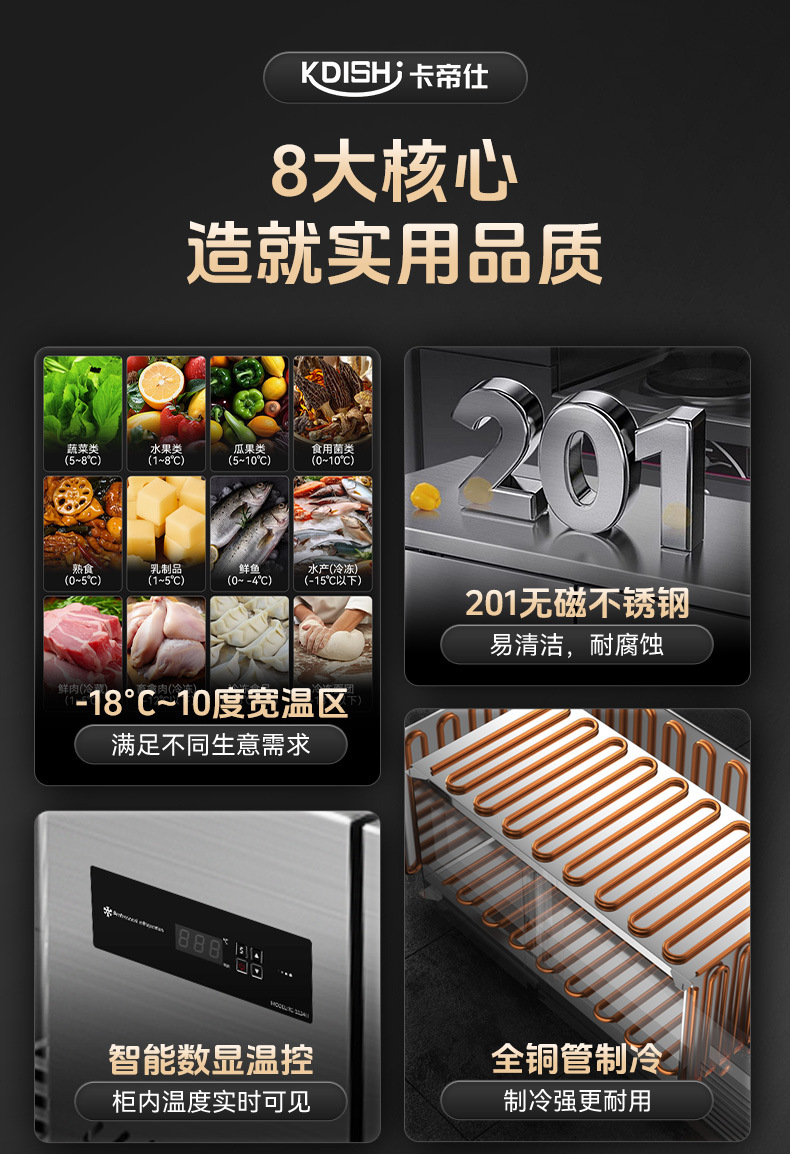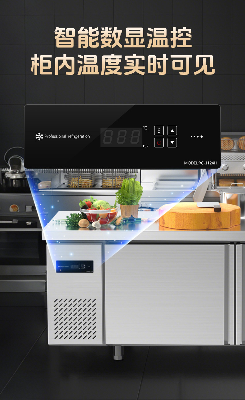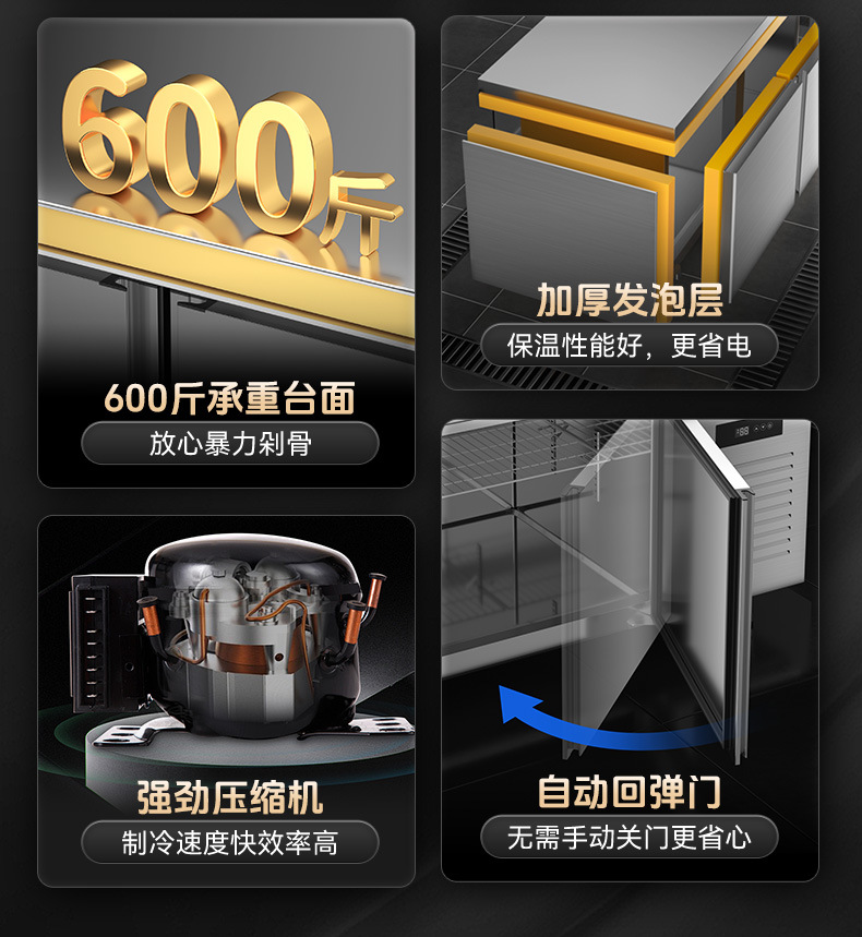 【1급 에너지 효율】전체 스틸 및 구리 소재 냉장 작업대 대용량 평면냉장고 상업용 주방 신선보관 캐비닛스토어 가기