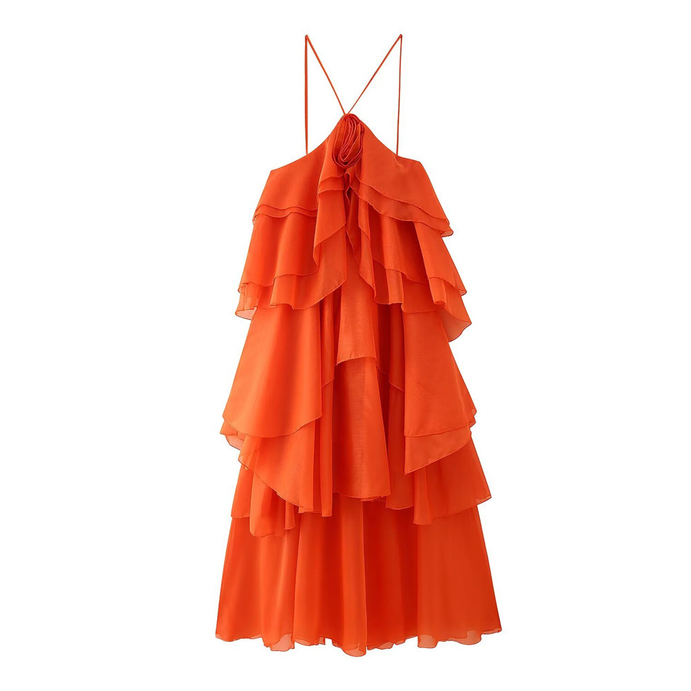 2025 여름 새로운 유럽과 미국 스타일의 패션 섹시한 뜨거운 소녀 계층화 된 장식 드레스