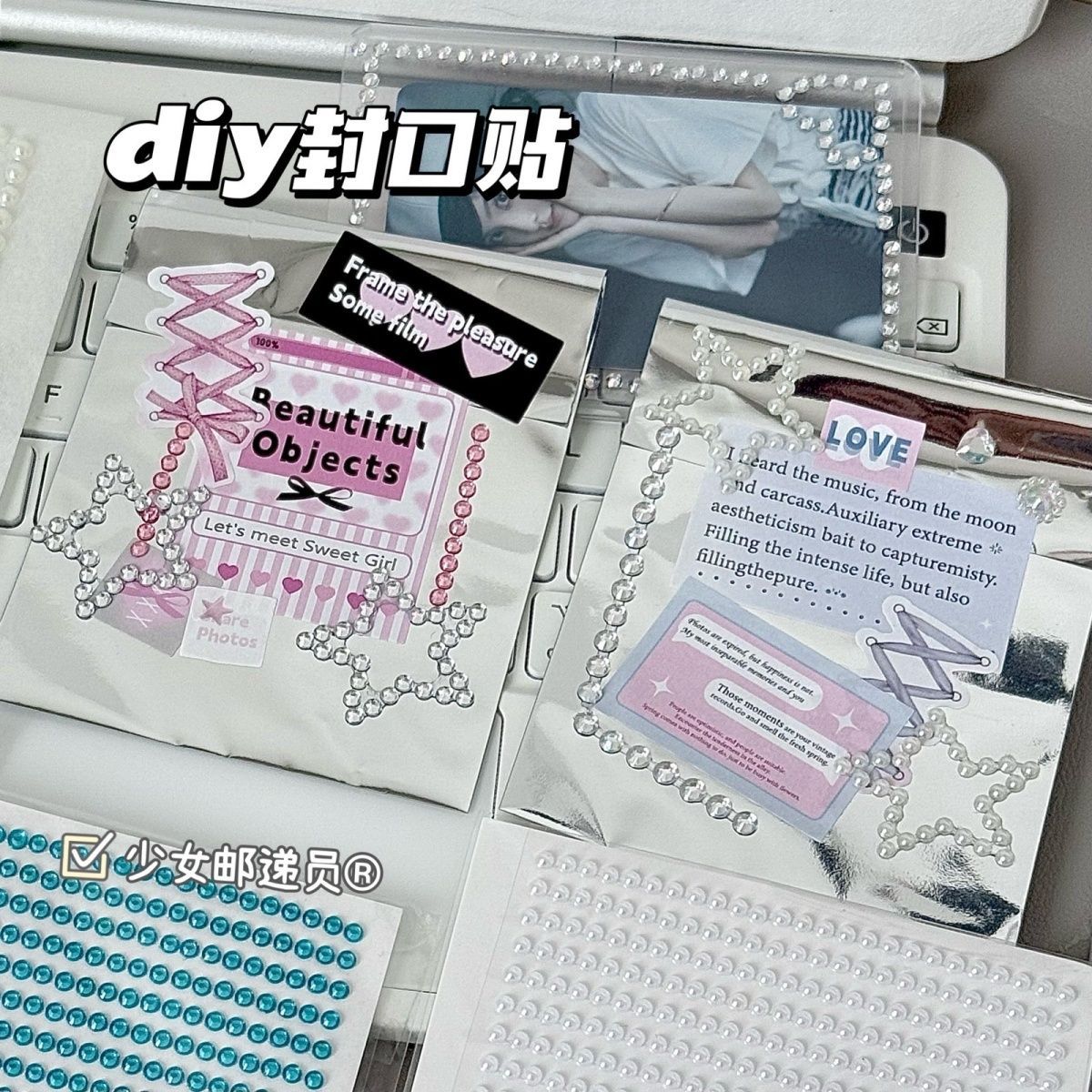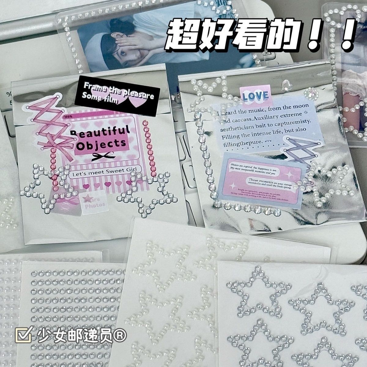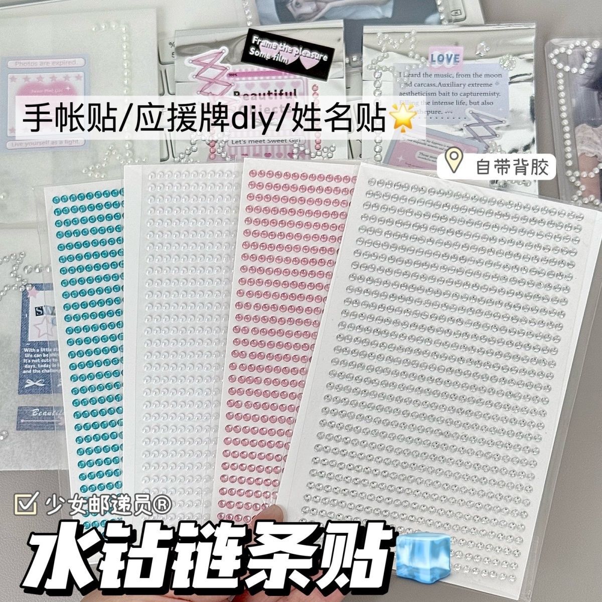 라인스톤 진주 체인 장식 스티커 블로거의 같은 스타일 입체 스티커 DIY 액세서리 스티커 카드 포장 재료 저렴한 스티커스토어 가기