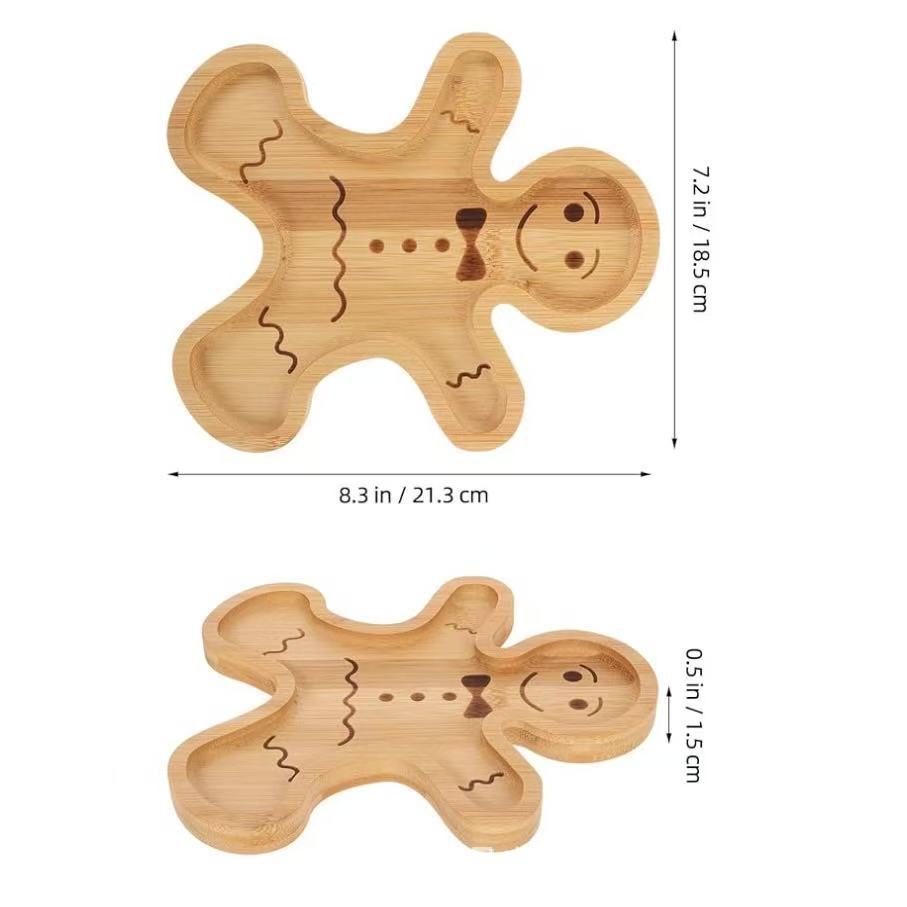 크리 에이 티브 간단한 대나무 진저 브레드 맨 트레이 크리스마스 단단한 나무 스낵 스낵 트레이 홈 나무 조리 식품 트레이