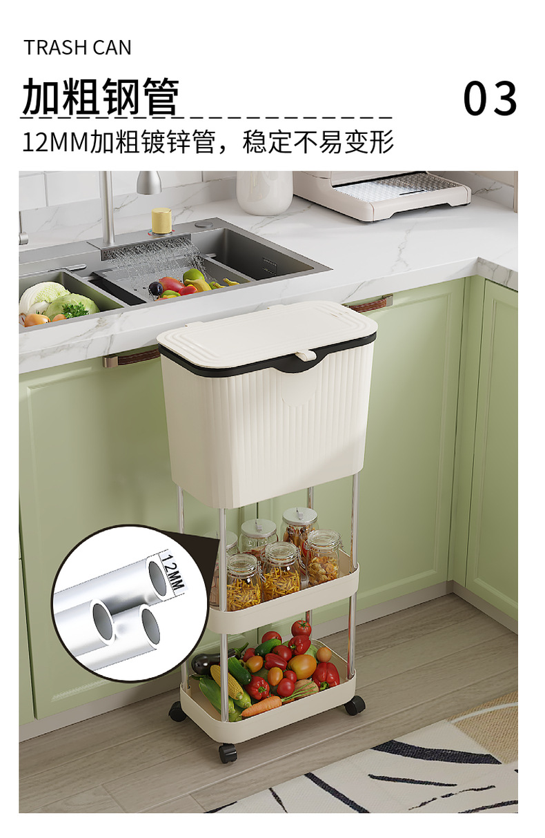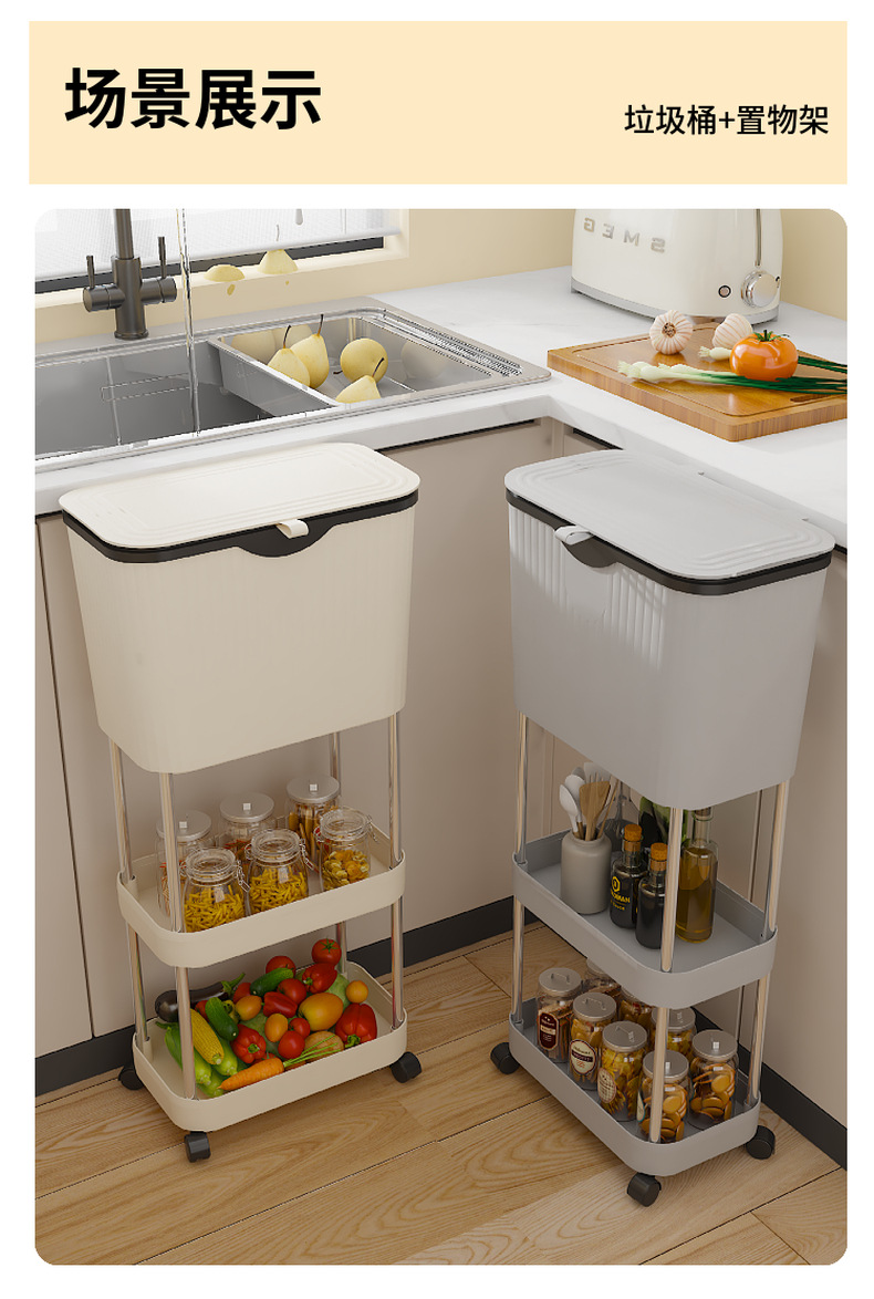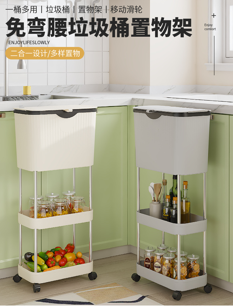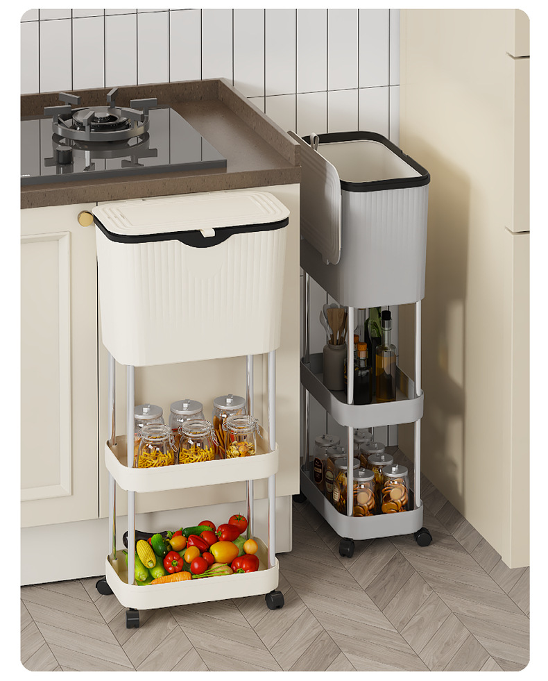 주방 계층화 된 쓰레기통 바닥 스탠딩 이동식 스토리지 랙 홈 주방 거실 침실 대용량 스토리지 랙