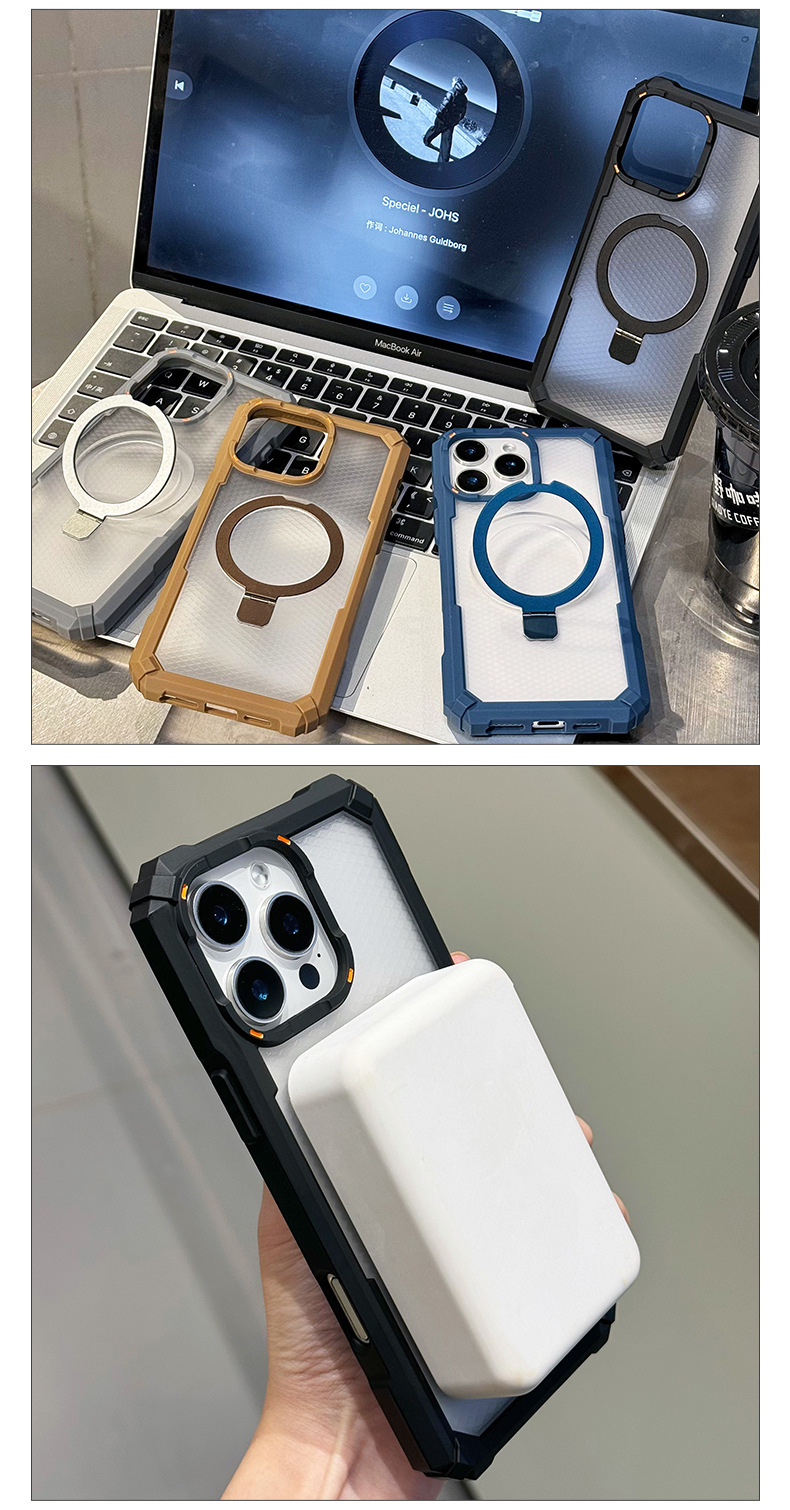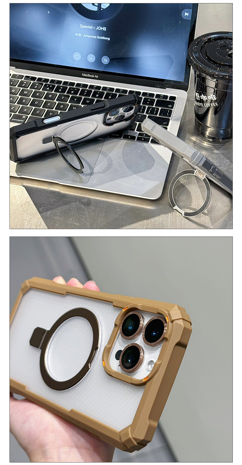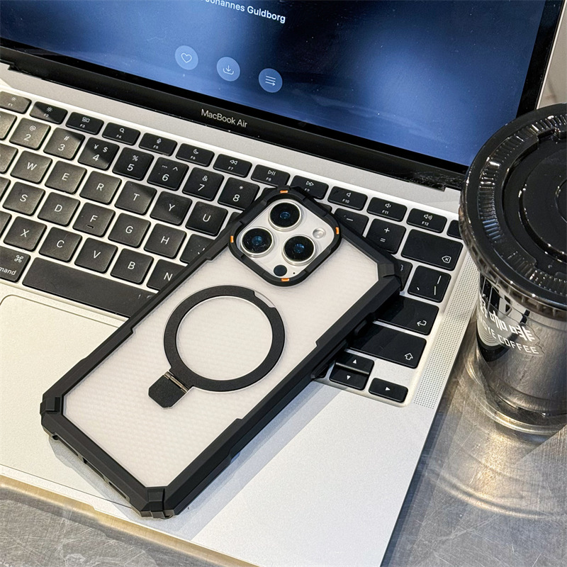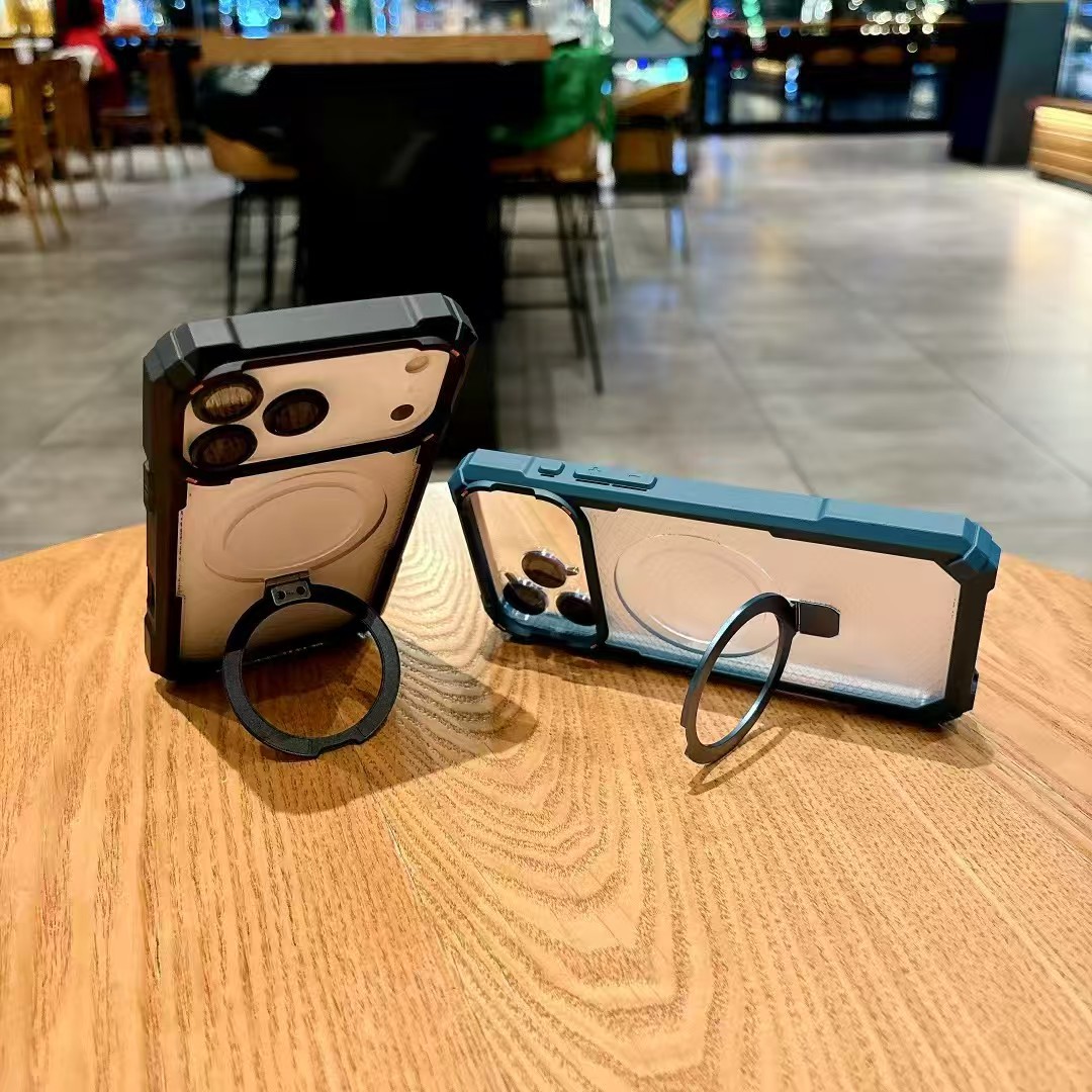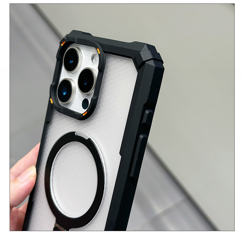 아이폰17에 적합한 네 모서리 충격 방지 원형 스탠드 케이스, 애플 15프로맥스 피부 느낌 무광 충격 방지 보호 케이스스토어 가기