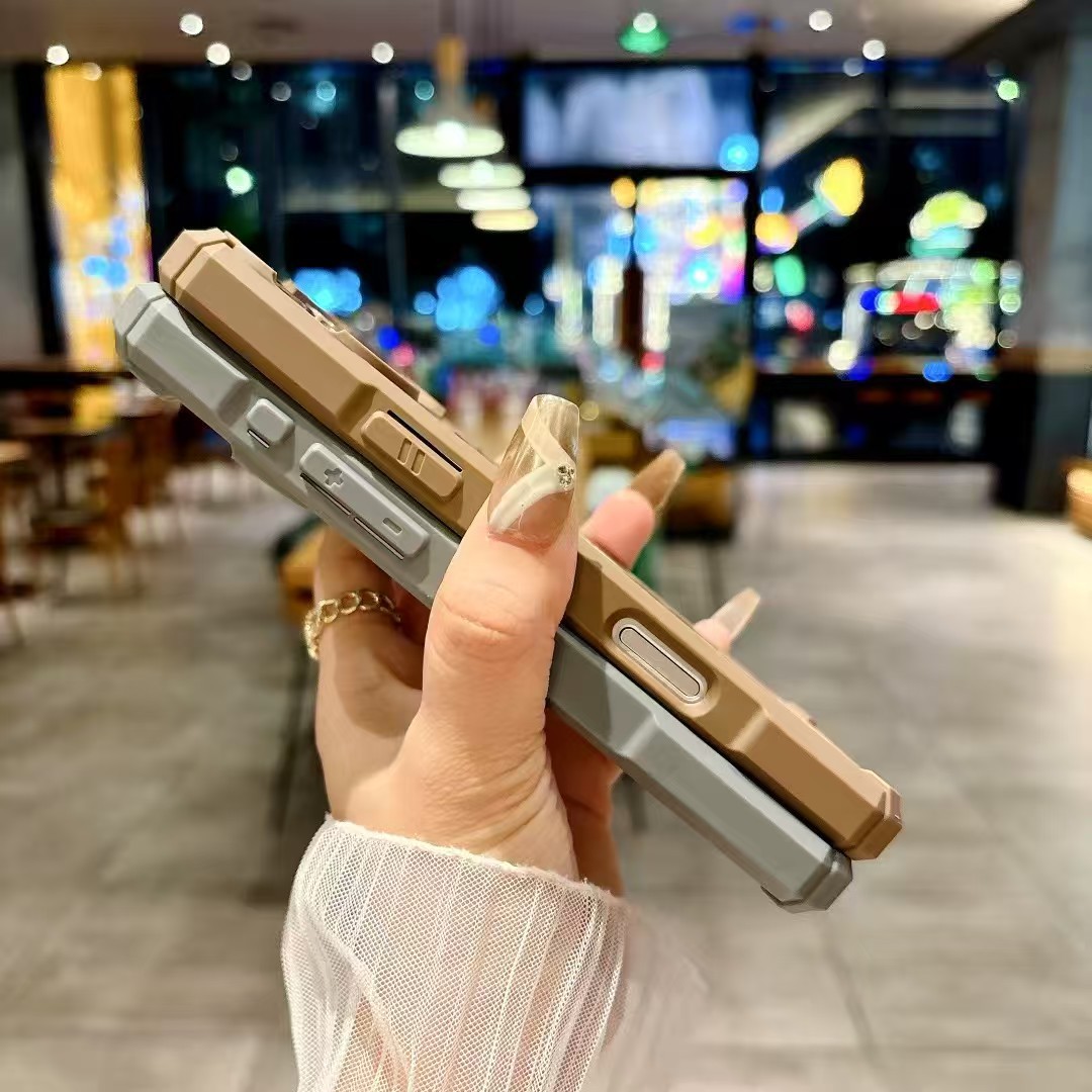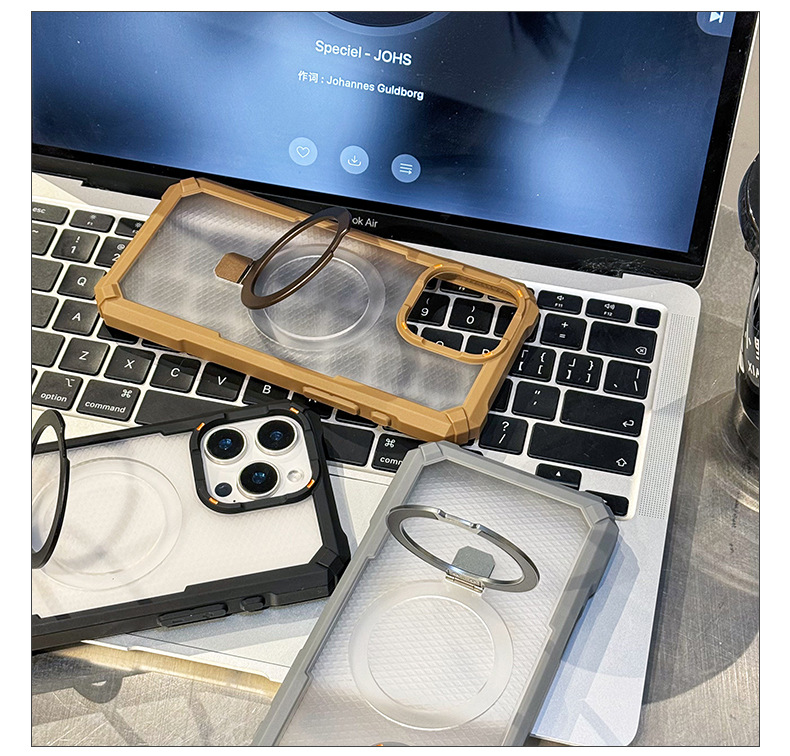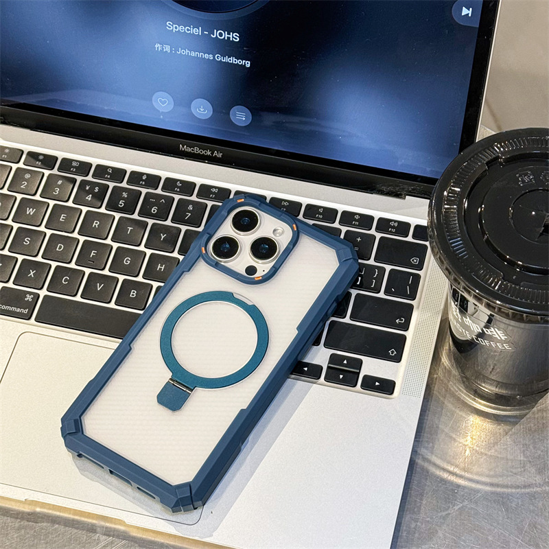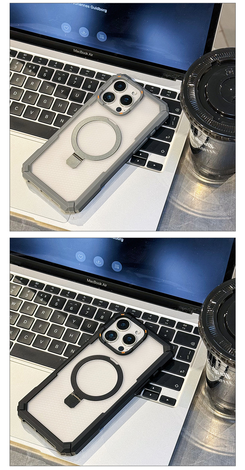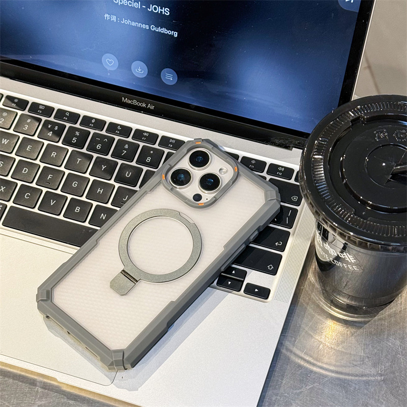 아이폰17에 적합한 네 모서리 충격 방지 원형 스탠드 케이스, 애플 15프로맥스 피부 느낌 무광 충격 방지 보호 케이스스토어 가기