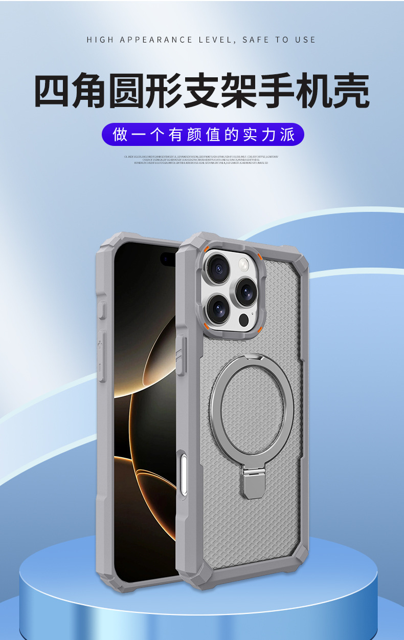 아이폰17에 적합한 네 모서리 충격 방지 원형 스탠드 케이스, 애플 15프로맥스 피부 느낌 무광 충격 방지 보호 케이스