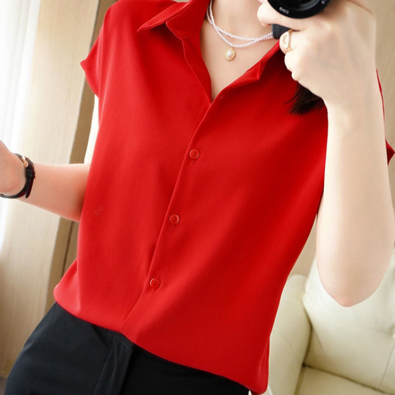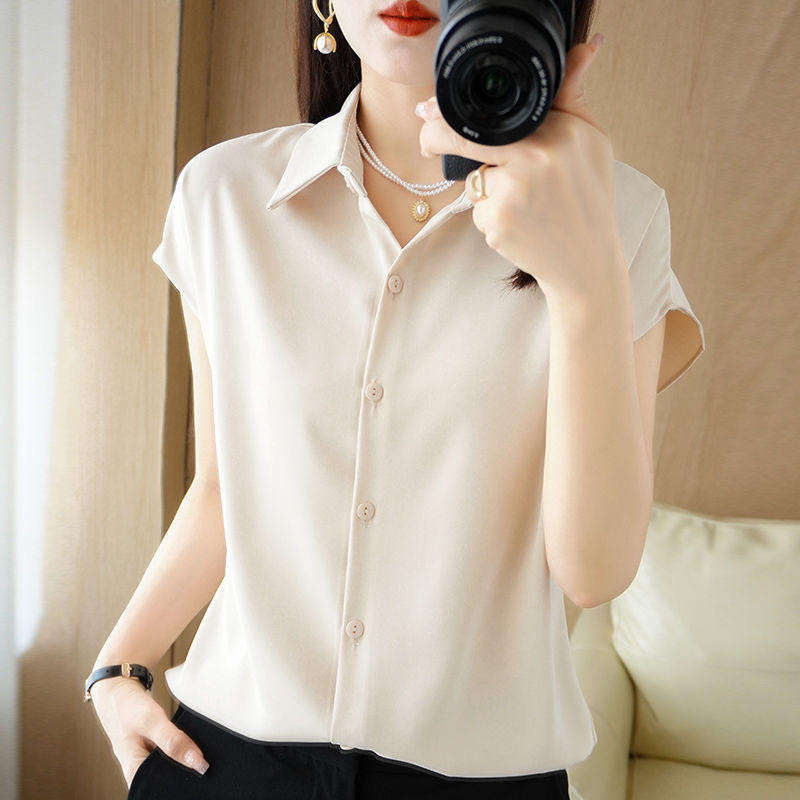 여름 반팔 쉬폰 셔츠 여성 짧은 여름 옷 2025 새로운 스타일 탑 얇은 셔츠는 배를 덮고 슬림하게 보입니다.