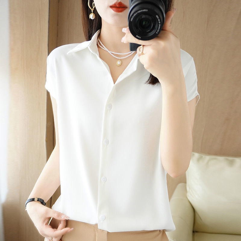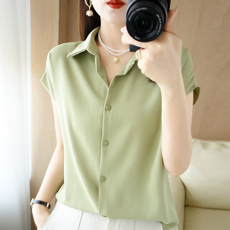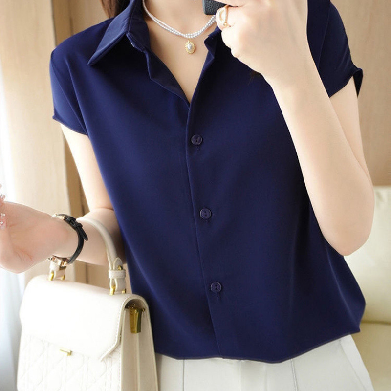 여름 반팔 쉬폰 셔츠 여성 짧은 여름 옷 2025 새로운 스타일 탑 얇은 셔츠는 배를 덮고 슬림하게 보입니다.스토어 가기