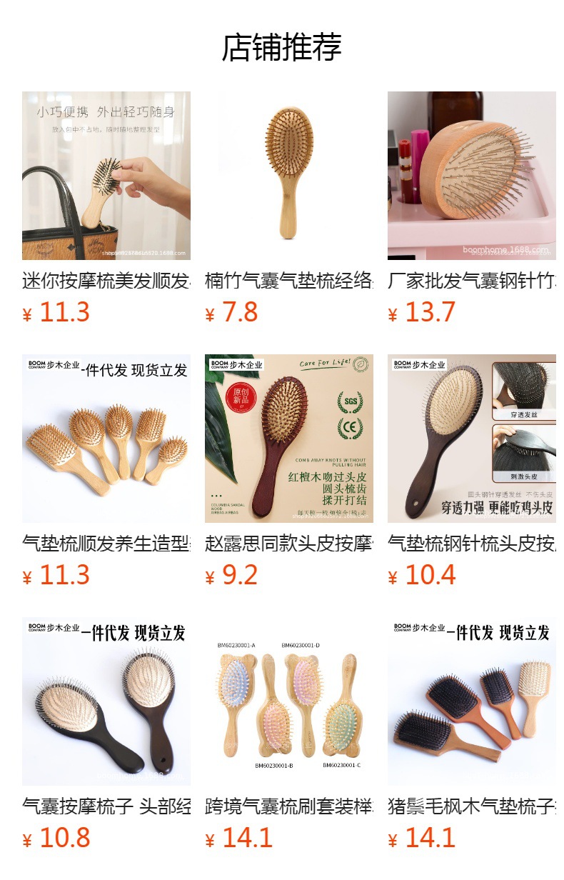 答:木竹发刷、宠物梳妆刷、浴刷、木梳、木纸盒等家用木/竹制品产品。
