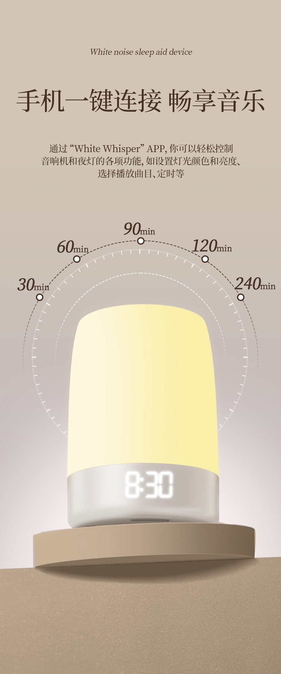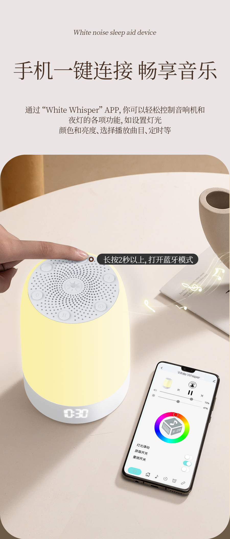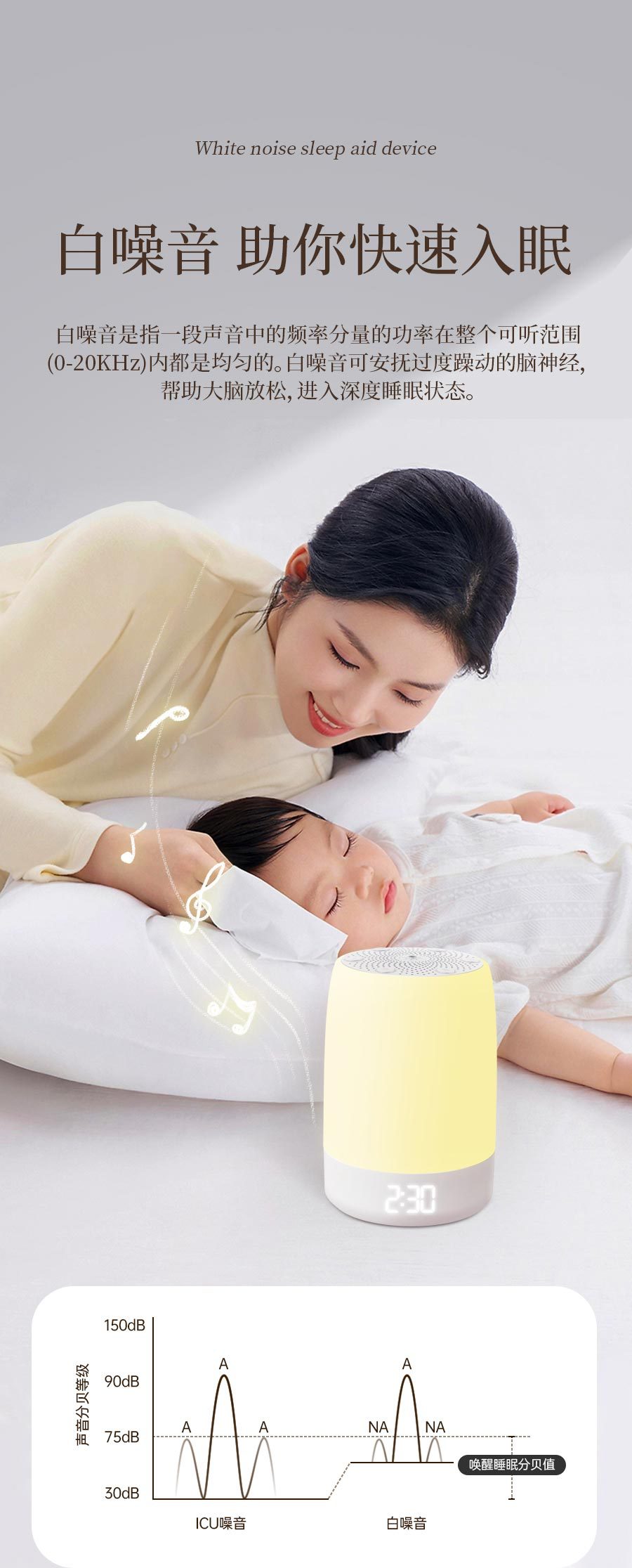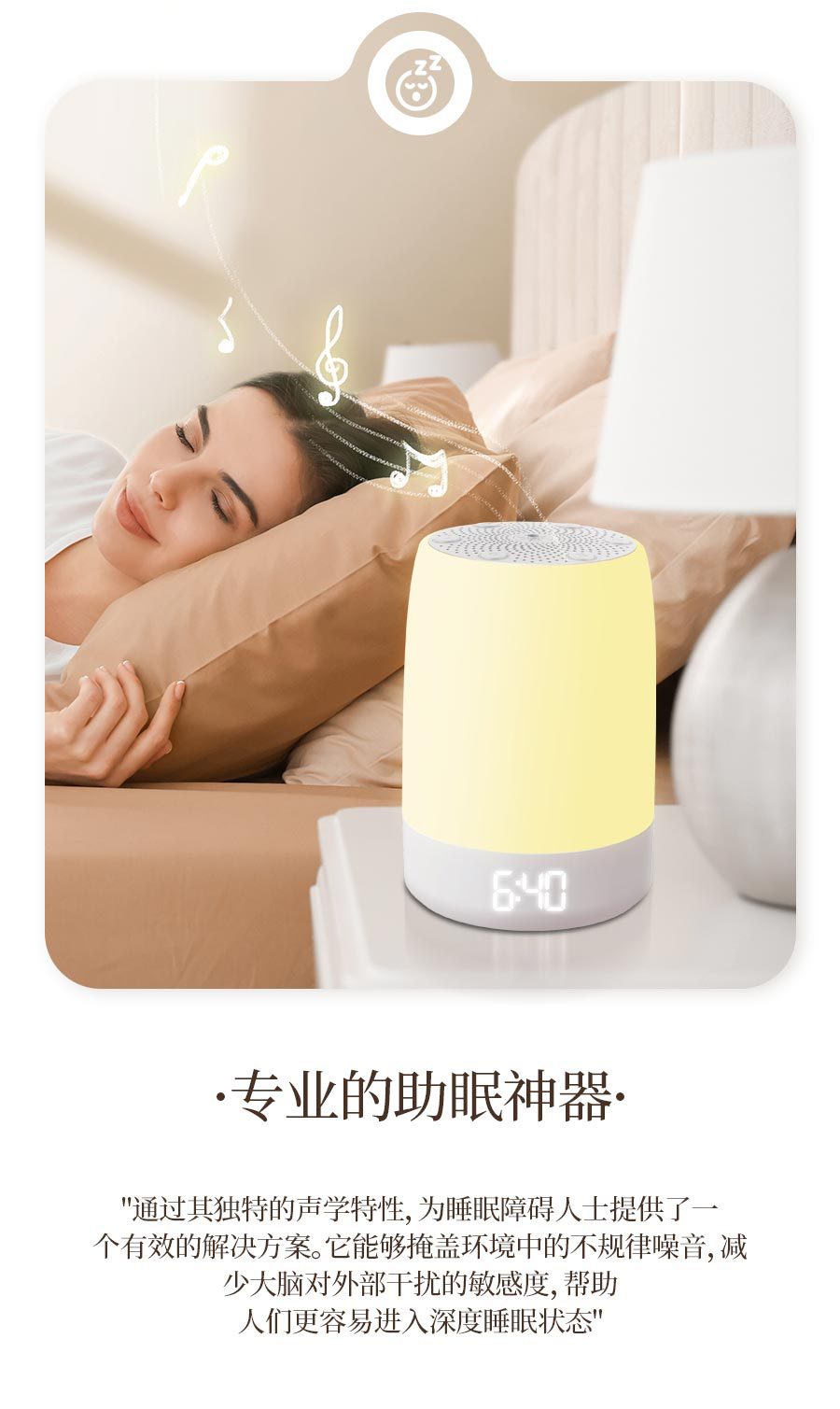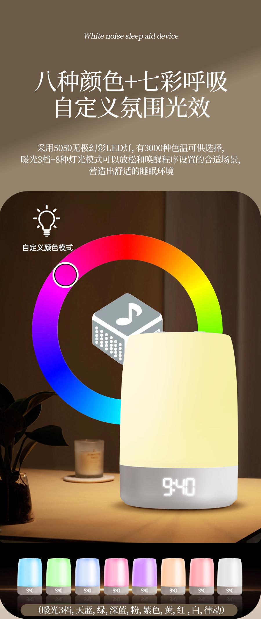 2.七彩助眠灯光,多种灯光模式,根据个人喜好调节色彩与亮度,营造出独一无二的温馨睡眠氛围
