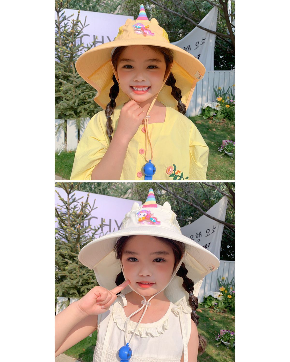 레인보우 포니 대형 목도리 소녀 어부 모자 여름 새로운 어린이 분지 모자 태양 보호 모자 가벼운 태양 모자스토어 가기
