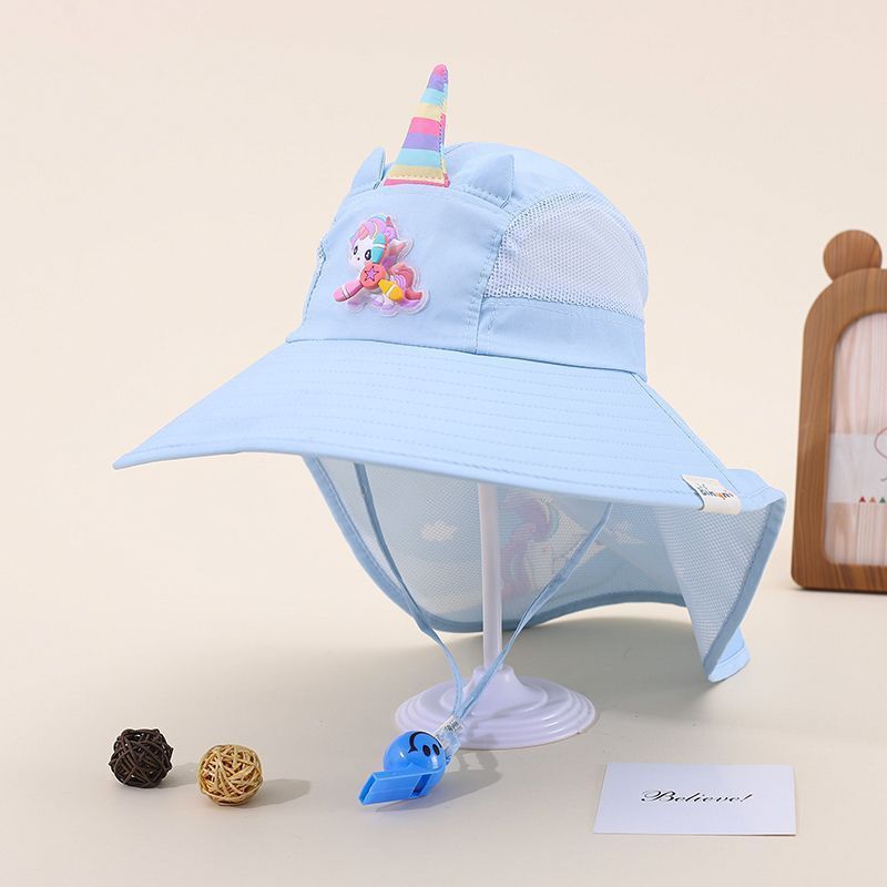 레인보우 포니 대형 목도리 소녀 어부 모자 여름 새로운 어린이 분지 모자 태양 보호 모자 가벼운 태양 모자