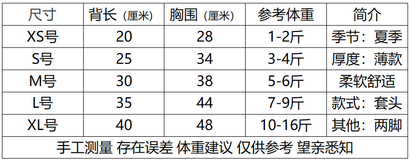 • XS 등길이 20cm (권장 0.5-1.0kg)