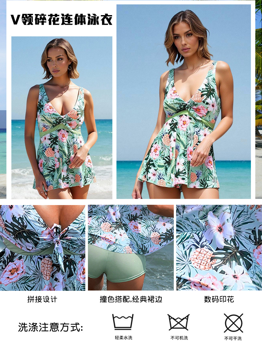 여성 수영복, 보수적이고 섹시한 스커트 스타일 온천 원피스 수영복, 배를 커버해 날씬해 보이는 효과, 2025년 신상 패셔너블하고 상큼한 슬리밍 수영복