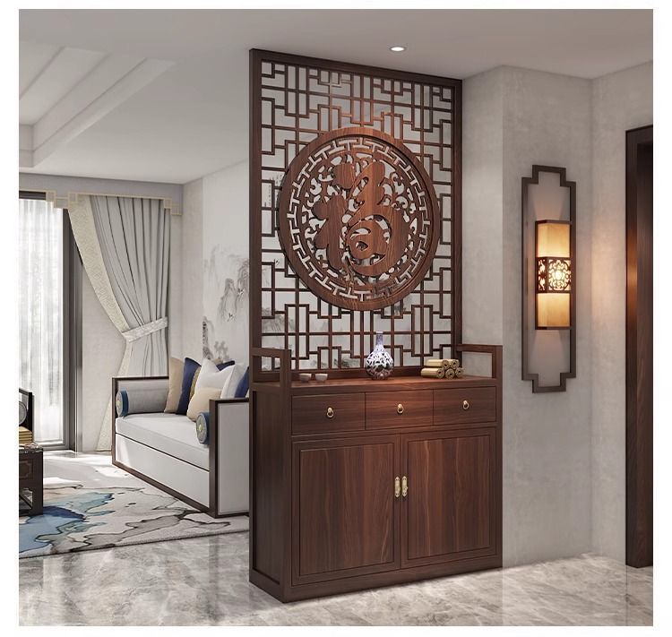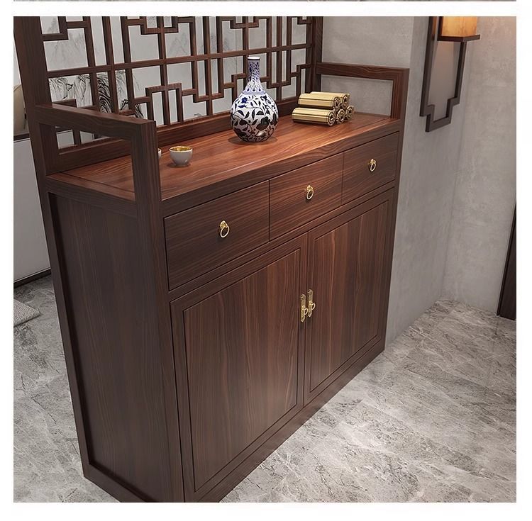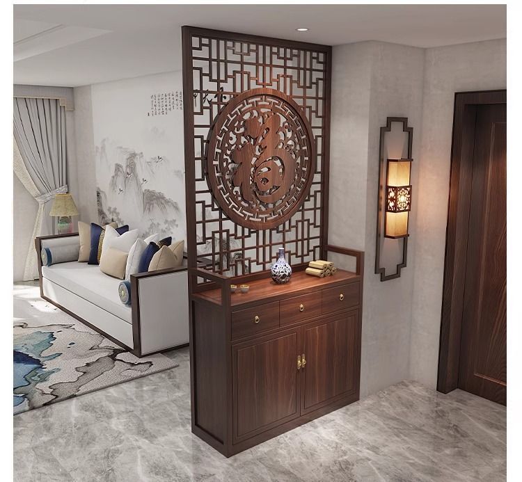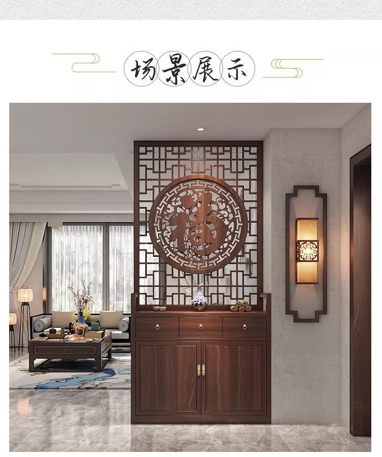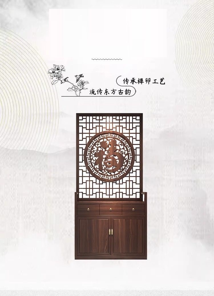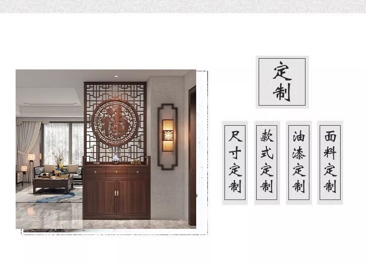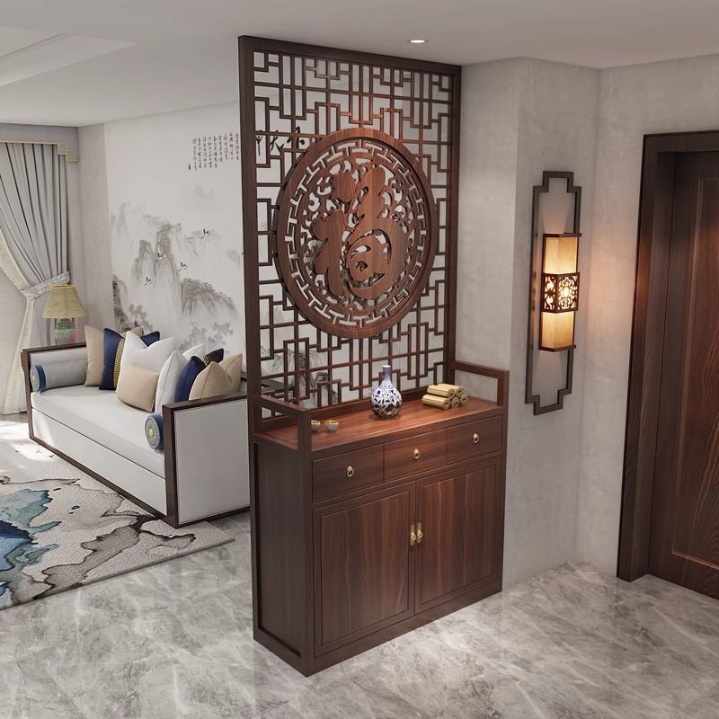 단단한 나무 새로운 중국 스타일 입구 신발 캐비닛 스크린 파티션 거실 현대 그릴 축복 문자 양각 간단한 차단