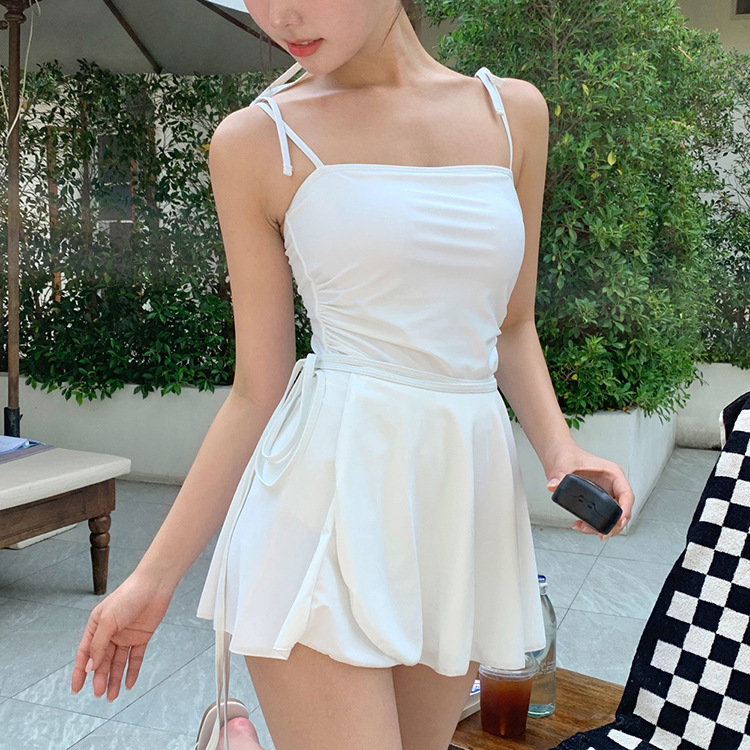여성용 한국 신상 솔리드 컬러 원피스 수영복, 스트랩, 달콤한 배 커버, 슬리밍, 보수적인 스커트, 휴가 수영복 투피스 세트스토어 가기