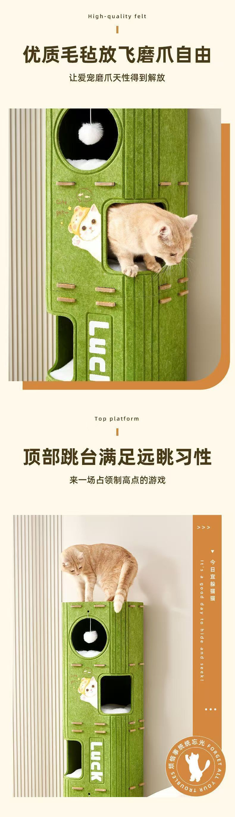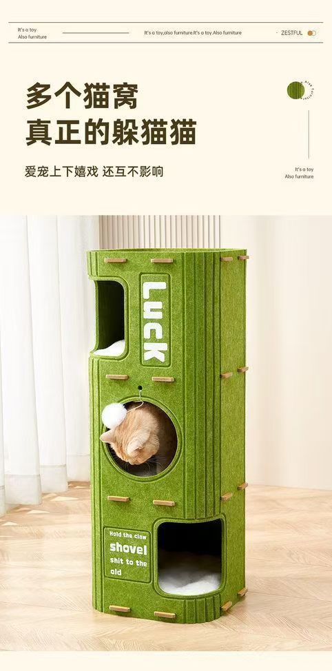 다층 구멍이 뚫린 고양이 둥지, 고양이 클라이밍 프레임, 내마모성 나무 구멍 고양이 집, 2층 스크래치 보드, 5층 이동식, 사계절 사용 가능스토어 가기