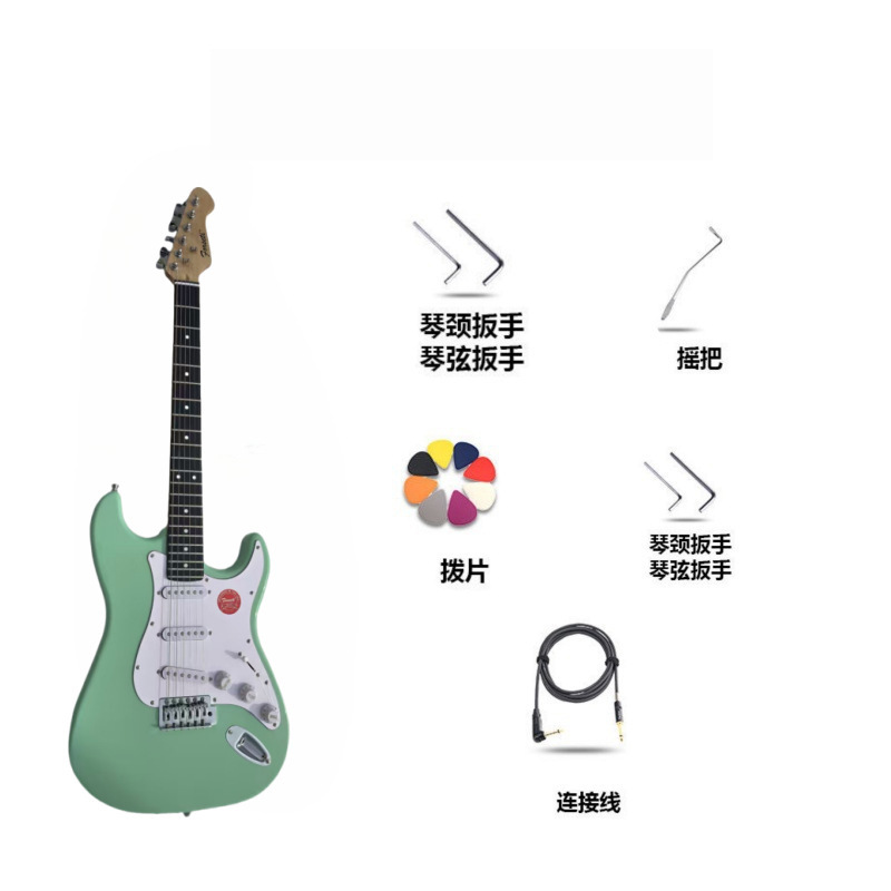 제조업체 도매 st 일렉트릭 기타 그린 록 악기 초보자용 입문용 원목 싱글/더블 크로스보더 인기 기타스토어 가기