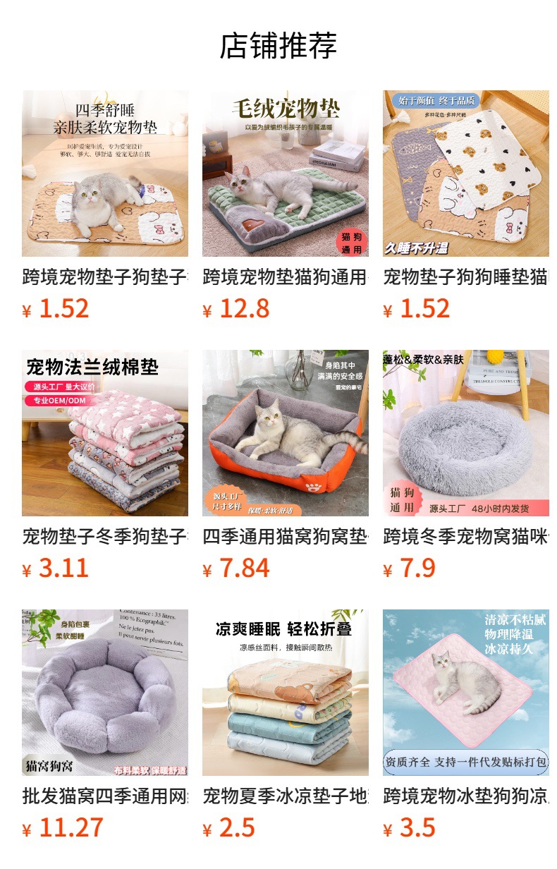 사계절용 애완견 침대, 캔디 컬러 테디 애완동물 침대, 중소형견 침대, 고양이 침대, 따뜻한 사각형 애완동물 침대스토어 가기