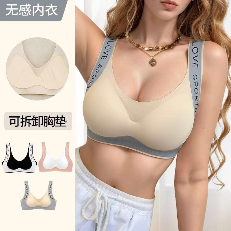가슴이 작은 여성용 심리스 스포츠 브라, 푸쉬업, 보조가슴축소, 푸쉬업, 편안함, 와이어프리, 통기성, 와이드숄더 브라