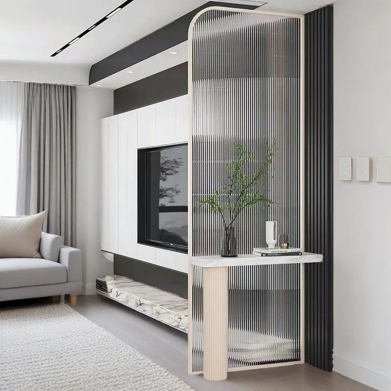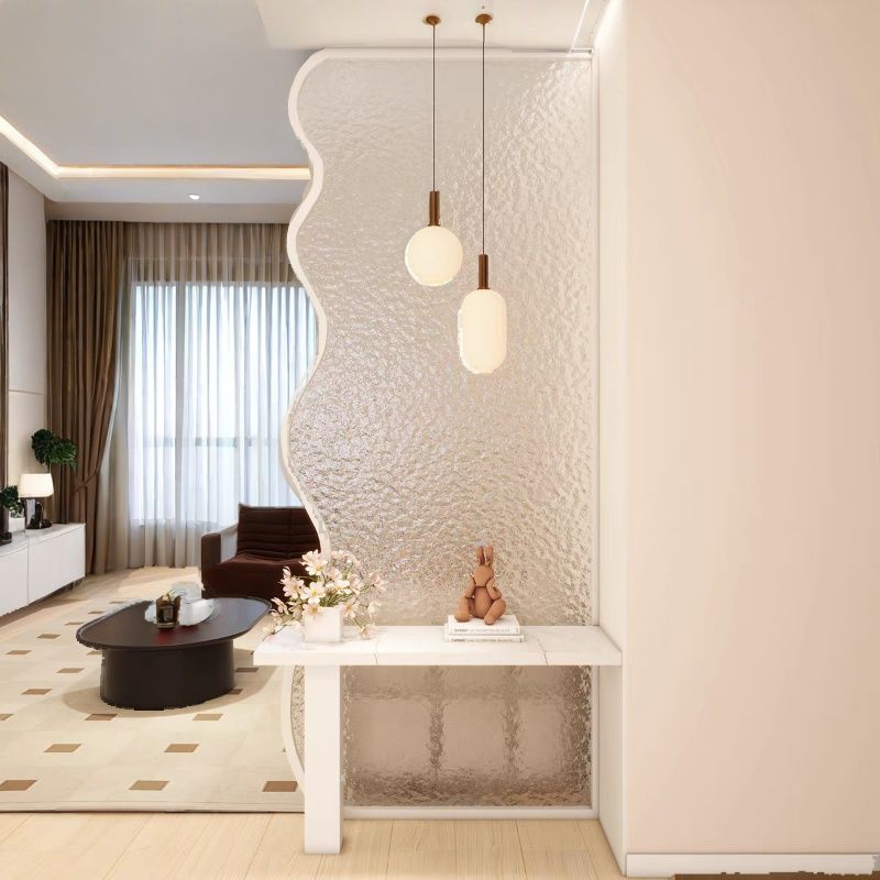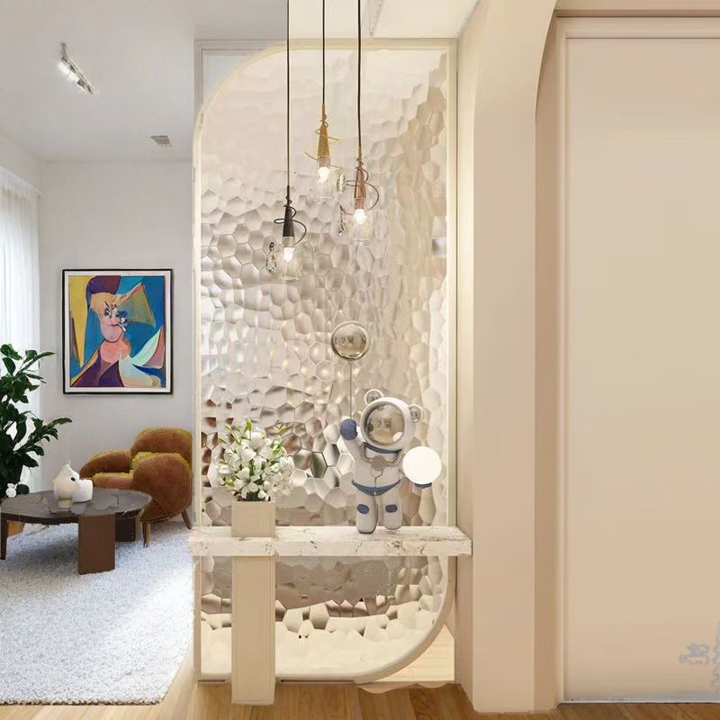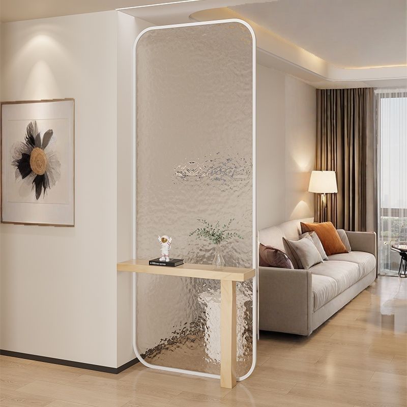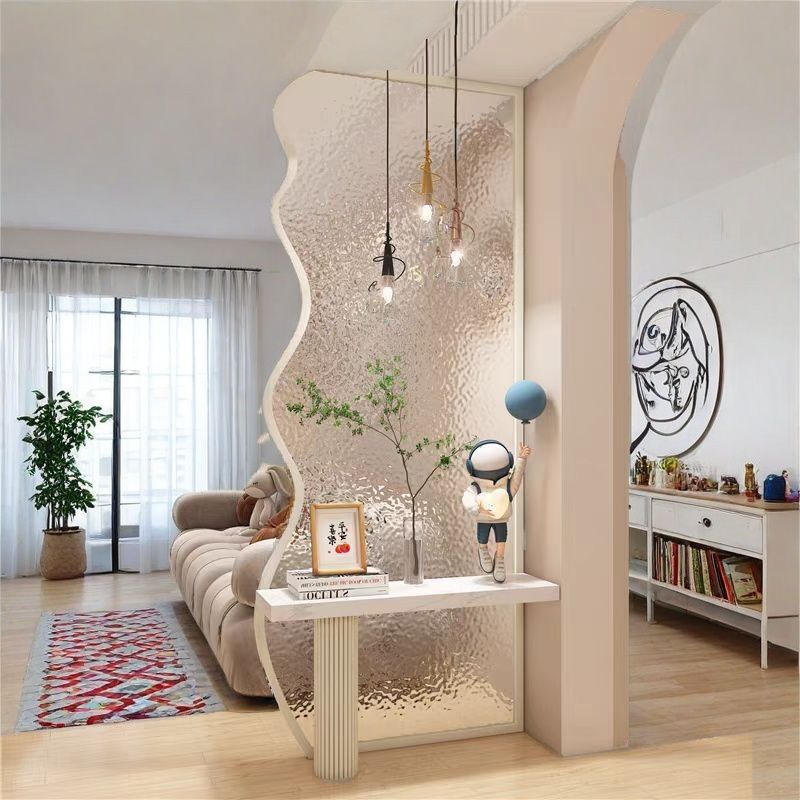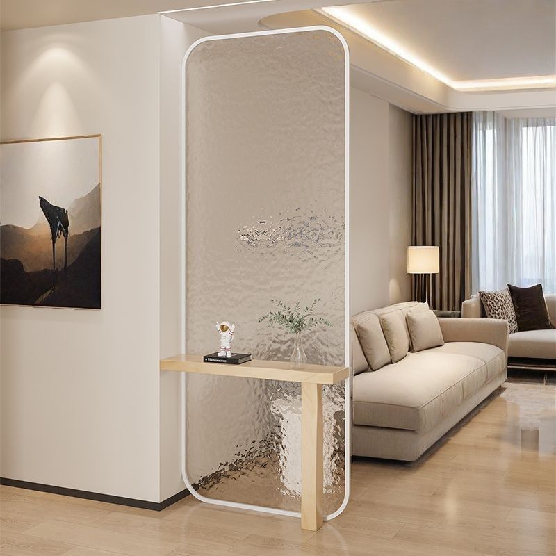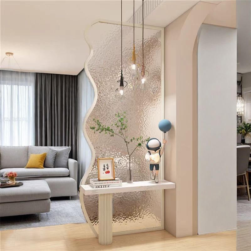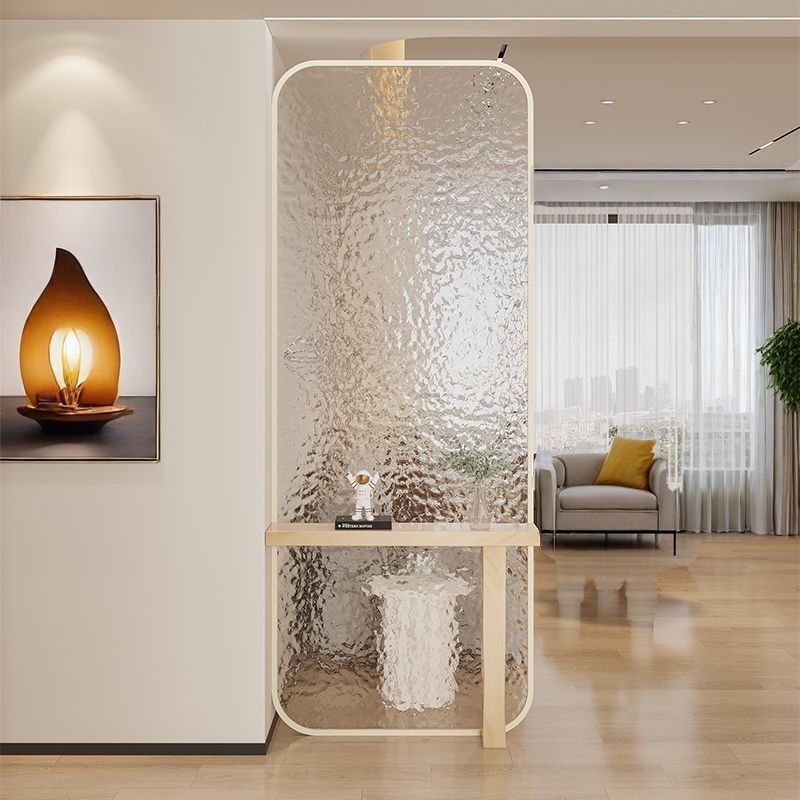 크림 스타일 롱 레인 워터 패턴 유리 현대적인 심플하고 가벼운 럭셔리 입구 차단 현관 거실 파티션 스크린 선반