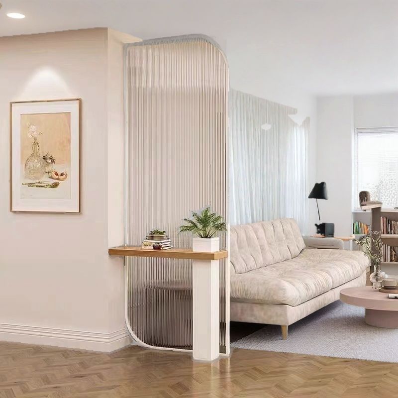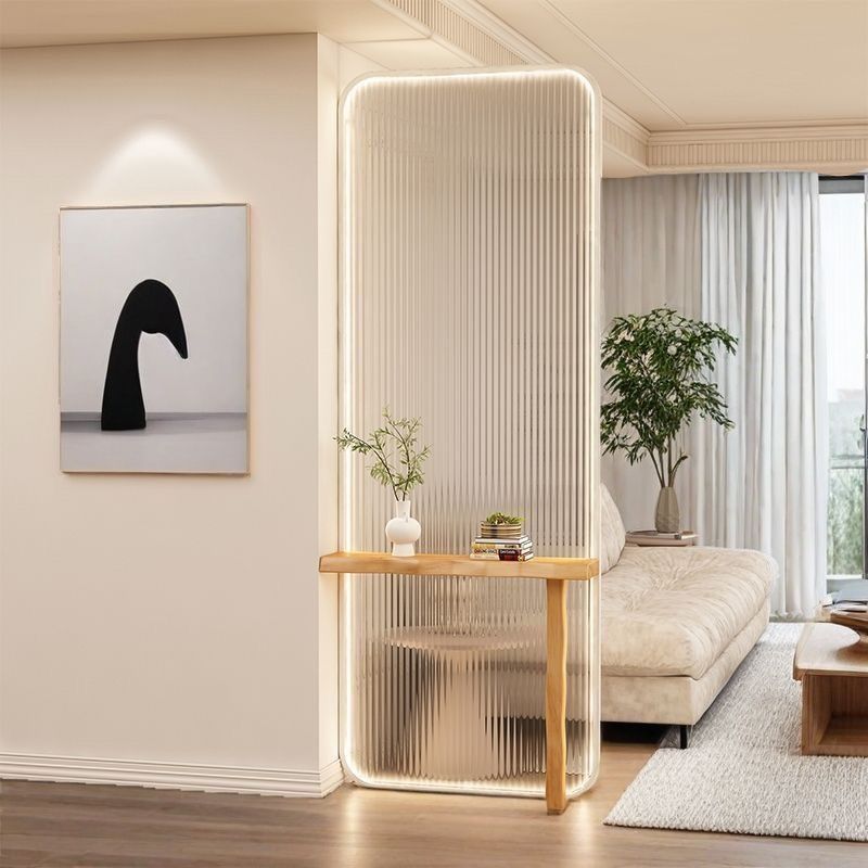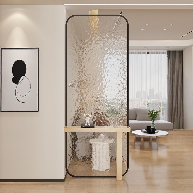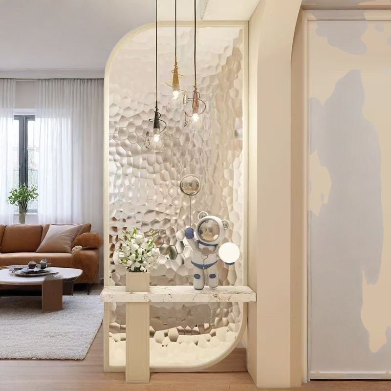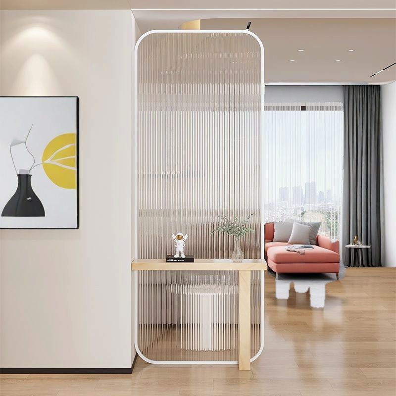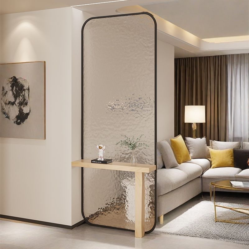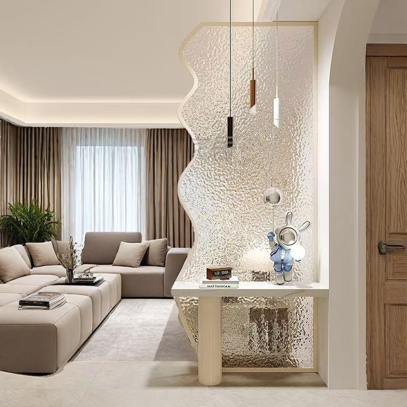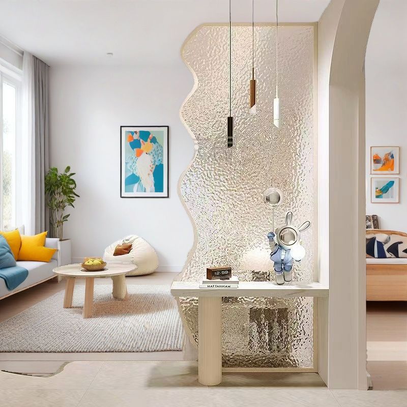 크림 스타일 롱 레인 워터 패턴 유리 현대적인 심플하고 가벼운 럭셔리 입구 차단 현관 거실 파티션 스크린 선반