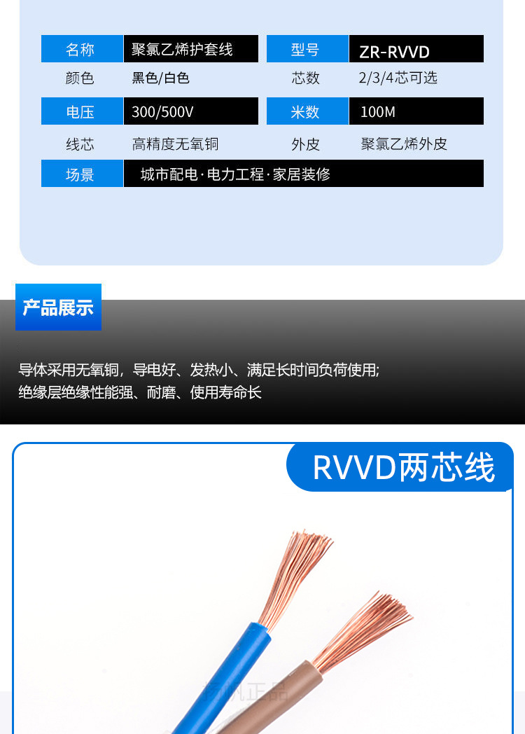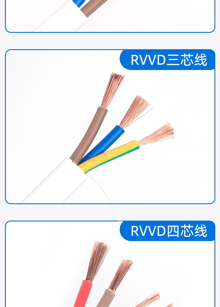 RVVD 무산소 구리심 케이블 2/3/4심 엔지니어링 절연 피복선 rvvd 난연성 및 내화성 전선 케이블스토어 가기
