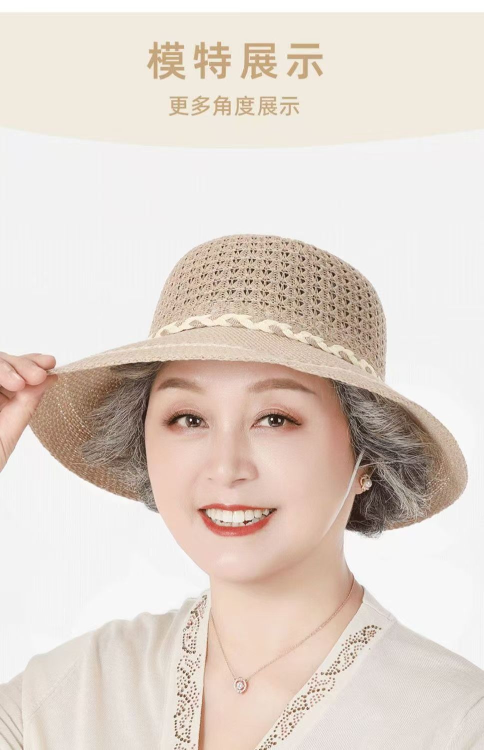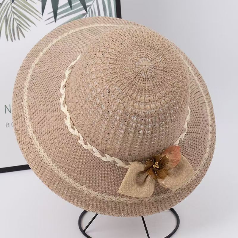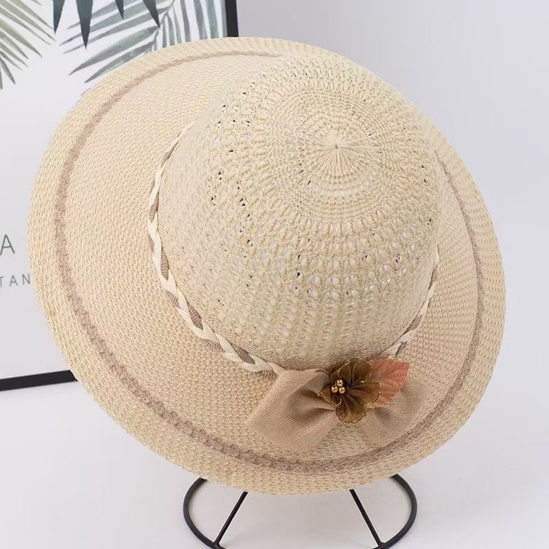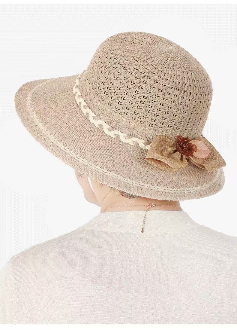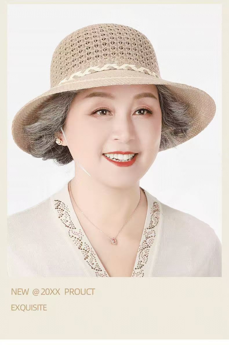 엄마들을 위한 여성용 자외선 차단 모자, 2026년 여름 신상품, 속이 비어있는 땋은 모자, 중노년 여성용 리본 장식 어부 모자스토어 가기