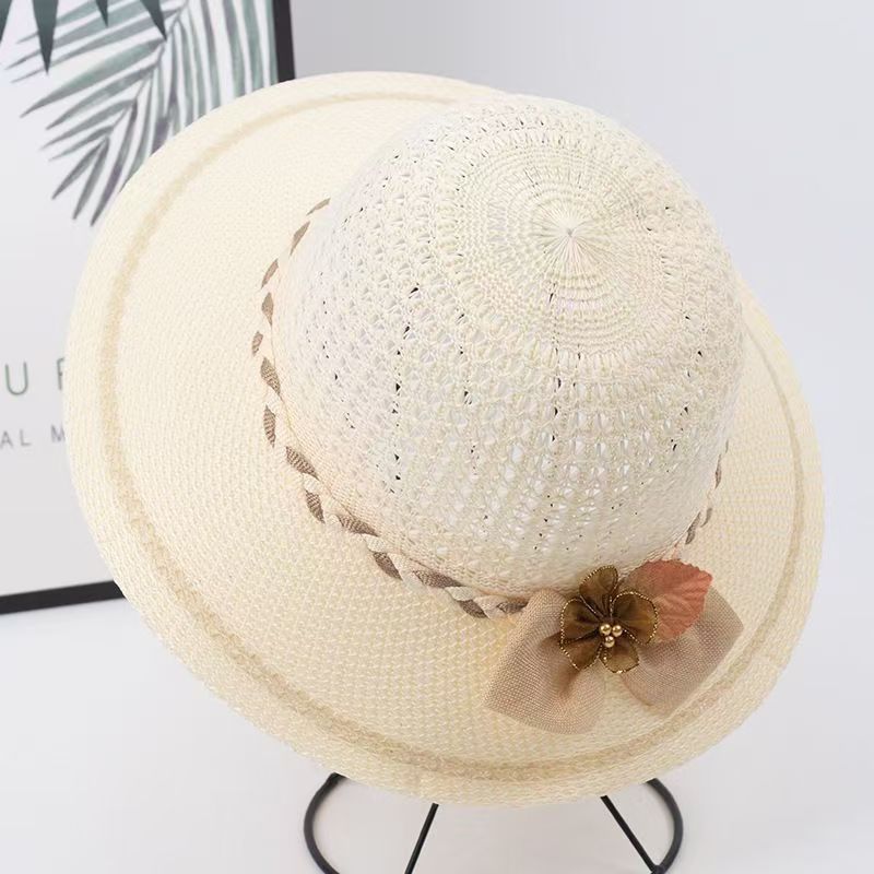 엄마들을 위한 여성용 자외선 차단 모자, 2026년 여름 신상품, 속이 비어있는 땋은 모자, 중노년 여성용 리본 장식 어부 모자