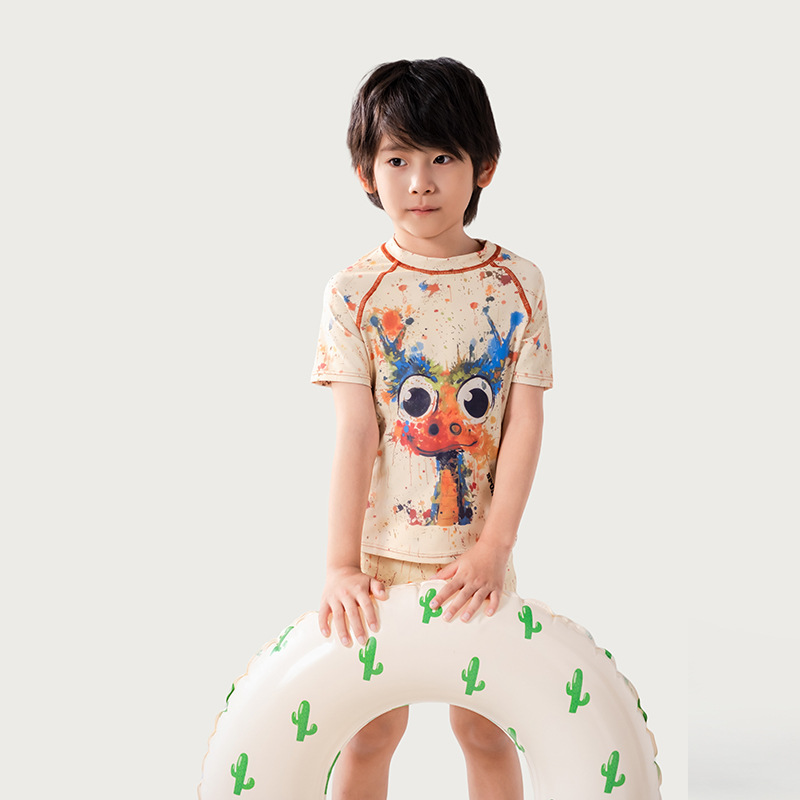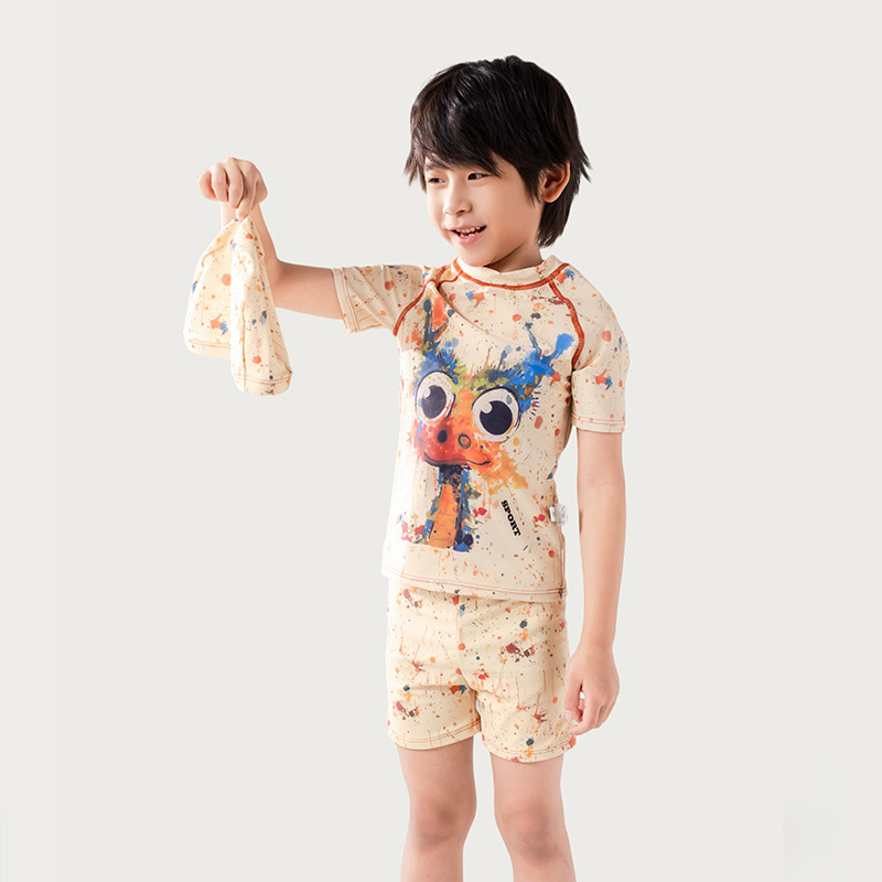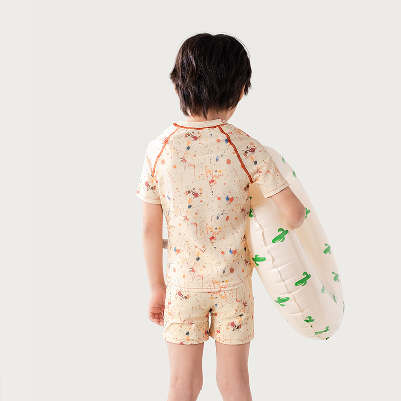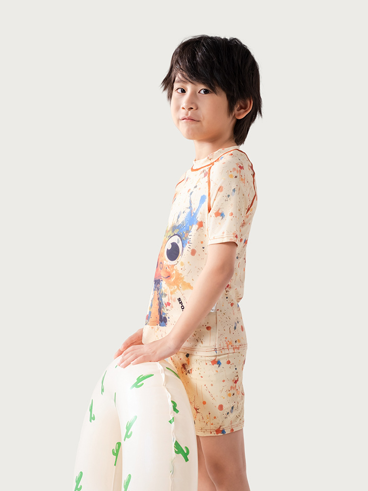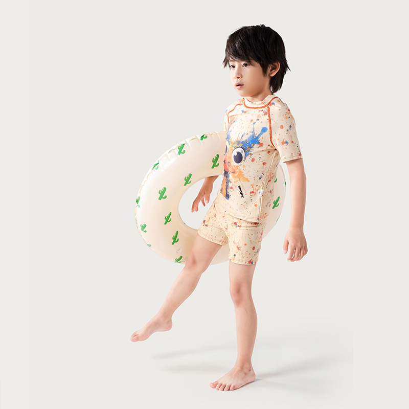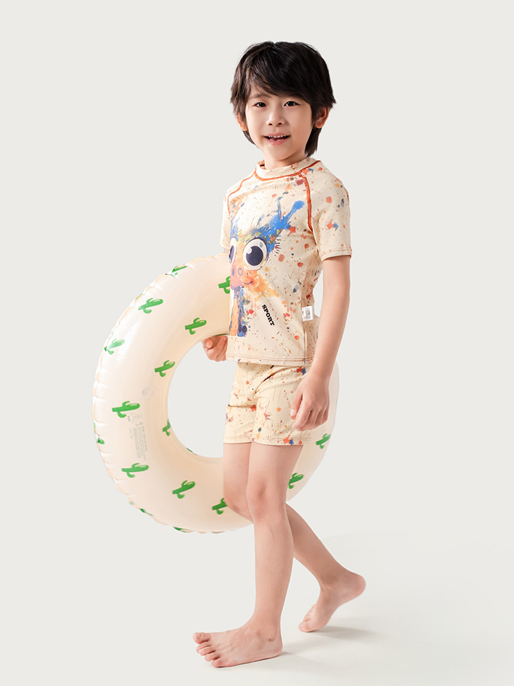 어린이 낙서 만화 수영복 소년 유행 컬러 스플래시 잉크 반팔 반바지 스플릿 수영복 세트 빠른 건조 휴가스토어 가기