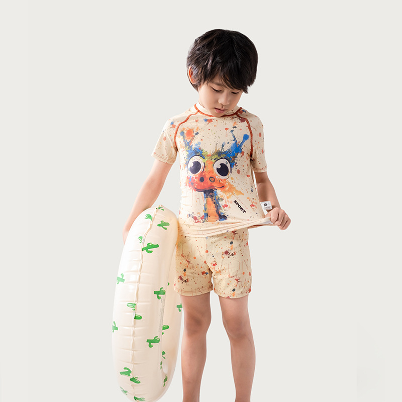 어린이 낙서 만화 수영복 소년 유행 컬러 스플래시 잉크 반팔 반바지 스플릿 수영복 세트 빠른 건조 휴가