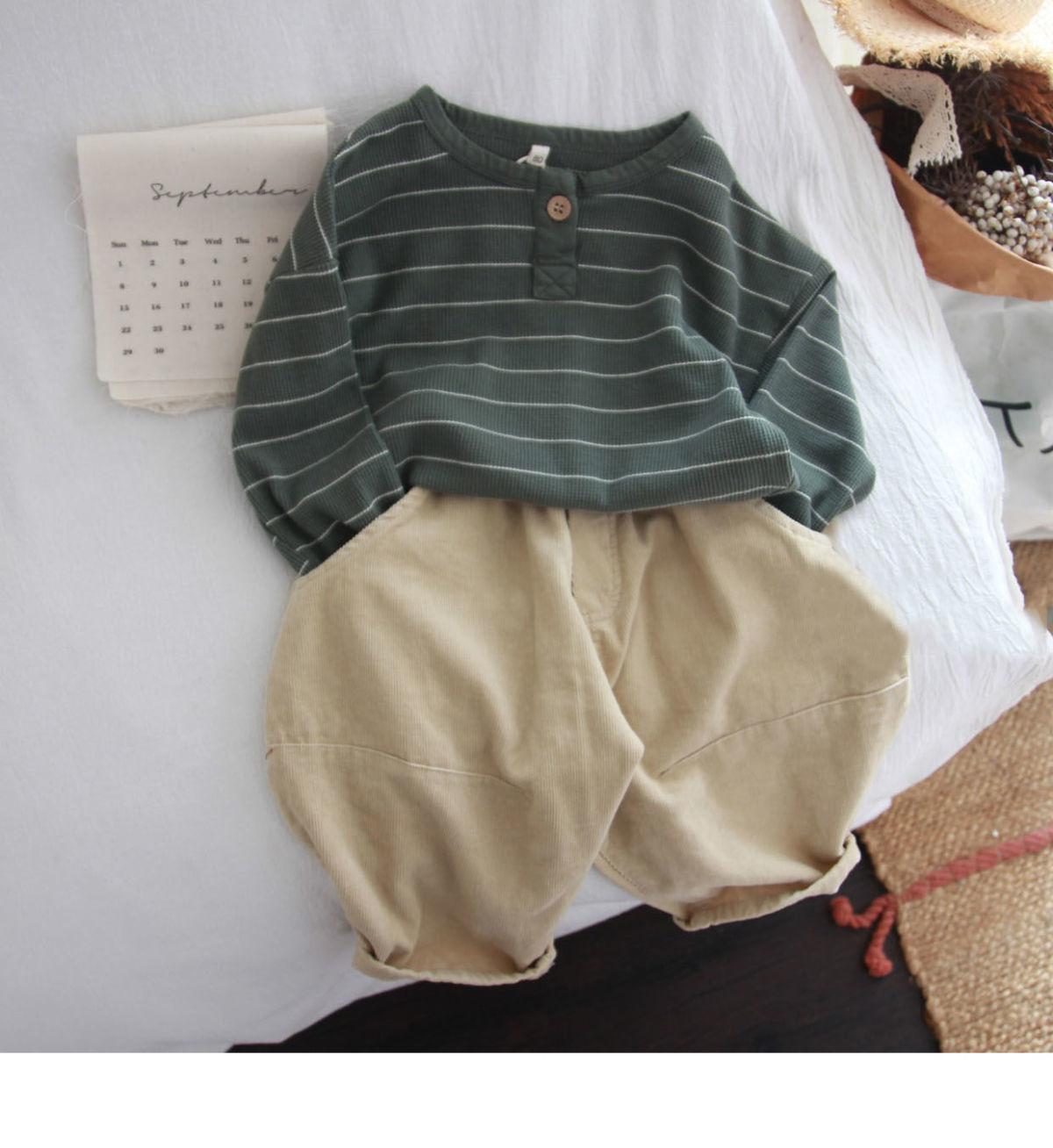 새로운 소년 복고풍 문학 스타일 한국 스타일 어린이 줄무늬 티셔츠 서양식 라운드 넥 베이비 바닥 셔츠 봄 새로운 T