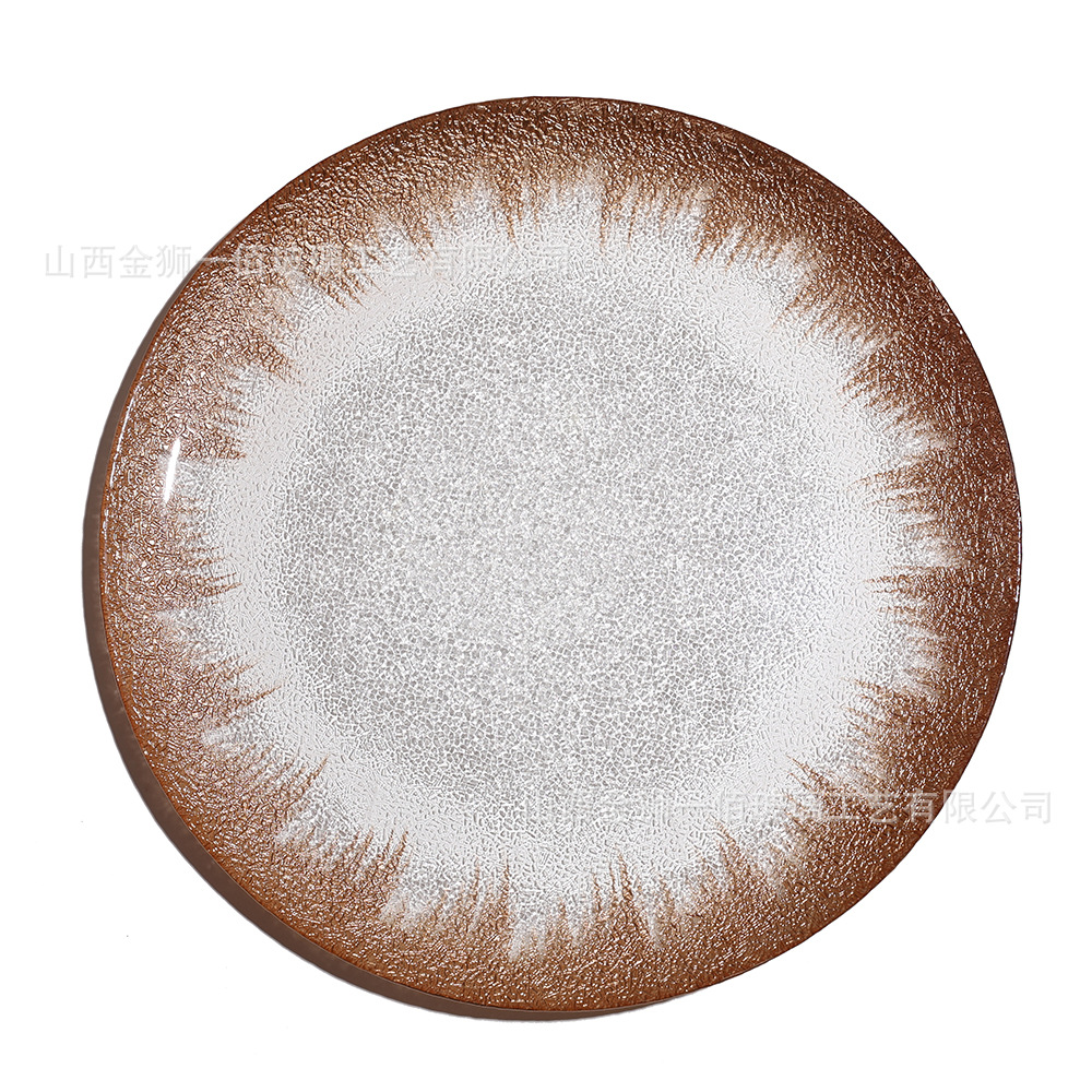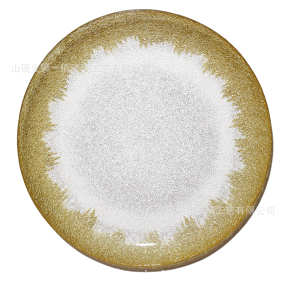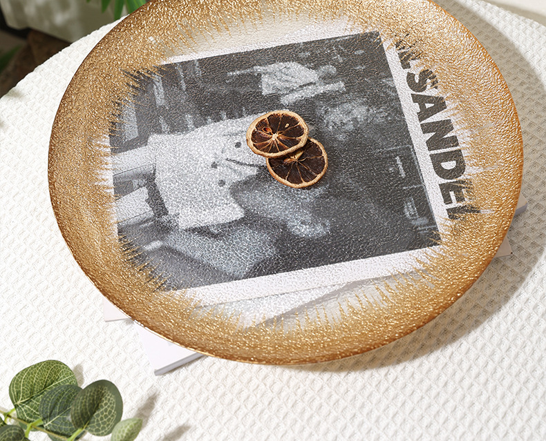 유럽 과일 접시, 가정용 크리스탈 유리 접시, 호텔 스테이크 접시, 금박 유리 접시, 금박 가죽 패턴 디너 접시