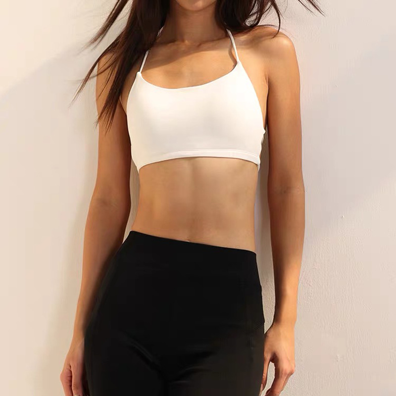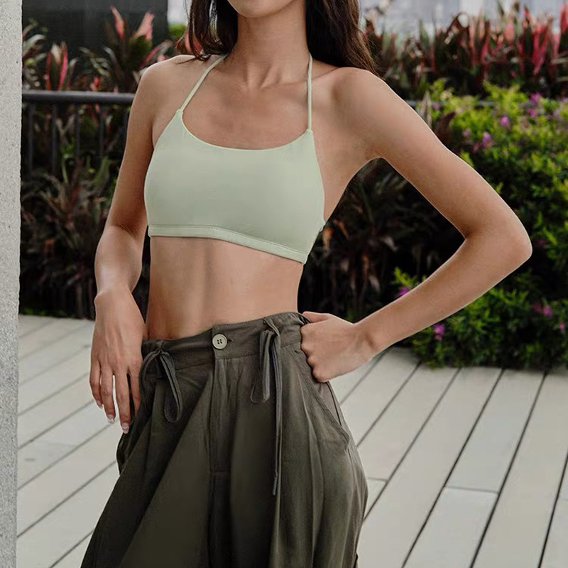 유럽과 미국의 새로운 홀터넥 스포츠 브라, 여름 멜빵, 섹시한 아름다운 등 피트니스 벨트, 가슴 패드 브라, 요가복 상의