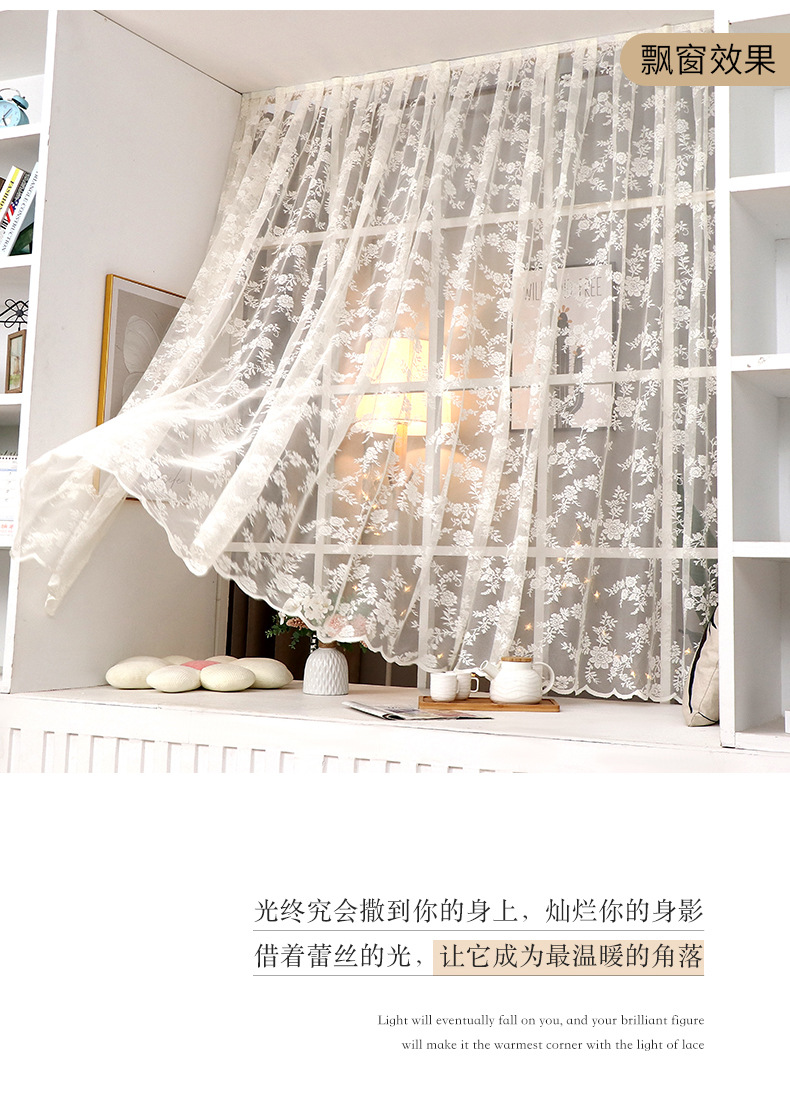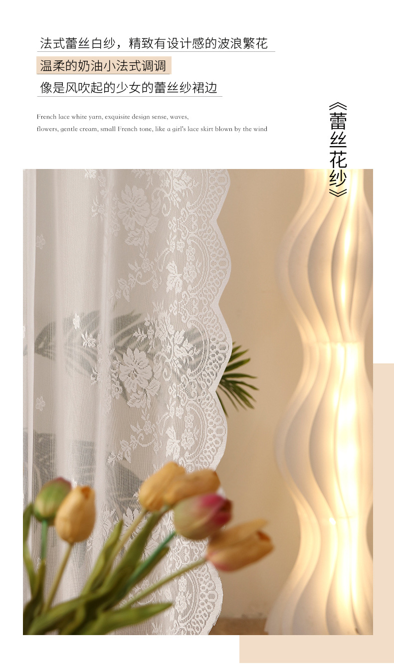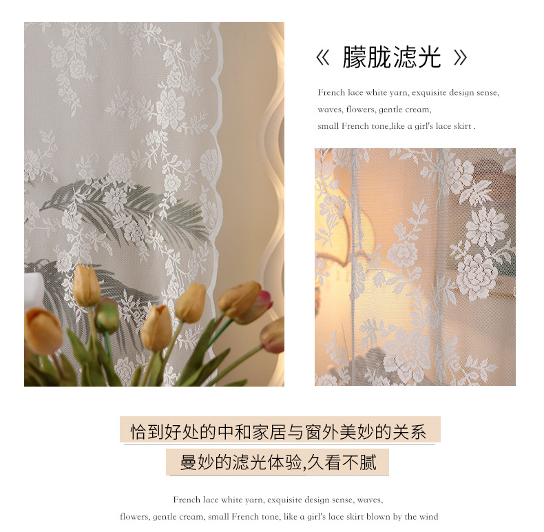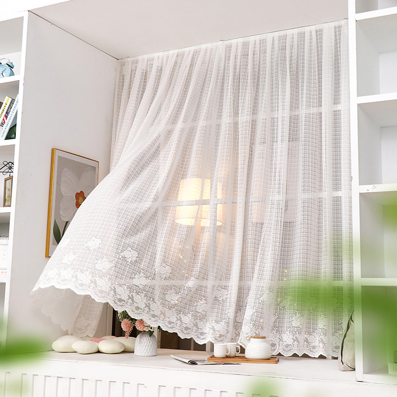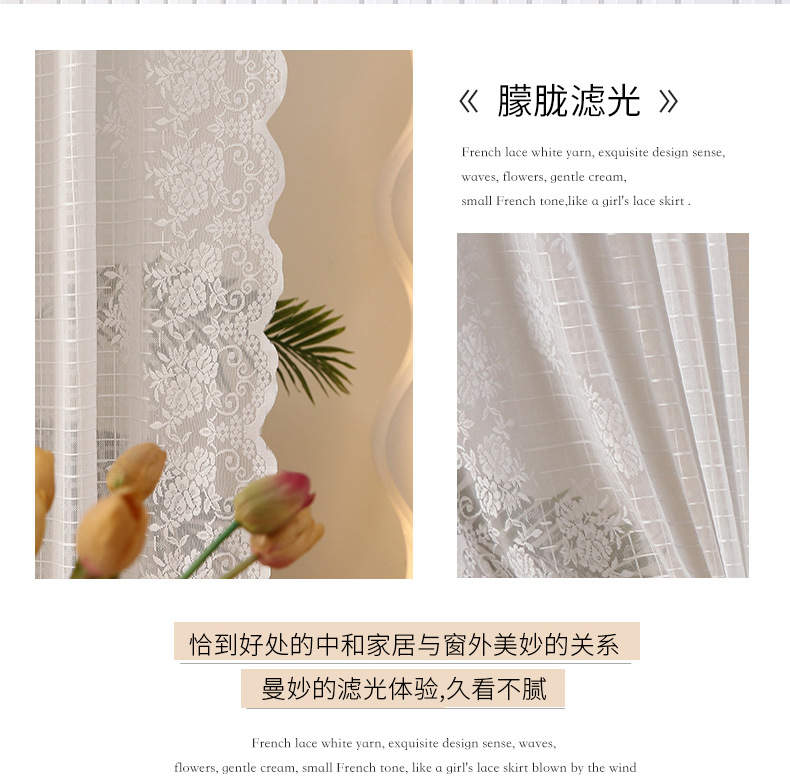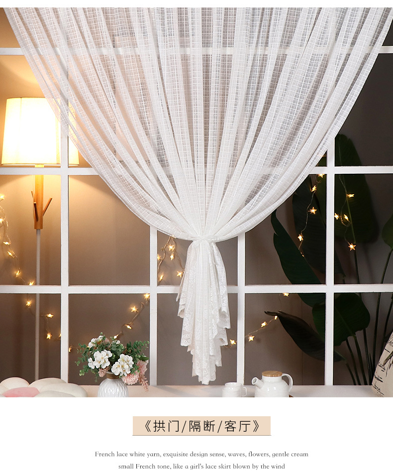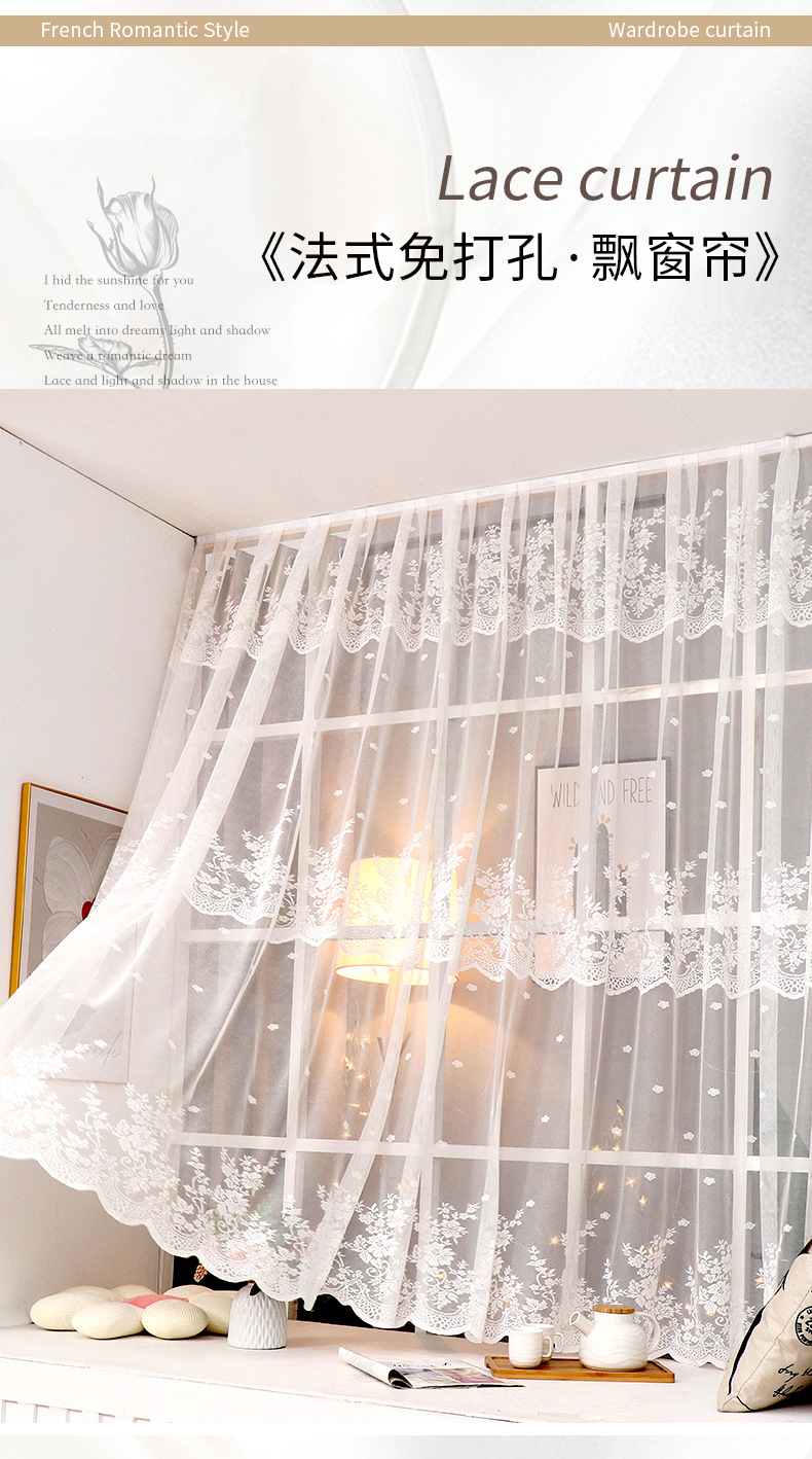 펀칭 없이 설치할 수 있는 프렌치 거즈 레이스 거즈 커튼, 새로운 침실 발코니 플로팅 커튼, 빛을 차단하는 흰색 짧은 커튼