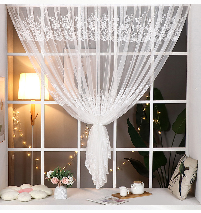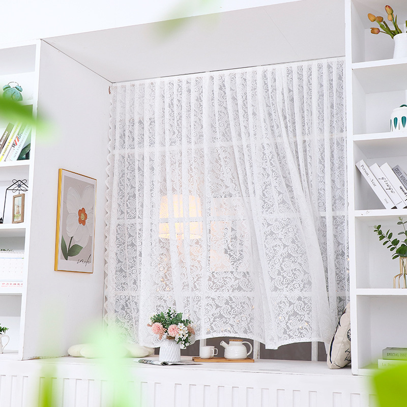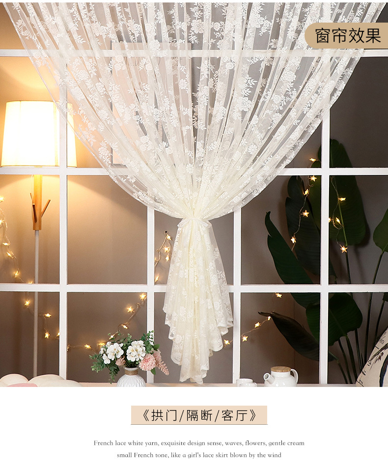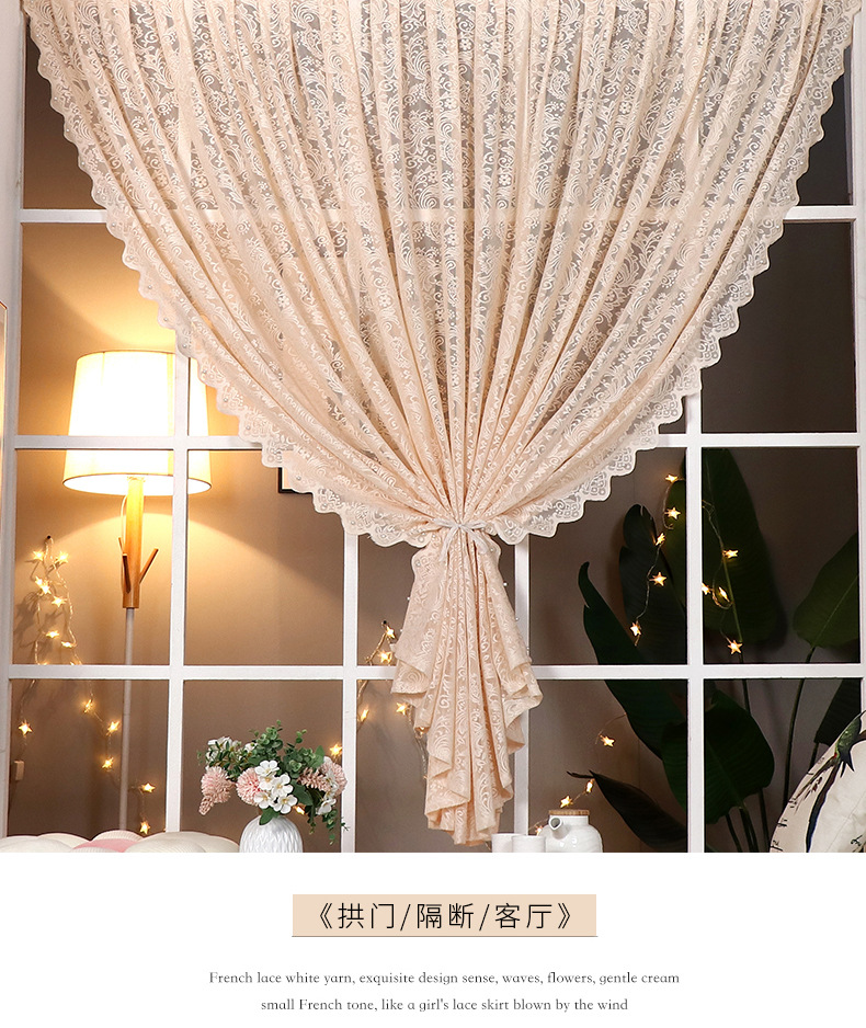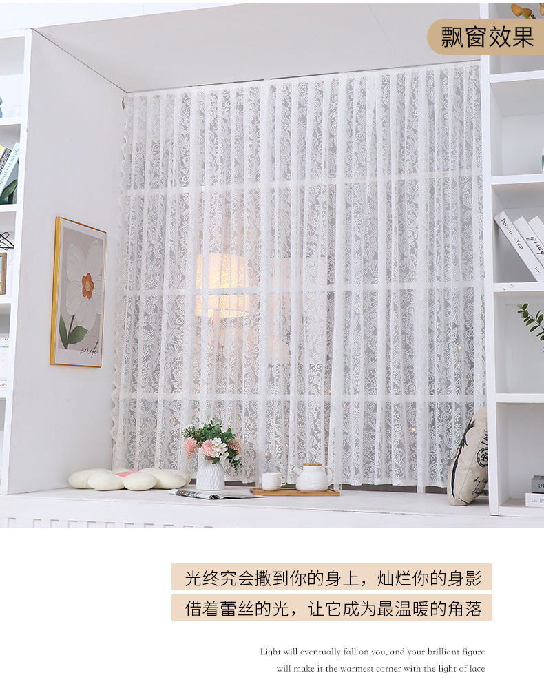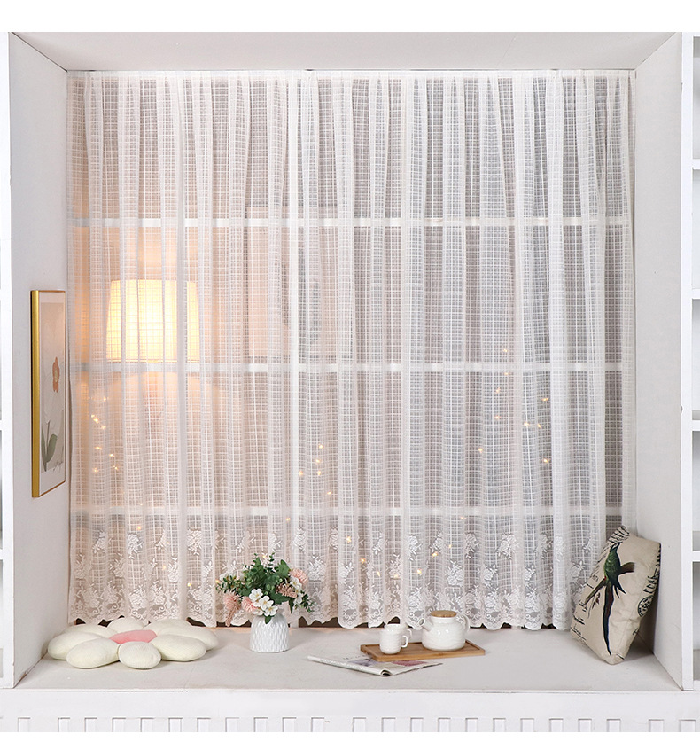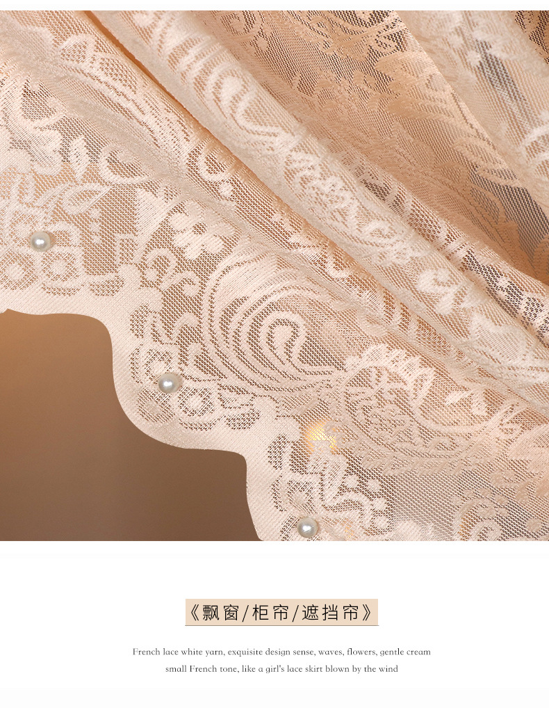 펀칭 없이 설치할 수 있는 프렌치 거즈 레이스 거즈 커튼, 새로운 침실 발코니 플로팅 커튼, 빛을 차단하는 흰색 짧은 커튼
