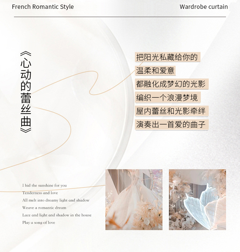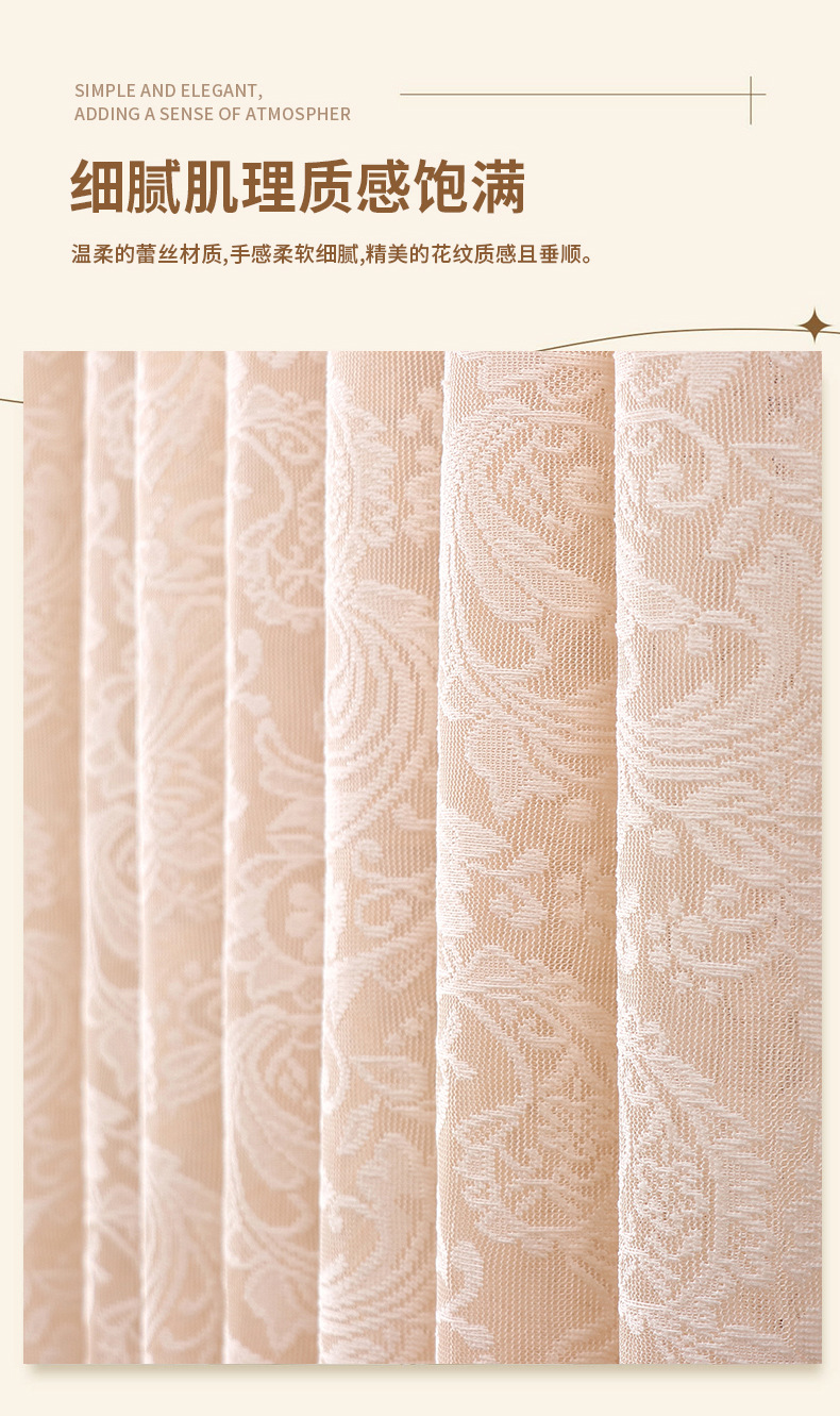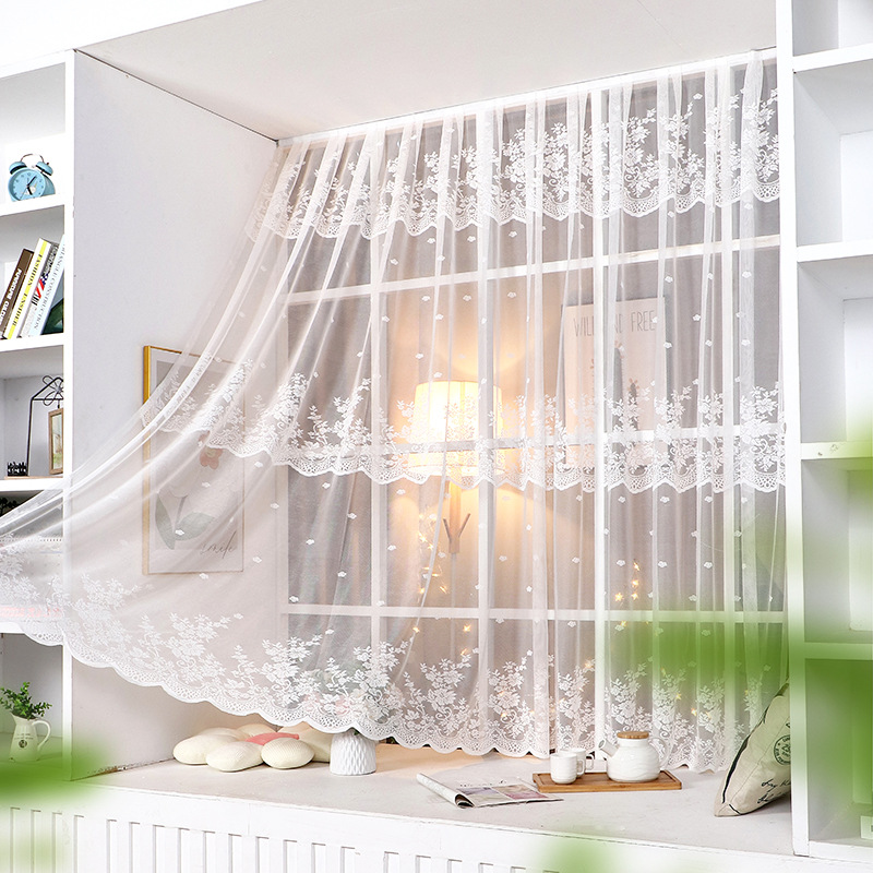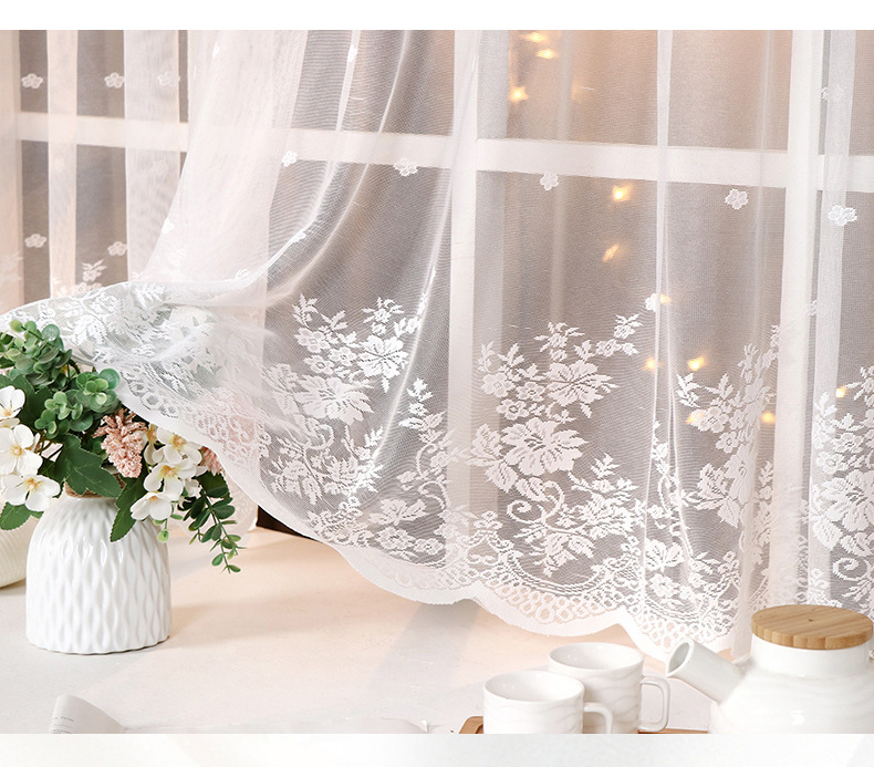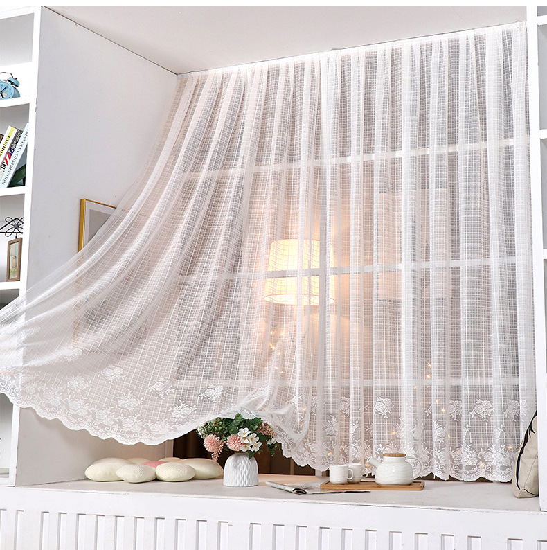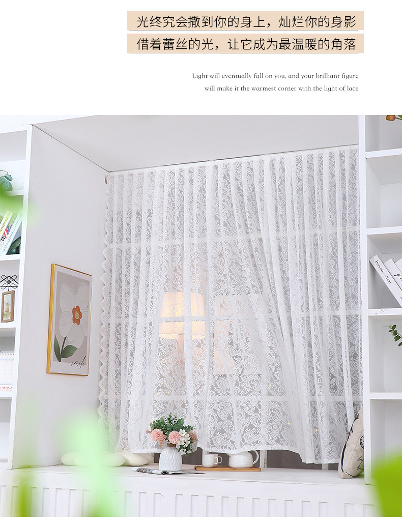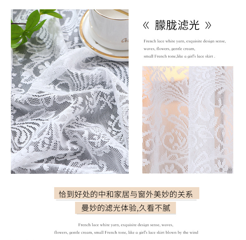 펀칭 없이 설치할 수 있는 프렌치 거즈 레이스 거즈 커튼, 새로운 침실 발코니 플로팅 커튼, 빛을 차단하는 흰색 짧은 커튼