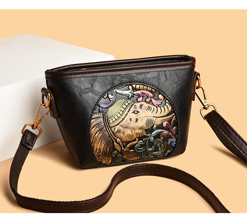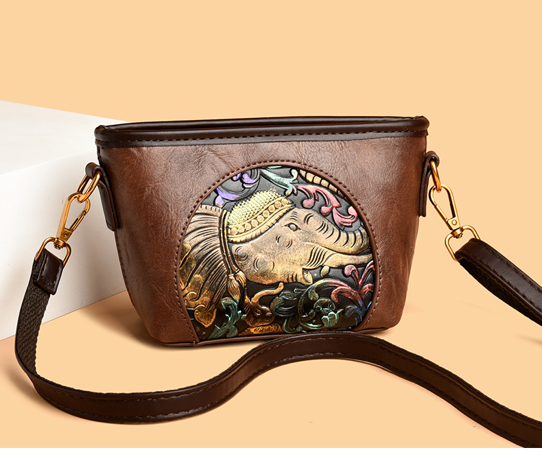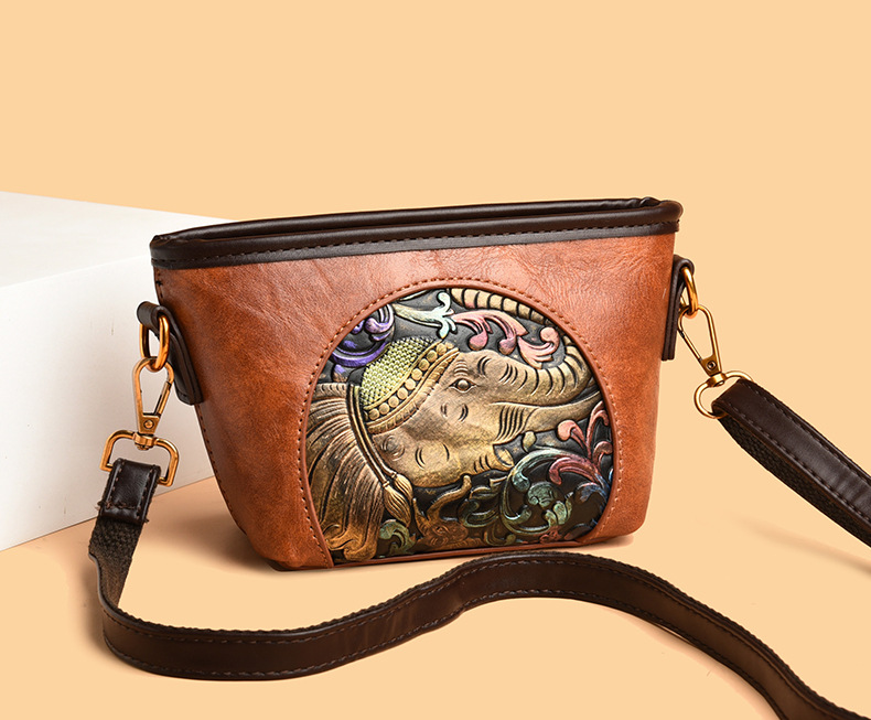 여성용 가방 복고풍 문학 국가 스타일 틈새 디자인 크로스 바디 백 여성용 새로운 클래식 패션 양각 대용량 숄더 백