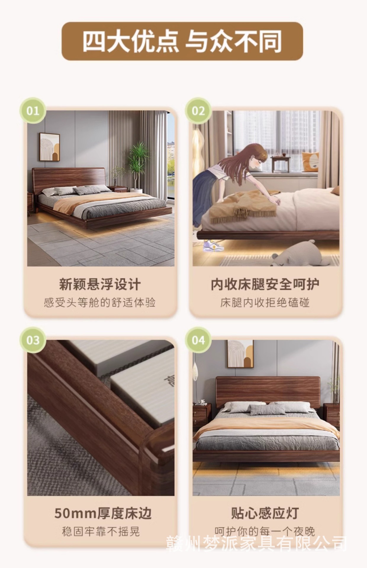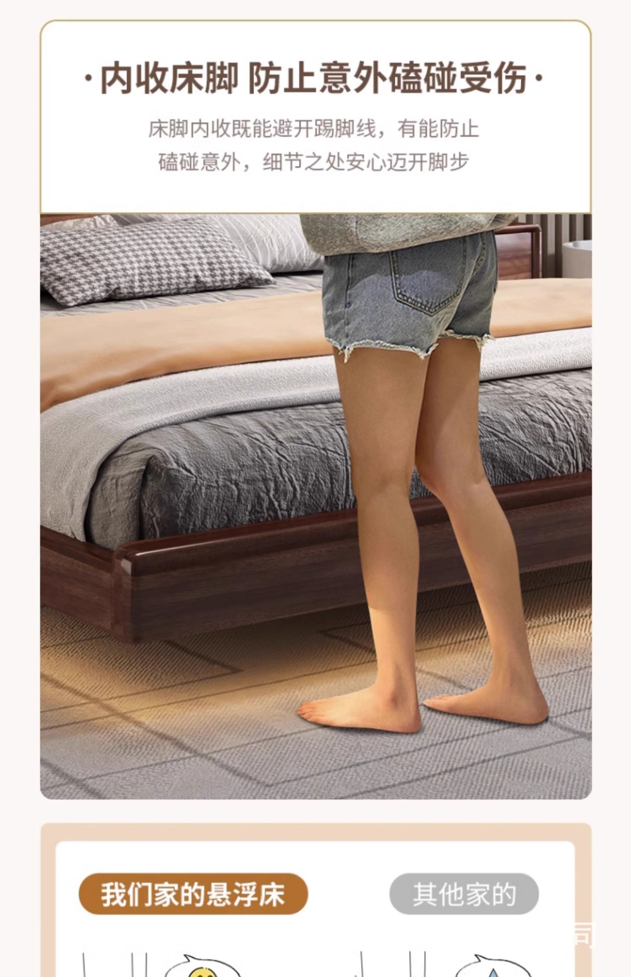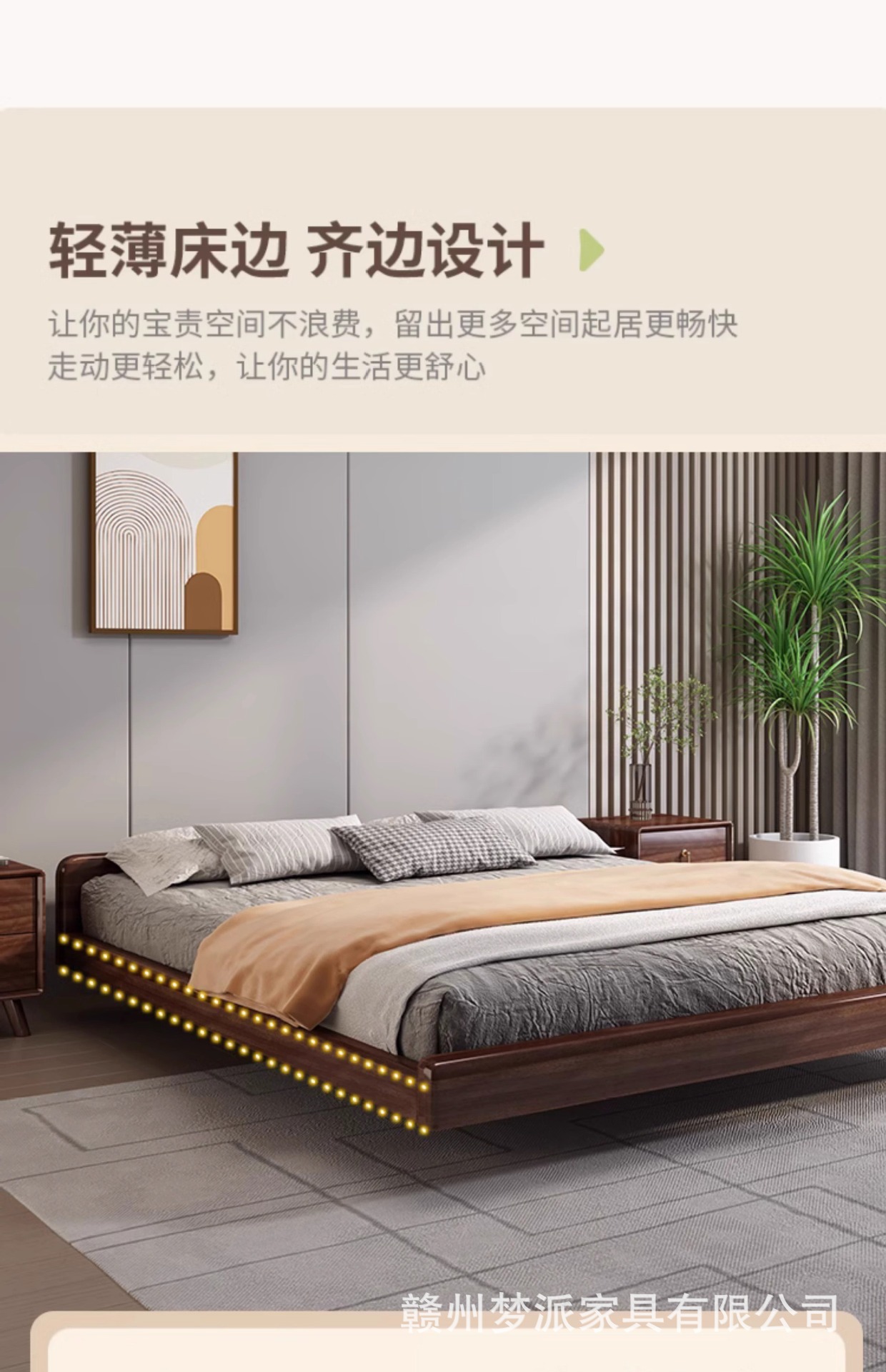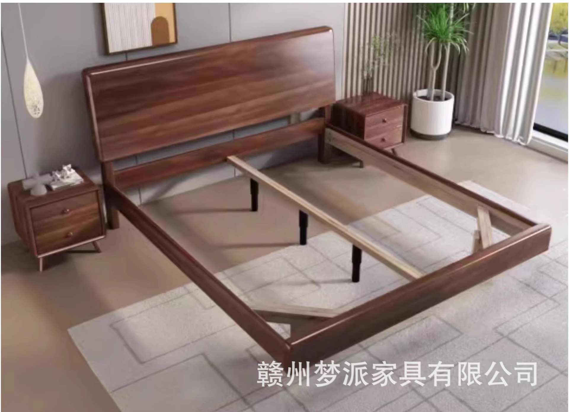 북유럽 단단한 나무 침대 다다미 마스터 침실 하이 엔드 호두 나무 서스펜션 침대 현대 간단한 1.8m 더블 침대 램프스토어 가기