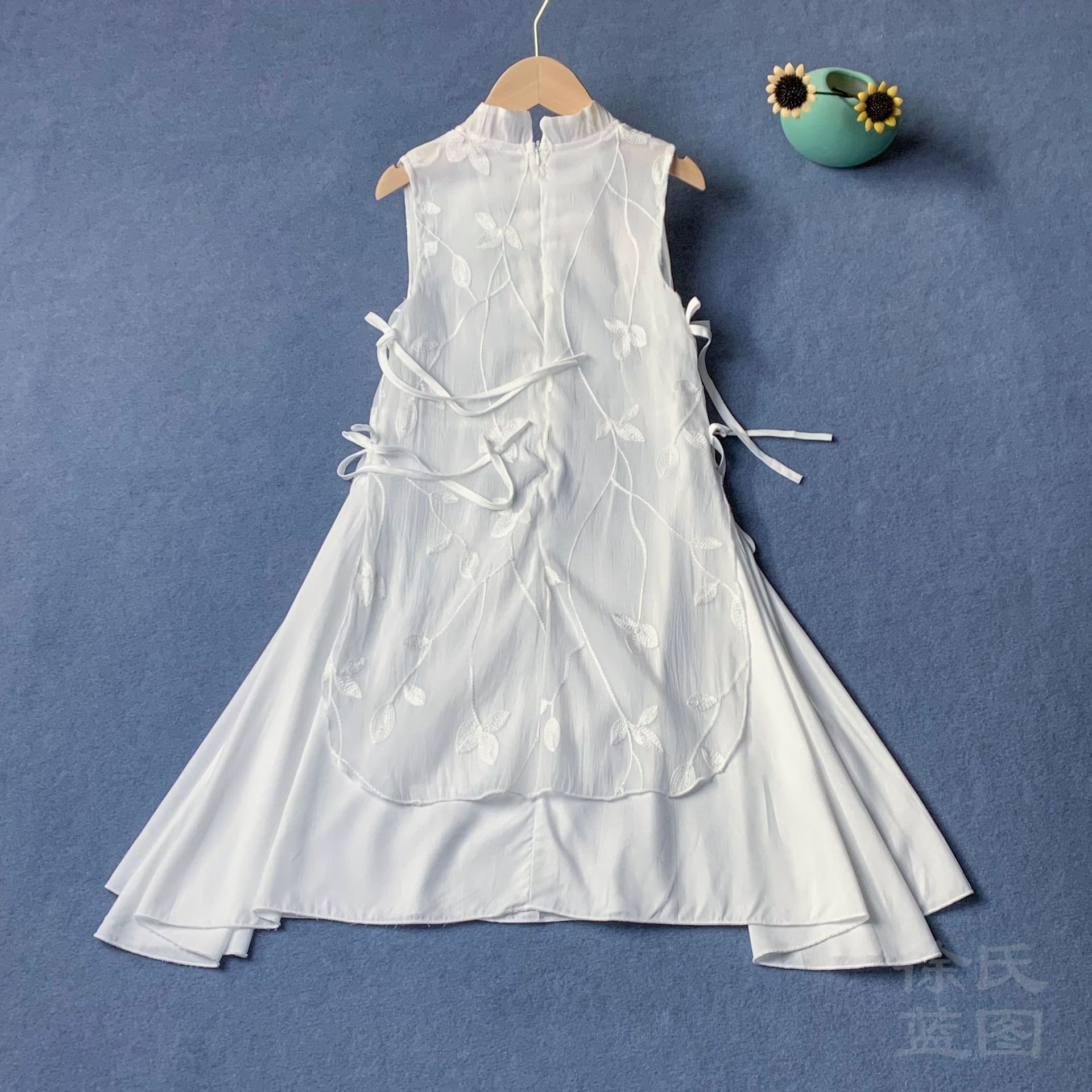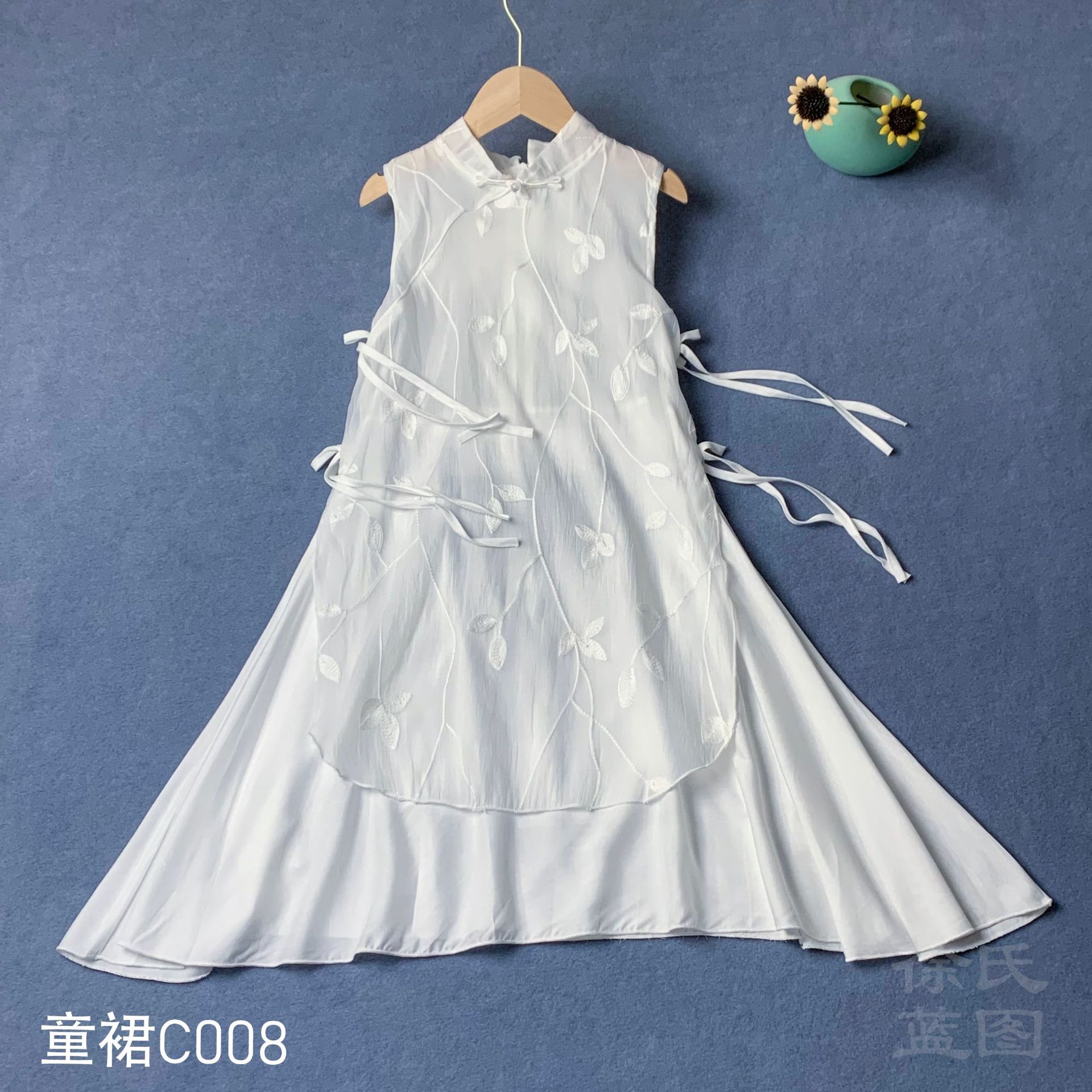 타이다이 화이트 중국풍 여아 원피스, 어린이 여름옷, 자수 장식 화이트 원피스, 스탠드 칼라 민소매 여아 원피스스토어 가기