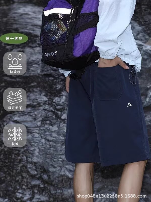 네이비 블루 스포츠 반바지 남성 여름 얇은 트렌디 아메리칸 캐주얼 미드팬츠 루즈 스트레이트 속건 5부 팬츠 트렌디
