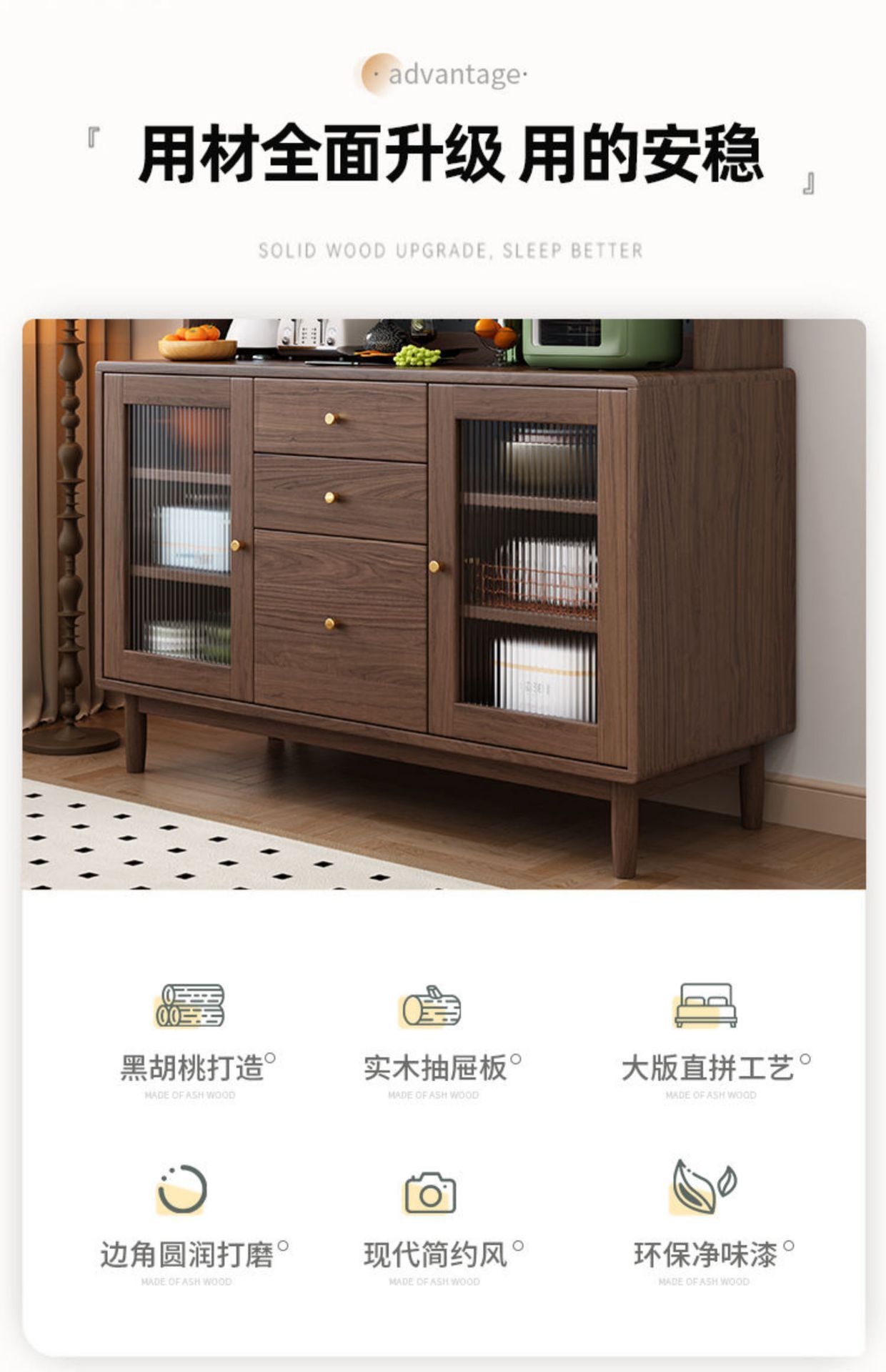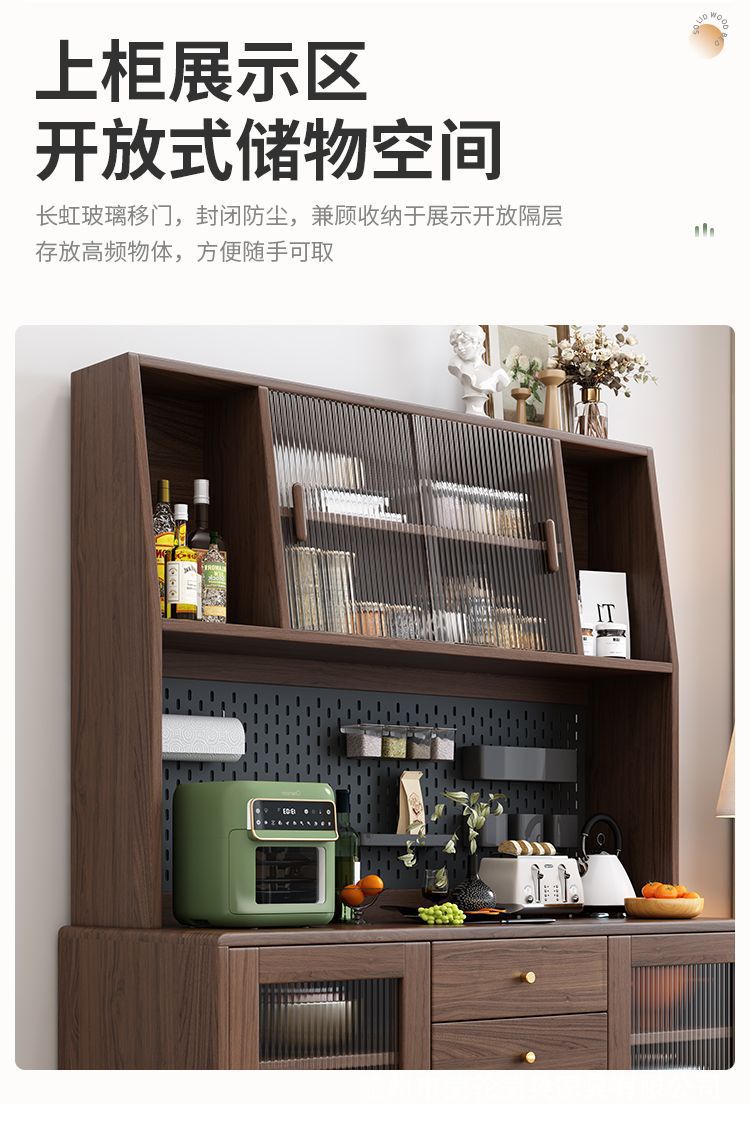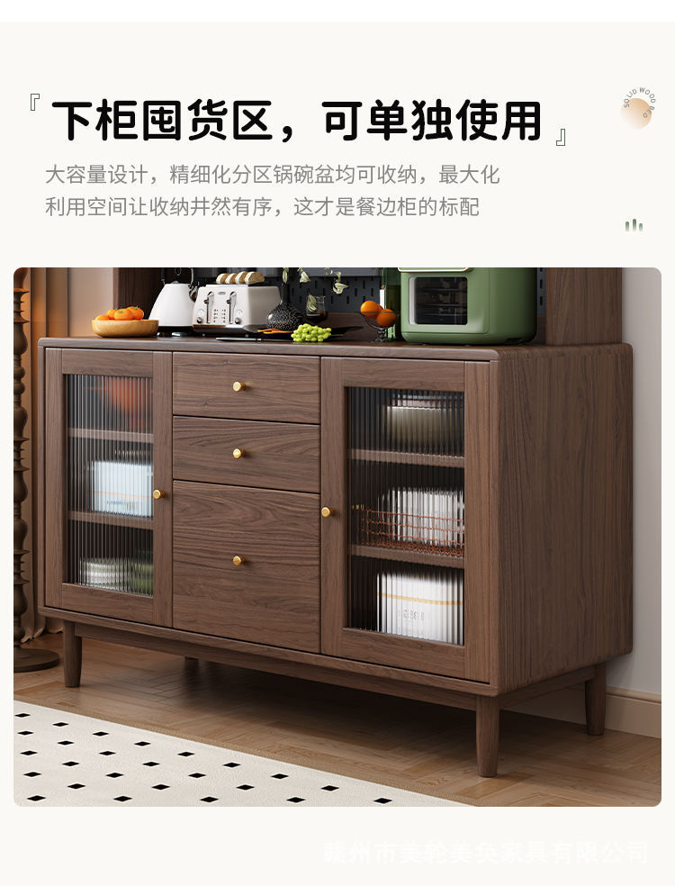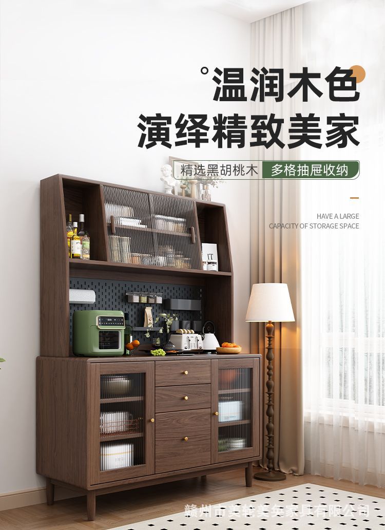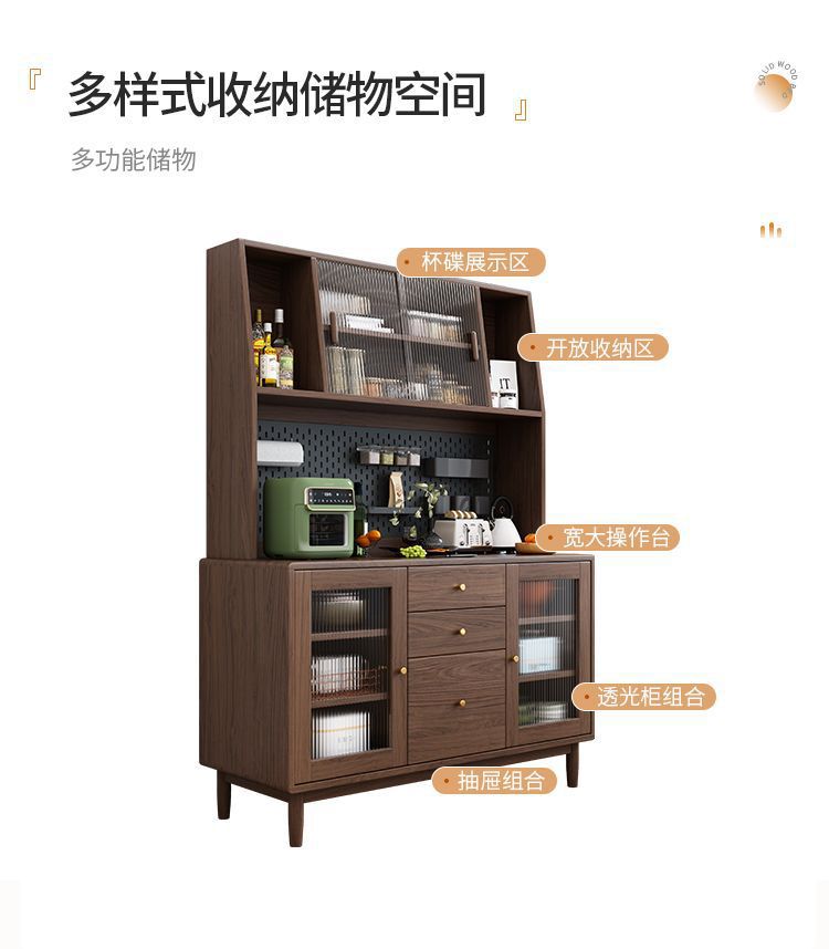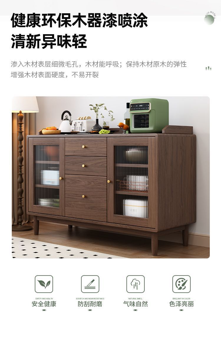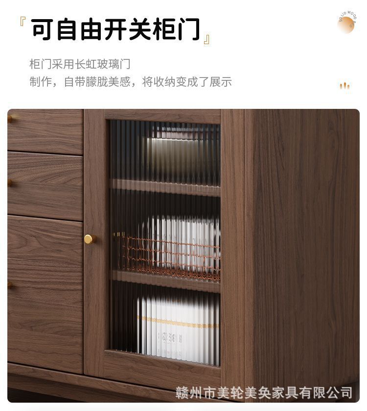 북유럽 호두나무 원목 찬장 벽 일체형 거실 수납 캐비닛 통나무 차 수납 캐비닛 주방 수납 캐비닛스토어 가기