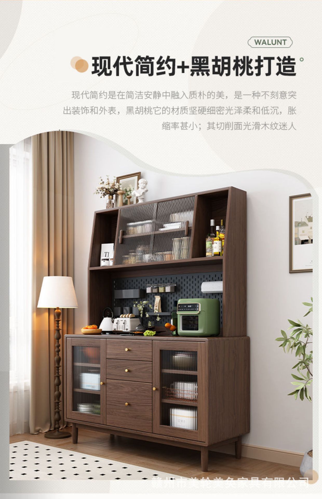 북유럽 호두나무 원목 찬장 벽 일체형 거실 수납 캐비닛 통나무 차 수납 캐비닛 주방 수납 캐비닛