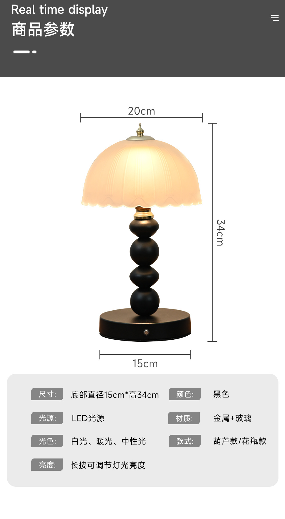 북유럽 테이블 램프, 침대 옆 조명, 고급 침실 조롱박 장식 테이블 램프, 복고풍 유리 크리에이티브 야간 조명, B&B스토어 가기