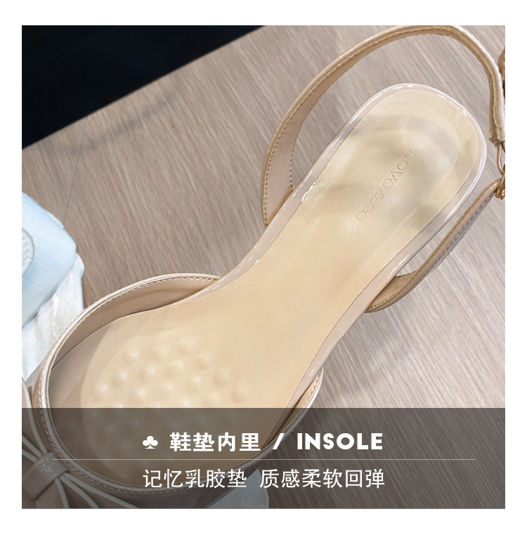 L-73 소녀풍 리본 샌들 여성용 2025 여름 신상 굵은 굽 뒤가 빈 하이힐 중간 굽 단화