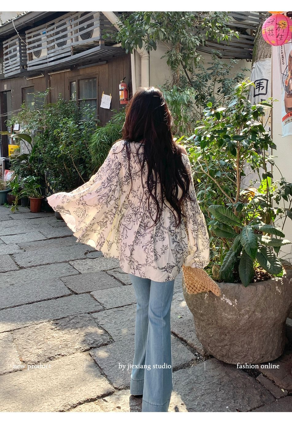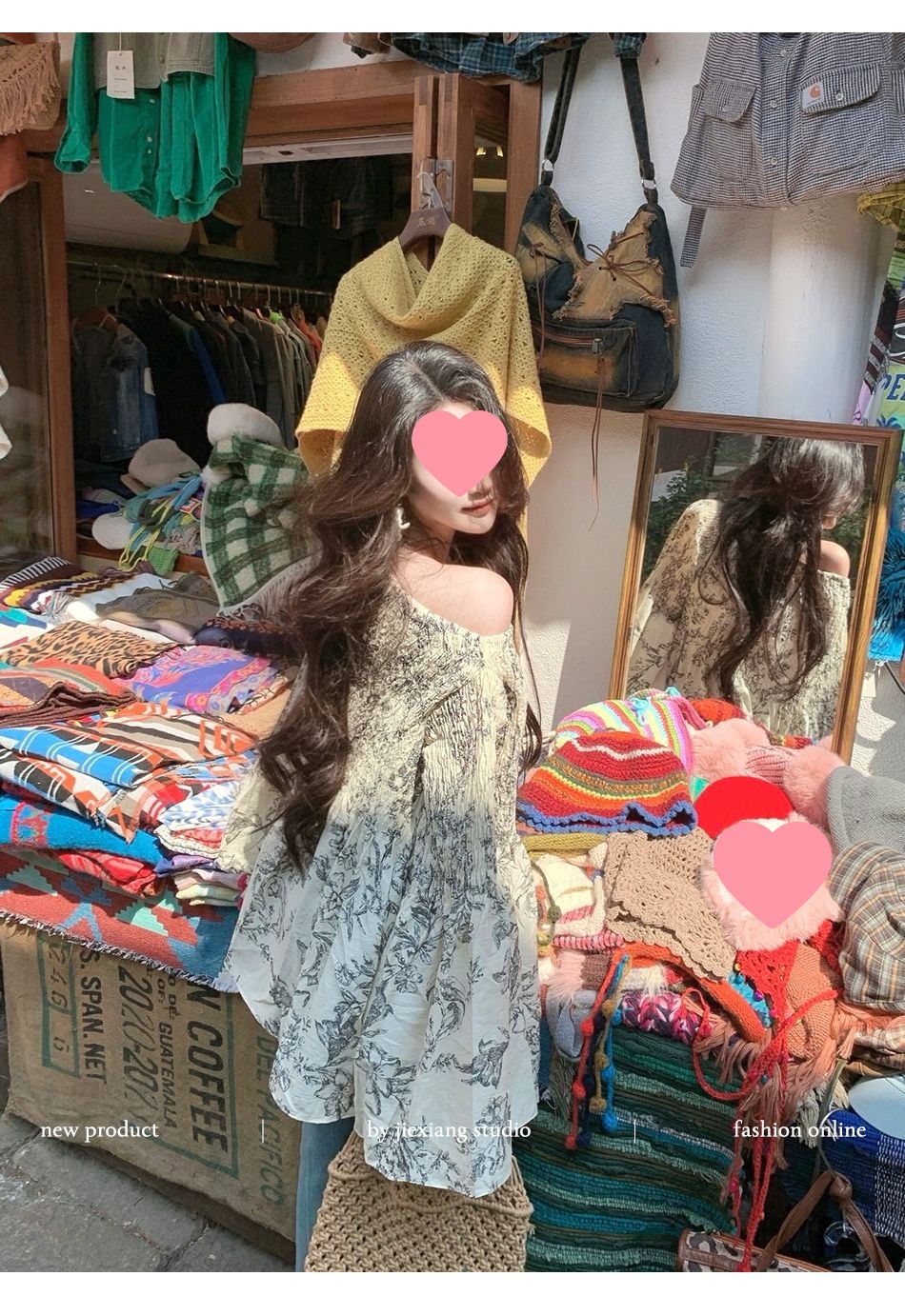 여성을위한 원 숄더 잉크 프린트 디자인 탑 2025 봄 여름 느슨한 게으른 스타일 셔츠
