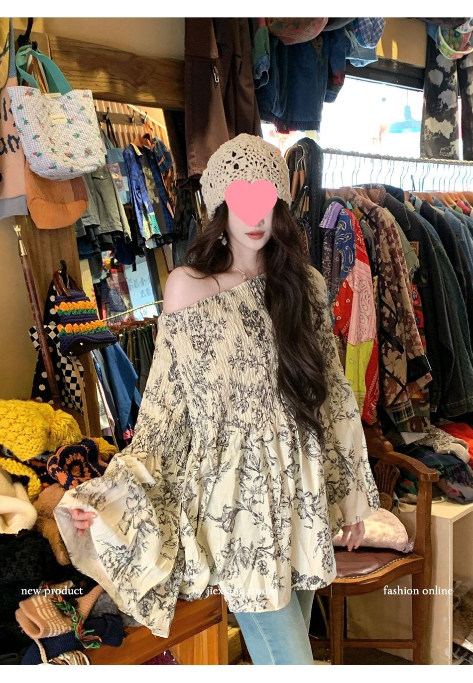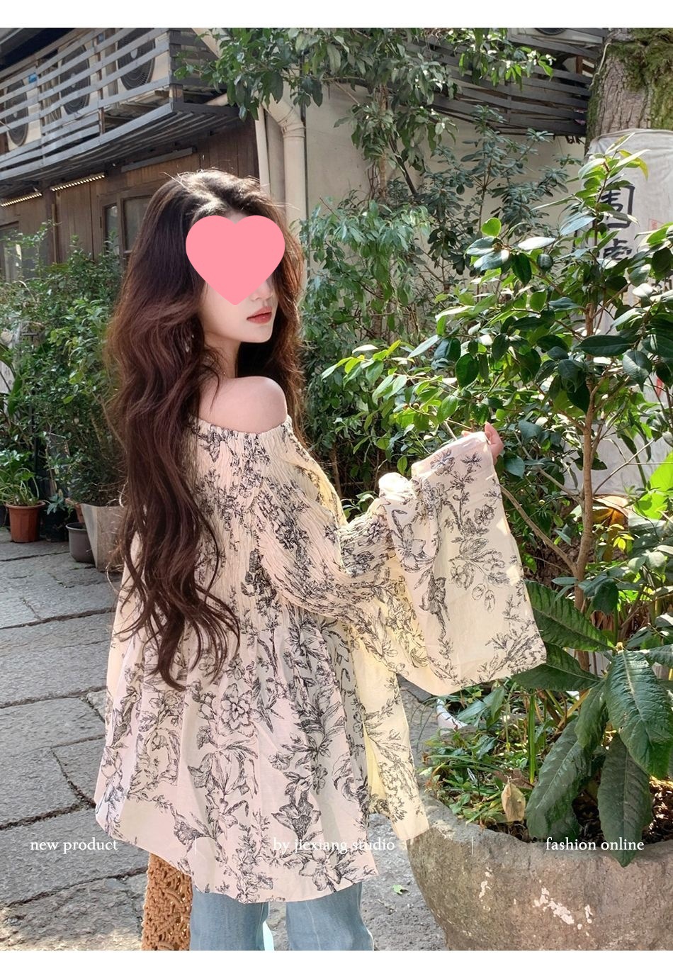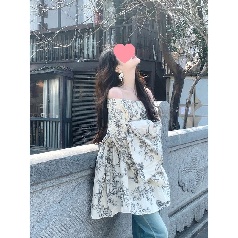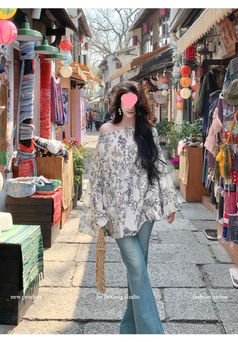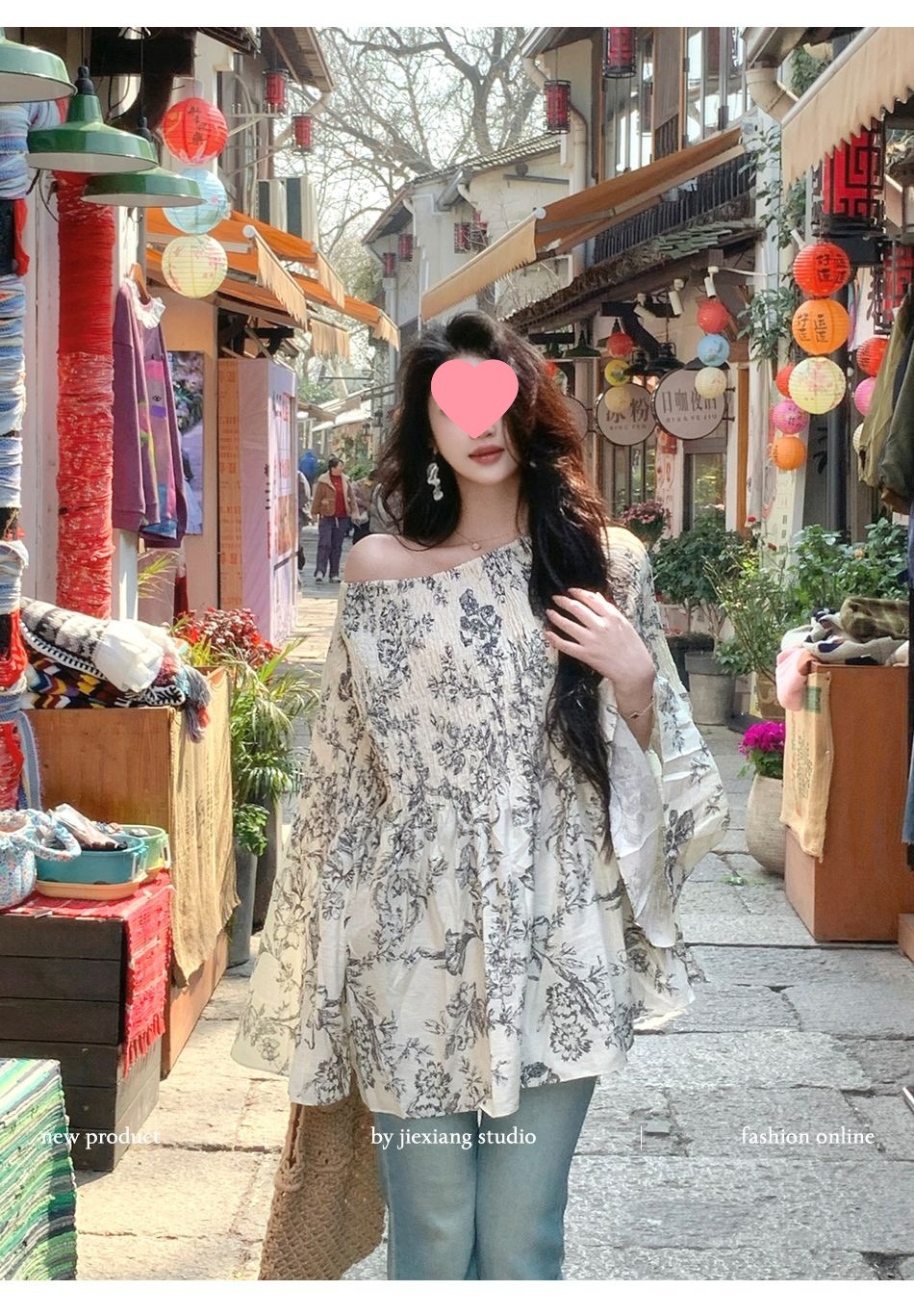 여성을위한 원 숄더 잉크 프린트 디자인 탑 2025 봄 여름 느슨한 게으른 스타일 셔츠스토어 가기