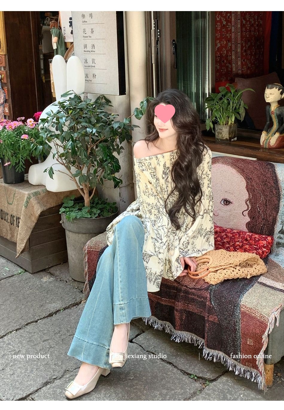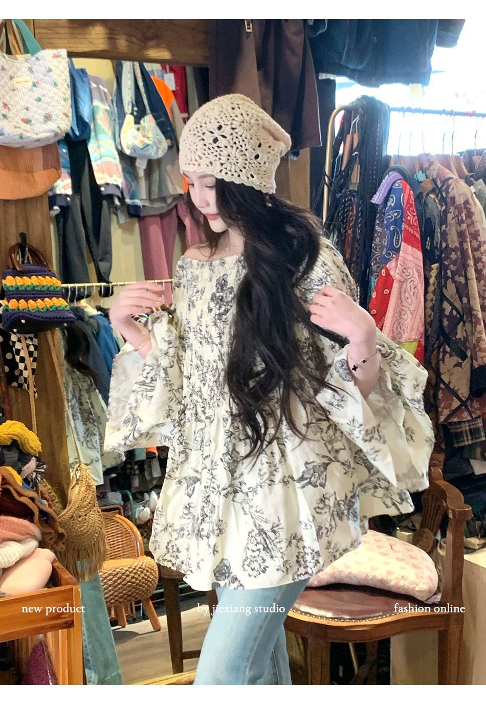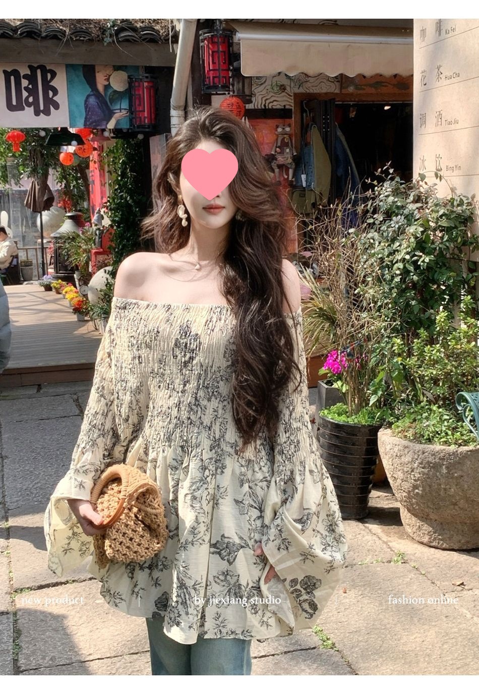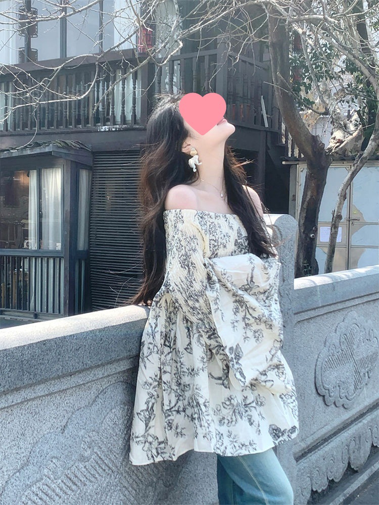 여성을위한 원 숄더 잉크 프린트 디자인 탑 2025 봄 여름 느슨한 게으른 스타일 셔츠스토어 가기
