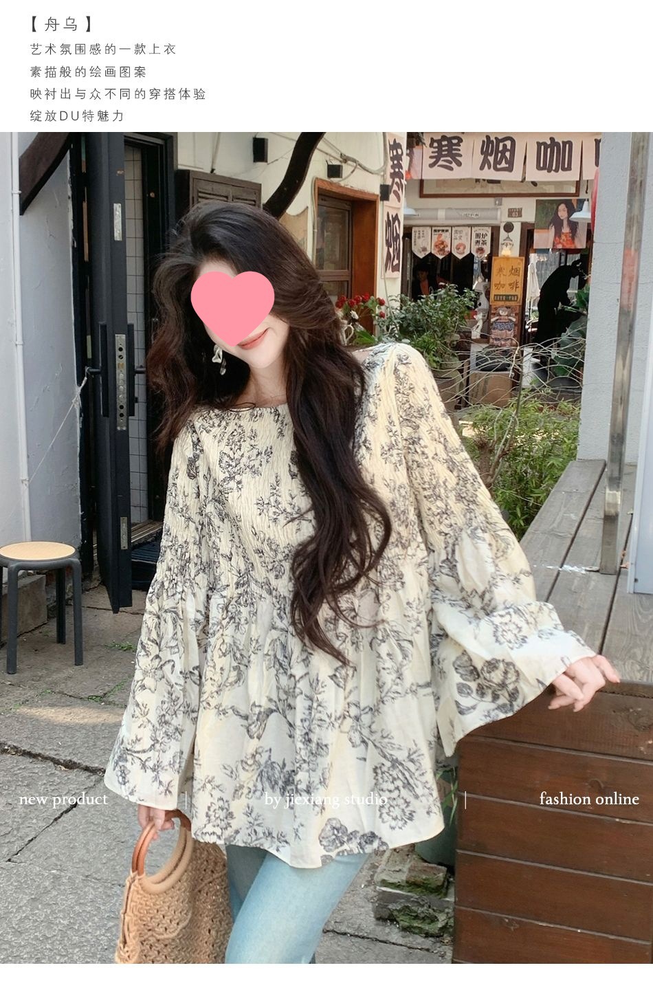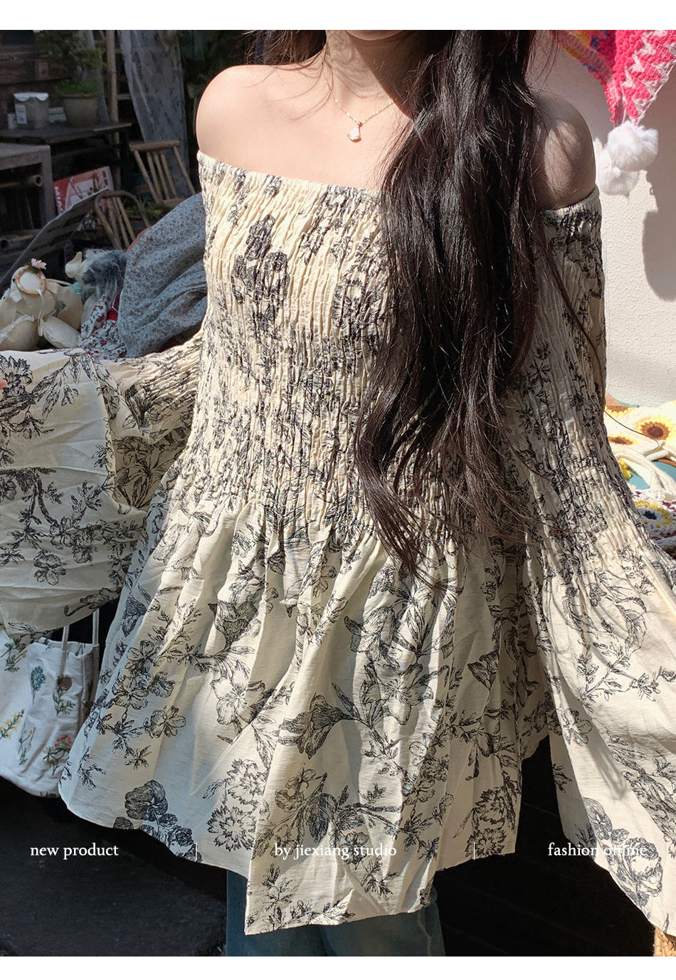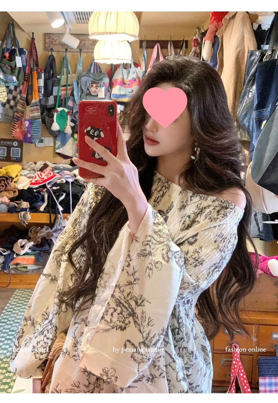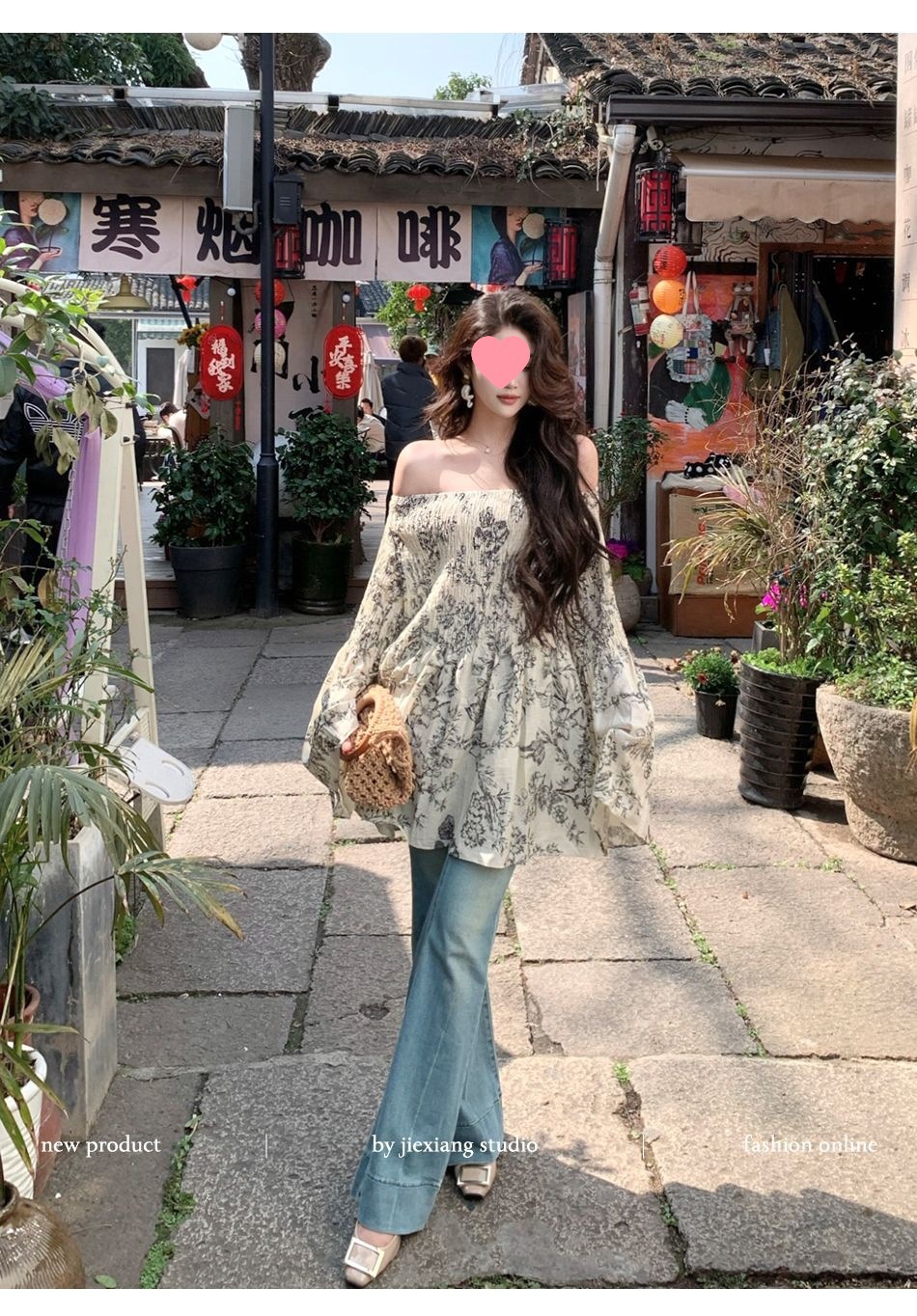 여성을위한 원 숄더 잉크 프린트 디자인 탑 2025 봄 여름 느슨한 게으른 스타일 셔츠스토어 가기